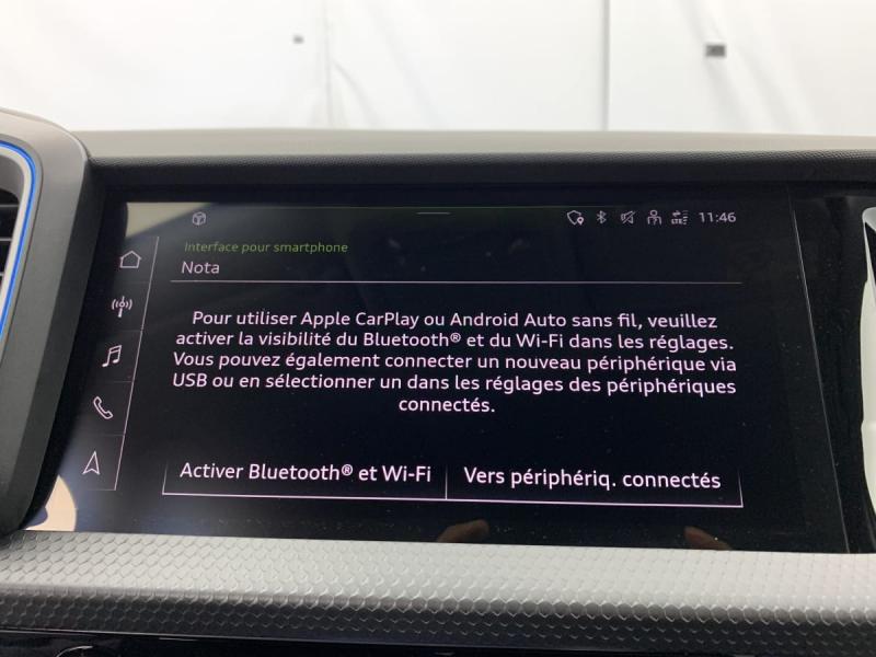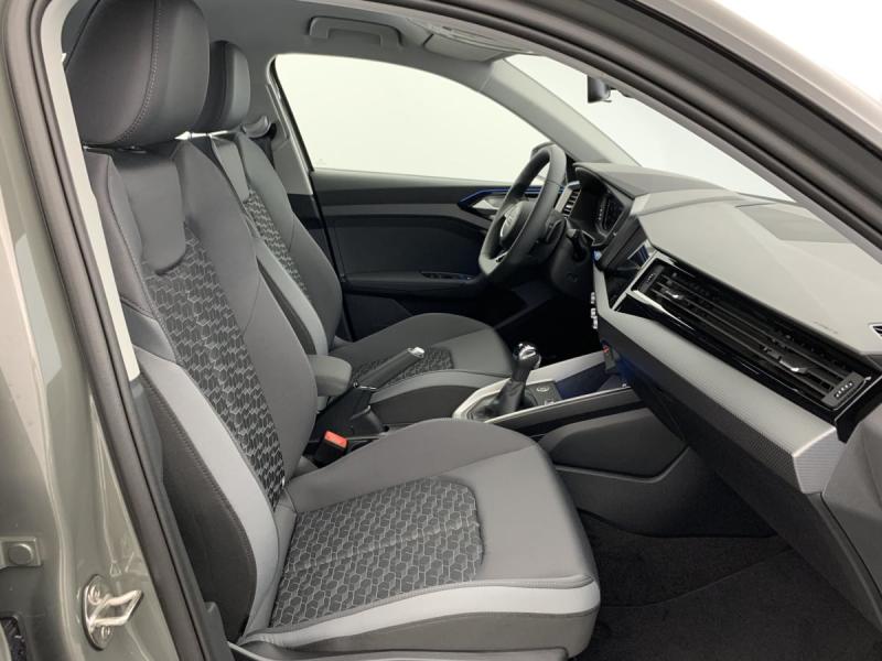 Accoudoir central AVAccoudoirs de portières en matériaux synthétiques AVAffichage de contrôle de pression des pneusAirbags latéraux à l'AV et système d'airbags de têteApplications décoratives étendues en laque diamant Gris Argent dans l'insert du diffuseur d'air et de la console centrale ainsi que dans la poignée de la commande intérieure de verrouillage des portièresApplications décoratives étendues sur le tableau de bord façon verre en noir, de l'écran couleur MMI touch jusqu'aux triangles de portières AV façon verre en noirApplications décoratives structure polygone en laque fine ArdoiseArches de toit et pavillon de couleur uniAssistant de démarrage en côte (Audi Hill Hold Assist)Audi Pre Sense frontAudi Smartphone InterfaceAvertissement de franchissement de ligneCiel de pavillon en tissu Gris TitaneClimatisation automatique confort 2 zonesDétecteur de pluie et de luminositéDossier de banquette AR rabattableFeux de brouillard ARInterface BluetoothLève-vitres électriques à l'AV et à l'ARLimiteur de vitesseMoulures de seuil avec insert en aluminium à l'AVPhares et feux AR à LED, avec clignotants dynamiques à ARPréparation pour la navigation MMI plus et Audi virtual cockpitRégulateur de vitesseRétroviseur intérieur jour/nuit manuelRétroviseurs extérieurs réglables électriquement et dégivrants [6XD]Sellerie tissu Novum pour sièges sport à l'AVSet de réparation pour pneusSièges AV sportSièges conducteur et passager AV réglables en hauteurSystème de lecture des panneaux de signalisation par caméraVitres athermiques