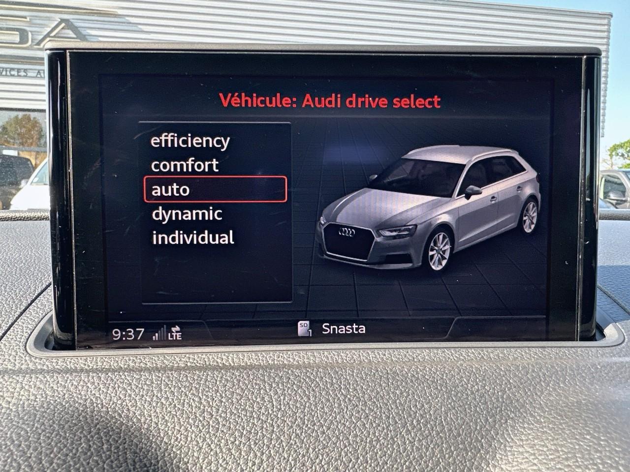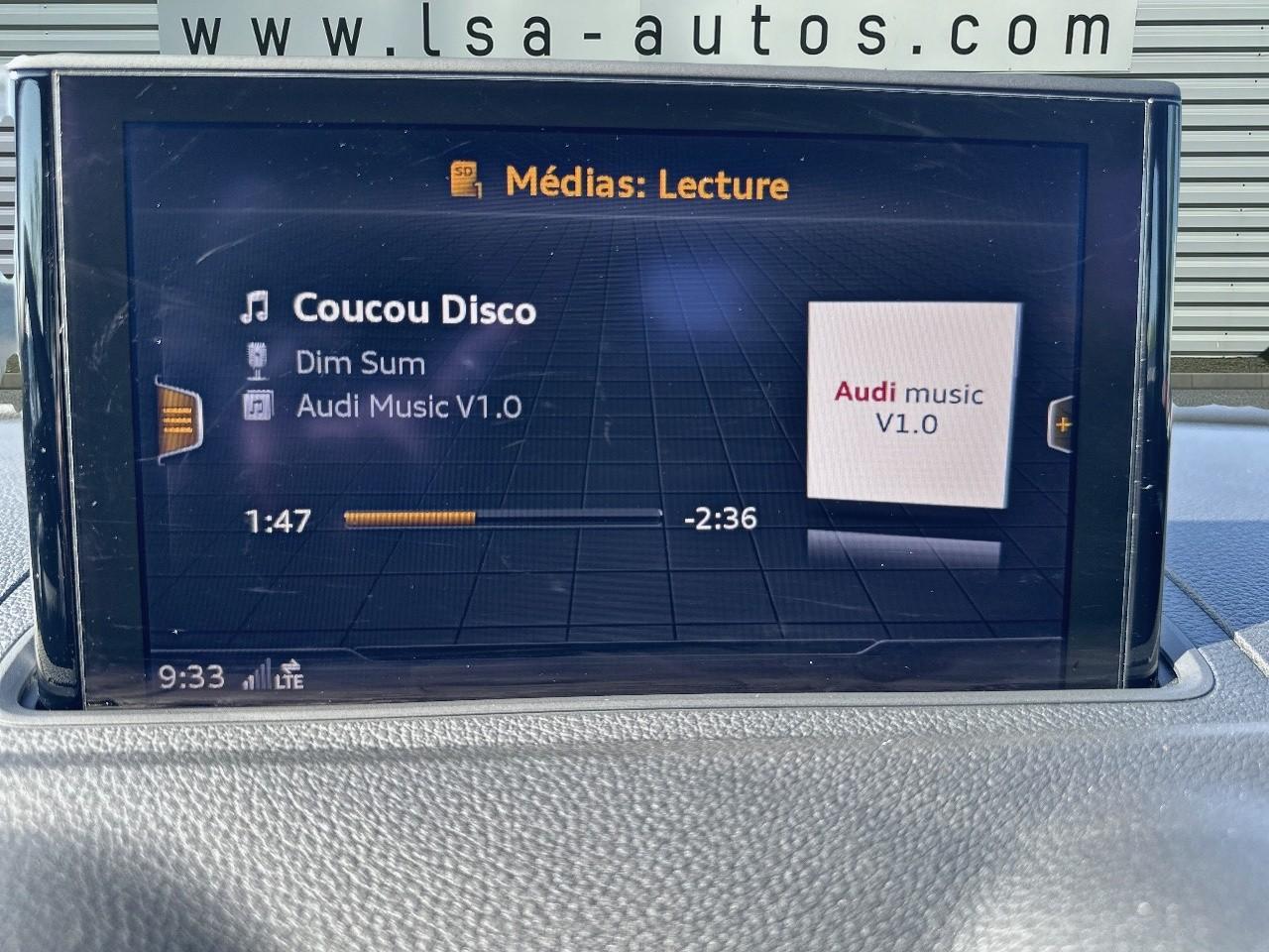 Accoudoir central avantAileron de toitAirbag de têteAirbags frontaux, latéraux et de genoux pour le conducteur et le passager avantApplications décoratives Argent micrométalliqueAppuie-tête intégraux à l'avant et à l'arrièreASR (antipatinage) pour une motricité et une rigidité transversale optimales. Réduit le patinage des roues motricesAudi connect 36 moisAudi drive select, permet différents réglages:Efficience, Confort, Dynamique, Auto et IndividuelAudi Parking SystemBoîtiers de rétroviseurs extérieurs dans la teinte du véhiculeBuses de lave-glace chauffantesChâssis normalCiel de pavillon en tissu gris rocheClimatisation automatique bizoneContrôle de la pression des pneumatiquesDésactivation de l'airbag du passager avantDétecteur de pluie et de luminositéDirection assistée ServotronicEcrous de roues antivolESC : contrôle électronique de stabilisation. Relie ABS, EBV, ASR et EDSFeux arrière halogèneFeux tout-tempsFixation pour sièges enfants ISOFIX et Top Tether pour les places arrière extérieuresFrein à disque sur les essieux avant et arrièreFrein de stationnement electromécaniqueIndicateur de niveau du liquide de lave-glaceInterface BluetoothJantes aluminium 16''Lecteur CD/MP3 avec un slot pour carte SDMMI navigationOutillage de bord et cricPack rangement et coffrePeinture intégrale unieProjecteurs au Xénon Plus avec feux de jour à LEDRécupération d'énergie, générée lors des phases de freinage ou de décélération et système Start/Stop, permettant une économie de carburantRégulateur de vitesseRétroviseur intérieur automatique jour/nuitRétroviseur intérieur jour/nuit automatiqueRétroviseurs extérieurs avec clignotants à LED intégrésRétroviseurs extérieurs réglables, dégivrants et rabattables électriquement avec position automatique pour manoeuvre de stationnementRoue de secours compacteSécurité enfants électriqueSellerie tissu MarathonSystème ABS avec répartiteur électronique de freinage EBV, programme électronique de stabilisation ESC avec détection de barres de toit et assistance au freinage d’urgenceSystème d'information du conducteur, avec écran couleurTapis de sol avant et arrièreTrousse de secours avec triangle de présignalisationVitres avant avec isolation phoniqueVitres latérales et arrière athermiqueVolant cuir multifonction avec palettes au volantVolant réglable manuellement en hauteur et en profondeur