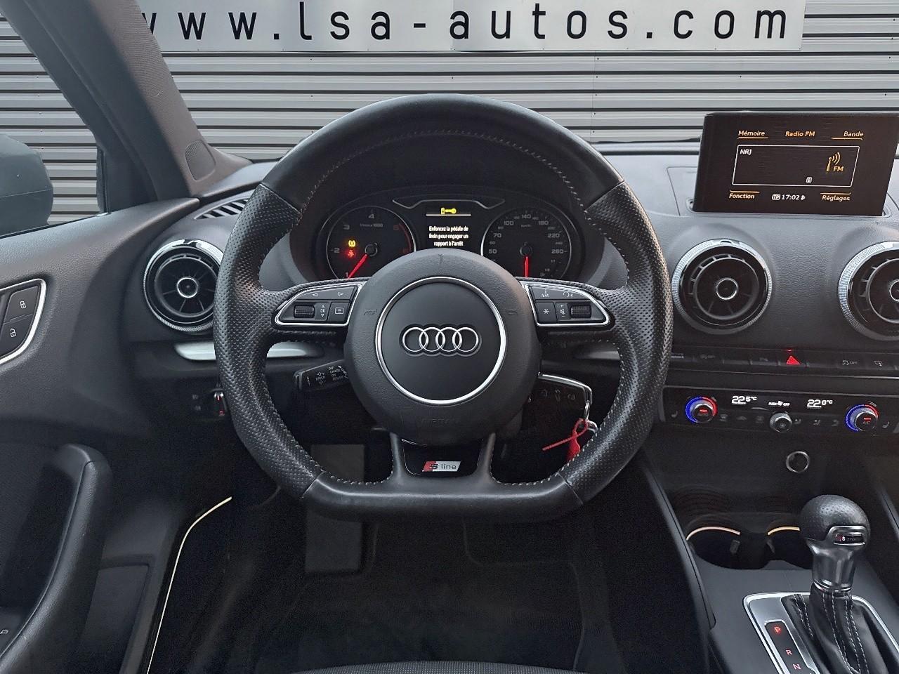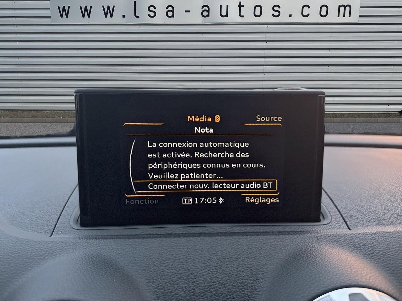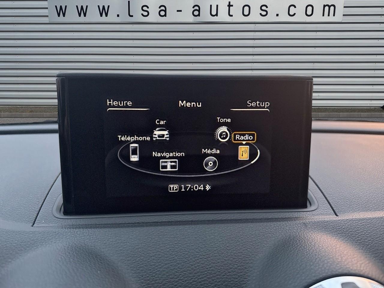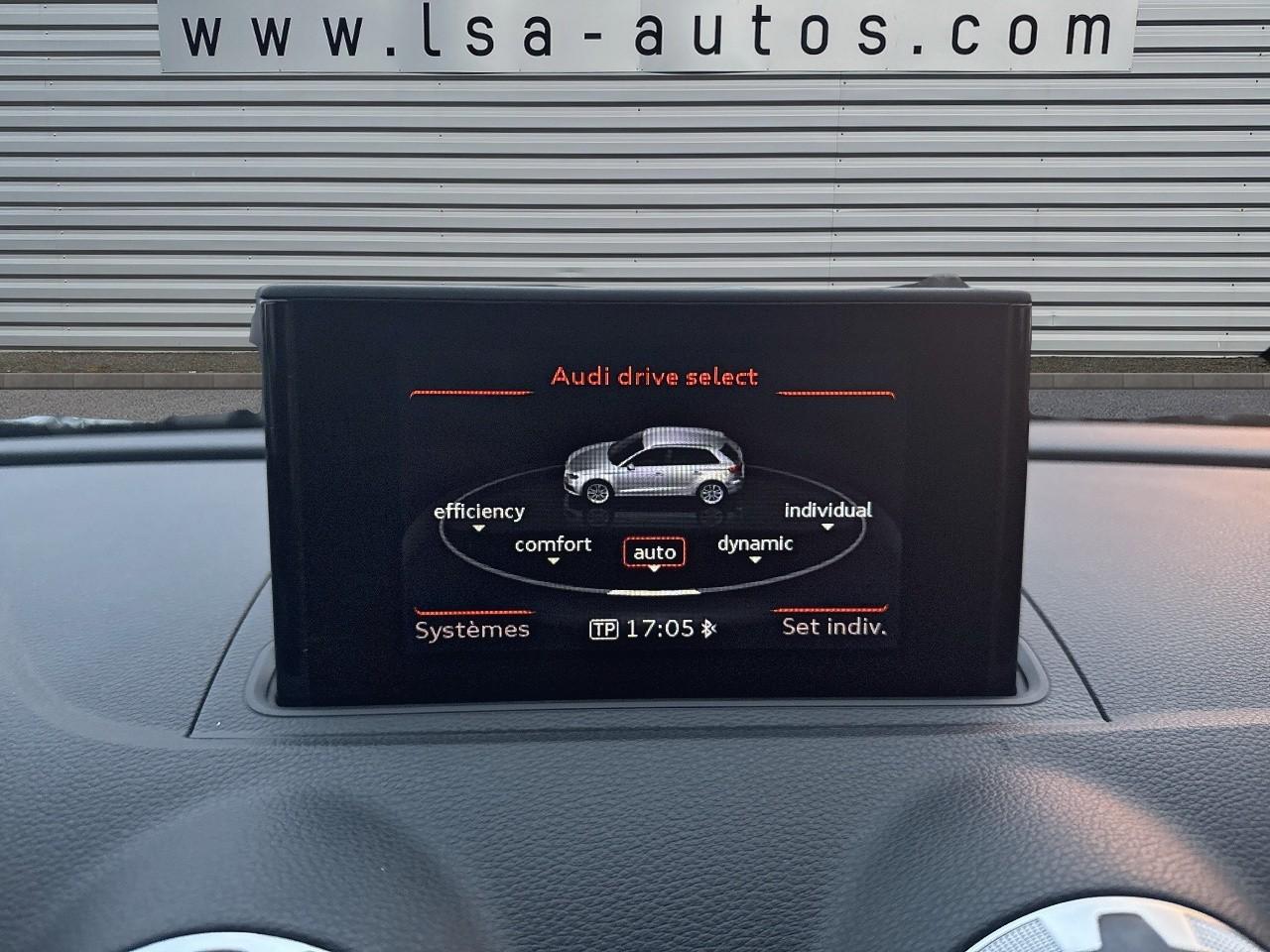 Œilletons de fixation, 4 dans le coffre, pour maintenir les bagages et objets dans le coffre, points de fixation pour le filet mixte en optionAccoudoir central avant coulissant en longueur, avec vide-poches relevable et inclinaison réglableAirbag genoux conducteurAirbags grand volume pour le conducteur et le passagerAirbags latéraux à l'avant intégrés au dossier des siègesAllume-cigare et cendrier amovible, couvercle chromé avec anneaux AudiAntipatinage (ASR)Applications décoratives sur les contre-portes et tableau de bord “Aluminium brossé mat”Applications décoratives sur les panneaux de contre-portes et le tableau de bordAudi Drive SelectAudi Singleframe avec encadrement chromé de la calandreBecquet de pavillon laqué dans la couleur de la carrosserie, avec inserts aérodynamiques latéraux noir brillantBlocage électronique de différentiel (EDS)Boîte à gants grand volume côté passager avant, éclairéeCache-bagages amovibleCarrosserie galvaniséeCeintures de sécurité 3 points automatiques pour toutes les placesChâssis dynamique. À l'avant : suspension Mc-Pherson avec bras triangulés transversaux inférieurs, châssis auxiliaire en aluminium et barre stabilisatrice. À l'arrière : essieu arrière à quatre bras avec système d'amoChâssis Sport, carrosserie surbaissée de 15 mm, avec suspension et amortisseurs plus fermesCiel de pavillon en tissu noirClimatisation automatique Confort avec réglage asservi à la position du soleilContrôle électronique de stabilisation (ESC) avec blocage transversal électroniqueContrôle électronique de stabilisation (ESC) désactivable, avec amplificateur hydraulique de freinage d'urgenceContrôle de ceinture attachée pour toutes les placesContrôle de pression des pneus ( TPMS )Détecteur de pluie et allumage automatique des projecteursDirection assistée électromécanique avec assistance asservie à la vitesse (servotronic)Dossier de banquette arrière rabattable en deux parties 40/60 ou complètementEclairage intérieur à l'avant et à l'arrièreEcrous antivolFeux arrière avec feux de recul blancs et feux de brouillard arrière, incluant troisième feu stop surélevé et éclairage de plaque à LEDFeux de freinage adaptatifsFixation pour sièges enfants ISOFIX et Top Tether pour les places arrièreIdentification du modèle/technologie sur le capot de coffreInscription “S line” sur les ailes avantJantes en aluminium coulé style 5 branches parallèles partiellement polies, 7,5 J x 18" avec pneus 225/40 R 18"Lève-vitres à l'avant et à l'arrière, électriques, avec protection antipincement, ouverture/fermeture par le verrouillage centralisé, fonction ouverture/fermeture par impulsionLave-essuie-glace 2 vitesses, 4 intervalles de balayage réglablesLave-pharesLunette arrière dégivrante, avec minuterieMiroir de courtoisie éclairéMiroir de courtoisie côté conducteur et passagerMMI RadioMoulures de seuils avec insert en aluminium et inscription “S line”Outillage de bord dans le coffre incluant un cricPack aluminium extérieurPack rangement et coffrePare-brise acoustique, améliore l'isolation phonique du pare-brise et réduit les bruits extérieursPare-chocs dans la couleur de la carrosseriePare-soleil rabattables et pivotants, côtés conducteur et passager avant, avec miroir de courtoisie occultablePatères à vêtements sur les montants de pavillon centraux, à gauche et à droite, simplesPhares antibrouillard halogènes, intégrés à la jupe avantPhares halogènes à surfaces libres sous vitre transparente, réglage électrique du site des phares et commande de feux de stationnement, feux diurnesPoignées de maintien. 4 poignées avec mécanisme amortisseur, rabattables, encastrées dans le pavillonPommeau du levier/sélecteur de vitesses en cuir perforé noirPréparation pour téléphone portable (Bluetooth)Prise de courant 12 volts sur la console centrale à l'avantProtection antidémarrage électronique, intégrée à la gestion du moteur, activation automatique par la clé du véhiculeProtection latérale anticollision avec barres extrêmement rigides dans les portières et une structure latérale de carrosserie renforcéeRégulateur de vitesseRétroviseur intérieur électrochromeRétroviseur intérieur jour/nuit, boîtier dans la couleur du ciel de pavillonRétroviseurs extérieurs électriques et dégivrants incluant buses de lave-glaces dégivrantesRétroviseurs extérieurs avec clignotants à LED intégrésRecommandation de repos qui analyse le comportement routier au moyen de différents capteursRoue de secours temporaire de type galetteSellerie mixte en tissu Biathlon et cuirSièges à l'avant avec positionnement en longueur et inclinaison de dossier réglables manuellementSièges conducteur et passager avant réglables en hauteurSièges Sport à l'avant avec bourrelets latérauxSignal sonore pour oubli d'extinction des feuxSorties d'échappement doubles à gauche chroméesSystème d'airbags de têteSystème d'information du conducteur avec écran couleur haute résolution de 3,5 poucesSystème de freinage avec antiblocage (ABS) et répartiteur électronique de freinage (EBV)Système de ventilation et chauffage 4 diffuseurs d'air rondsTémoins de contrôle pour, entre autres : airbag, ABS, ESC/ASR, frein de stationnement serré, électronique EDS, phares, clignotants, circuit de freinage, pression d'huile moteur, fermeture du coffre, système électrique du moteur, système de pr&eacuTapis complémentaires à l'avant et à l'arrière assortis à la couleur de la moquetteTriangle de présignalisation fixé sur l'intérieur du capot du coffreTrousse de secours dans le vide-poches sous le siège passagerVerrouillage centralisé à télécommandeVide-poches sur les habillages des portières ainsi que sur la console centrale avec porte-boissonVolant réglable en hauteur et en profondeurVolant Sport 3 branches multifonction en cuir badgé S line avec méplat et poignées de volant en cuir perfo