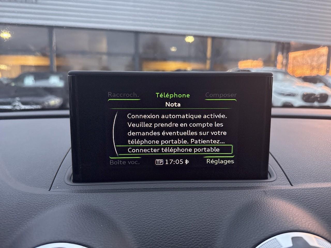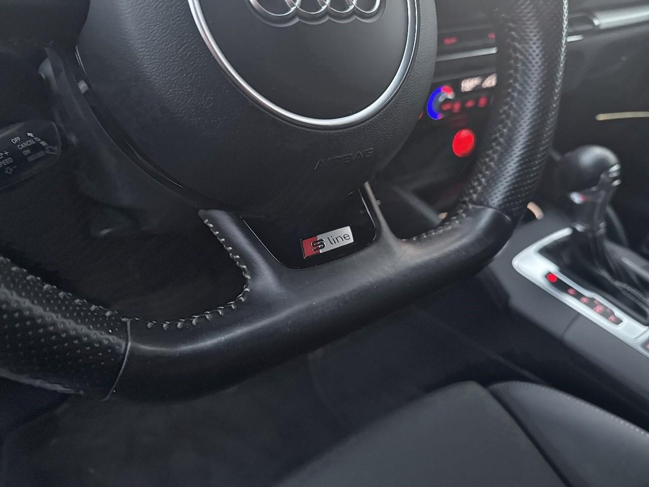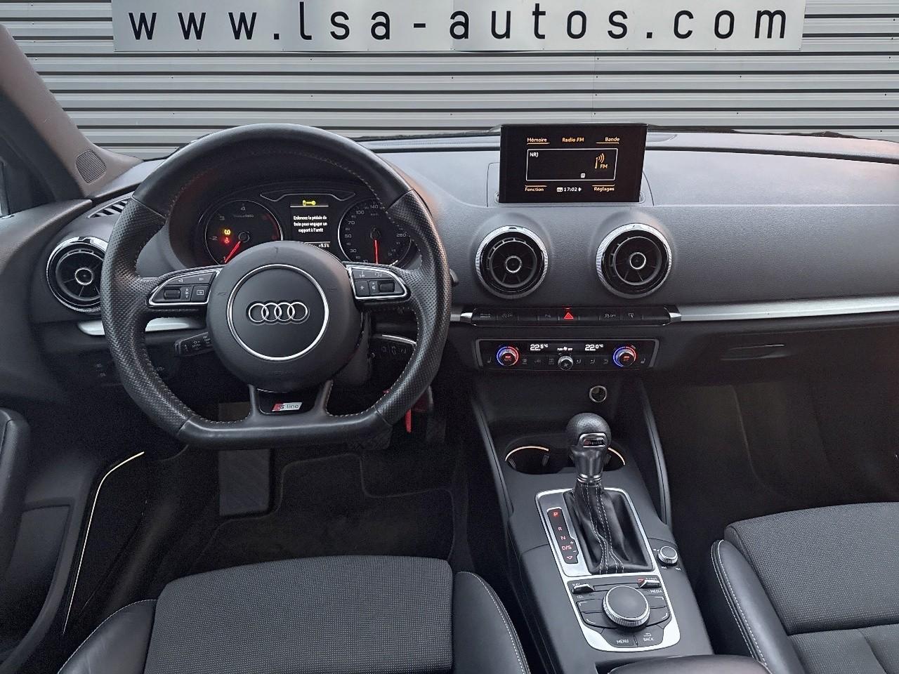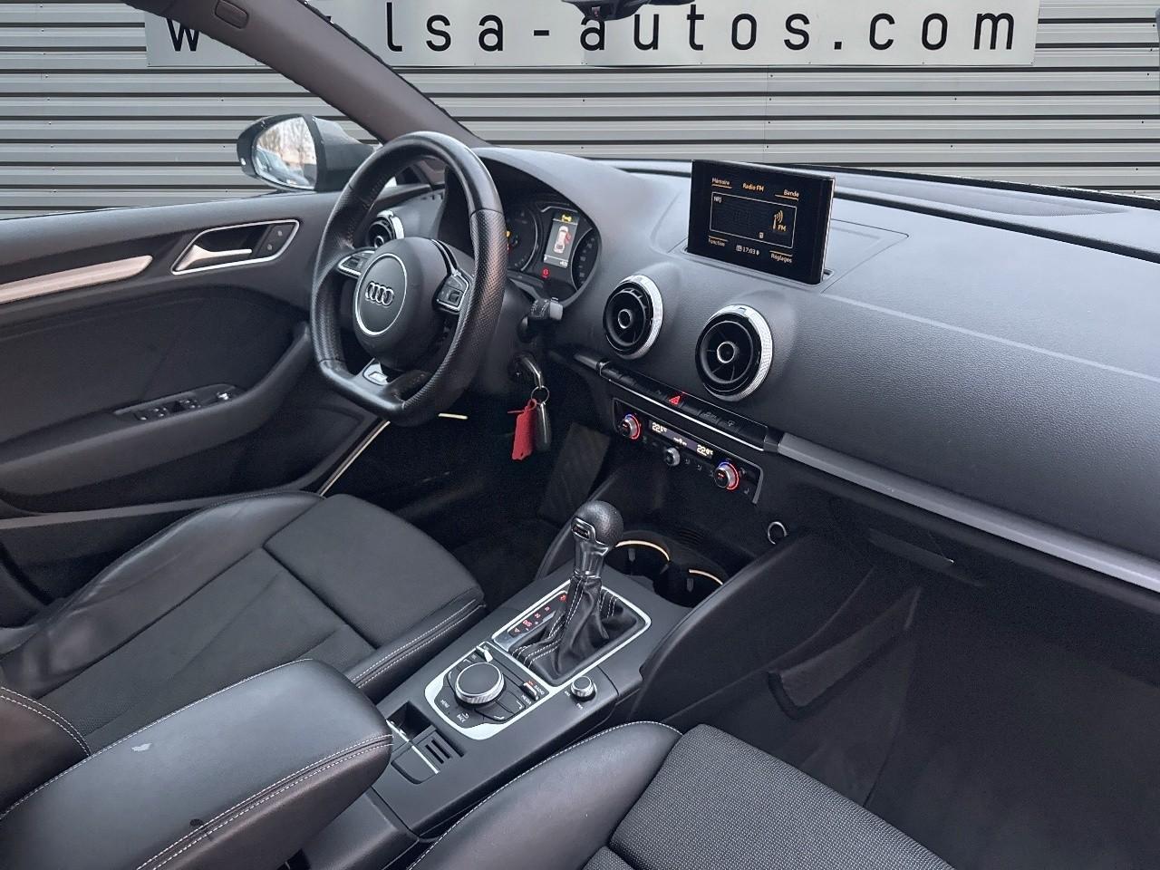 Œilletons de fixation, 4 dans le coffre, pour maintenir les bagages et objets dans le coffre, points de fixation pour le filet mixte en optionAccoudoir central avant coulissant en longueur, avec vide-poches relevable et inclinaison réglableAirbag genoux conducteurAirbags grand volume pour le conducteur et le passagerAirbags latéraux à l'avant intégrés au dossier des siègesAllume-cigare et cendrier amovible, couvercle chromé avec anneaux AudiAntipatinage (ASR)Applications décoratives sur les contre-portes et tableau de bord “Aluminium brossé mat”Applications décoratives sur les panneaux de contre-portes et le tableau de bordAudi Drive SelectAudi Singleframe avec encadrement chromé de la calandreBecquet de pavillon laqué dans la couleur de la carrosserie, avec inserts aérodynamiques latéraux noir brillantBlocage électronique de différentiel (EDS)Boîte à gants grand volume côté passager avant, éclairéeCache-bagages amovibleCarrosserie galvaniséeCeintures de sécurité 3 points automatiques pour toutes les placesChâssis dynamique. À l'avant : suspension Mc-Pherson avec bras triangulés transversaux inférieurs, châssis auxiliaire en aluminium et barre stabilisatrice. À l'arrière : essieu arrière à quatre bras avec système d'amoChâssis Sport, carrosserie surbaissée de 15 mm, avec suspension et amortisseurs plus fermesCiel de pavillon en tissu noirClimatisation automatique Confort avec réglage asservi à la position du soleilContrôle électronique de stabilisation (ESC) avec blocage transversal électroniqueContrôle électronique de stabilisation (ESC) désactivable, avec amplificateur hydraulique de freinage d'urgenceContrôle de ceinture attachée pour toutes les placesContrôle de pression des pneus ( TPMS )Détecteur de pluie et allumage automatique des projecteursDirection assistée électromécanique avec assistance asservie à la vitesse (servotronic)Dossier de banquette arrière rabattable en deux parties 40/60 ou complètementEclairage intérieur à l'avant et à l'arrièreEcrous antivolFeux arrière avec feux de recul blancs et feux de brouillard arrière, incluant troisième feu stop surélevé et éclairage de plaque à LEDFeux de freinage adaptatifsFixation pour sièges enfants ISOFIX et Top Tether pour les places arrièreIdentification du modèle/technologie sur le capot de coffreInscription “S line” sur les ailes avantJantes en aluminium coulé style 5 branches parallèles partiellement polies, 7,5 J x 18" avec pneus 225/40 R 18"Lève-vitres à l'avant et à l'arrière, électriques, avec protection antipincement, ouverture/fermeture par le verrouillage centralisé, fonction ouverture/fermeture par impulsionLave-essuie-glace 2 vitesses, 4 intervalles de balayage réglablesLave-pharesLunette arrière dégivrante, avec minuterieMiroir de courtoisie éclairéMiroir de courtoisie côté conducteur et passagerMMI RadioMoulures de seuils avec insert en aluminium et inscription “S line”Outillage de bord dans le coffre incluant un cricPack aluminium extérieurPack rangement et coffrePare-brise acoustique, améliore l'isolation phonique du pare-brise et réduit les bruits extérieursPare-chocs dans la couleur de la carrosseriePare-soleil rabattables et pivotants, côtés conducteur et passager avant, avec miroir de courtoisie occultablePatères à vêtements sur les montants de pavillon centraux, à gauche et à droite, simplesPhares antibrouillard halogènes, intégrés à la jupe avantPhares halogènes à surfaces libres sous vitre transparente, réglage électrique du site des phares et commande de feux de stationnement, feux diurnesPoignées de maintien. 4 poignées avec mécanisme amortisseur, rabattables, encastrées dans le pavillonPommeau du levier/sélecteur de vitesses en cuir perforé noirPréparation pour téléphone portable (Bluetooth)Prise de courant 12 volts sur la console centrale à l'avantProtection antidémarrage électronique, intégrée à la gestion du moteur, activation automatique par la clé du véhiculeProtection latérale anticollision avec barres extrêmement rigides dans les portières et une structure latérale de carrosserie renforcéeRégulateur de vitesseRétroviseur intérieur électrochromeRétroviseur intérieur jour/nuit, boîtier dans la couleur du ciel de pavillonRétroviseurs extérieurs électriques et dégivrants incluant buses de lave-glaces dégivrantesRétroviseurs extérieurs avec clignotants à LED intégrésRecommandation de repos qui analyse le comportement routier au moyen de différents capteursRoue de secours temporaire de type galetteSellerie mixte en tissu Biathlon et cuirSièges à l'avant avec positionnement en longueur et inclinaison de dossier réglables manuellementSièges conducteur et passager avant réglables en hauteurSièges Sport à l'avant avec bourrelets latérauxSignal sonore pour oubli d'extinction des feuxSorties d'échappement doubles à gauche chroméesSystème d'airbags de têteSystème d'information du conducteur avec écran couleur haute résolution de 3,5 poucesSystème de freinage avec antiblocage (ABS) et répartiteur électronique de freinage (EBV)Système de ventilation et chauffage 4 diffuseurs d'air rondsTémoins de contrôle pour, entre autres : airbag, ABS, ESC/ASR, frein de stationnement serré, électronique EDS, phares, clignotants, circuit de freinage, pression d'huile moteur, fermeture du coffre, système électrique du moteur, système de pr&eacuTapis complémentaires à l'avant et à l'arrière assortis à la couleur de la moquetteTriangle de présignalisation fixé sur l'intérieur du capot du coffreTrousse de secours dans le vide-poches sous le siège passagerVerrouillage centralisé à télécommandeVide-poches sur les habillages des portières ainsi que sur la console centrale avec porte-boissonVolant réglable en hauteur et en profondeurVolant Sport 3 branches multifonction en cuir badgé S line avec méplat et poignées de volant en cuir perfo