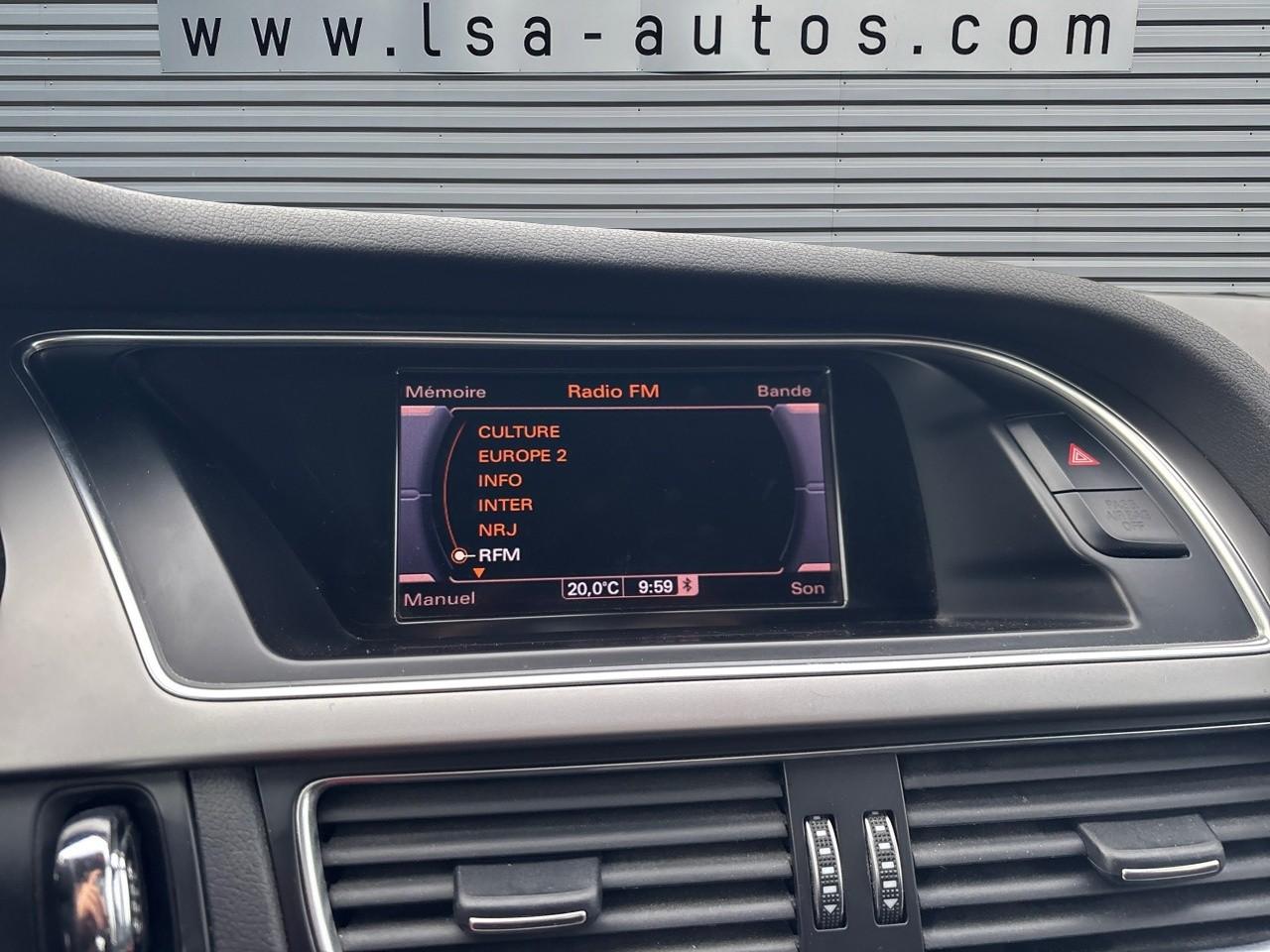 Accoudoir central, dans le dossier des sièges arrière, rabattableAirbags grand volume pour conducteur et passager avant avec détecteur de la position d'assise ; airbag adaptatif pour le conducteur et passager avantAirbags latéraux (airbag thorax et bassin à l'avant)Allume-cigare intégré dans le cendrier avantAntipatinage électronique ASRApplications décoratives en vernis rétro-réfléchissant sur le tableau de bordAppuie-tête, réglables à l'avant et à l'arrièreAudi Backguard, en cas de collision arrière, la conception du siège permet l'amortissement du haut du corps et le soutien plus précoce de la têteAutoradio Chorus lecteur CD, logique d'utilisation MMI, écran monochrome de 6,5”Avertisseur deux tons avec commande au centre du volantBlocage électronique de diff érentiel EDS, aide au démarrage intervenant jusqu'à une vitesse d'environ 100 km/hCalandre Singleframe de couleur gris platineCapot de coffre à ouverture automatiqueCarrosserie galvaniséeCeintures de sécurité, automatiques à trois points pour tous les sièges, contrôle de port de ceinture à l'avant, couleur assortie à celle de l'habitacleCendriers dans la console centrale à l'avant et à l'arrièreChâssis DynamiqueCiel de pavillon en tissu, selon la couleur choisie, argent lunaire, noir ou beige pashminaClimatisation automatiqueColonne de direction de sécurité : contient un système mécanique de déplacement avec fonction d'amortissement qui complète le potentiel de sécurité de la ceinture et de l'airbagContact d'allumage électronique ; clé de contact pouvant mémoriser différentes données d'entretienContrôle de pression des pneus : vérifie durant la marche la pression de chacune des roues en serviceCouvre-bagage coulissant automatiquement par glissière le long du montant DCric dans le coffreDésactivation de l'airbag passager (désactive aussi l'airbag latéral passager)Direction asservie à la vitesse servotronicDossier des sièges arrière rabattable séparément 2/3 - 1/3, avec déverrouillage à distance des dossiers depuis le coffreEclairage intérieur à extinction temporisée et contacteurs sur toutes les portièresEcran 6,5” couleur sur le tableau de bord pour l'affi chage des fonctions radio, climatisation et menu du véhicule, ainsi que de l'heureEcran central avec affichage monochrome, pour l'affichage de la température extérieure, de la portée et de la fréquence radioEcrous antivolErgots de maintien pour sacs à provisionsEssuie-lave-glace arrièreÉtui à lunettes, dans le module d'éclairage intérieur avant, au-dessus du rétroviseur intérieurFilet de séparation, vertical, amovibleFonction Start/Stop : coupure et redémarrage automatiques du moteur en cas d'arrêt prolongé au point mort, désactivable par un bouton sur la console centraleFrein de stationnement electromécaniqueIndicateur d'usure des disques à l'avant, affi chage sur le système d'information du conducteurIndicateur de rapport de vitesse dans le système d'information du conducteur : apporte assistance au conducteur dans le choix du rapport de vitesse adaptéIndicateur de température extérieure dans le système d'information du conducteur, en cas de températures inférieures à +5 °CInstrumentation à éclairage réglable, tachymètre électronique avec compteur kilométrique totalisateur et journalier, compte-tours, horloge, indicateur de température du liquide de refroidissement et jauge de carburantJantes en aluminium forgé style dynamique 10 branches 7,5 J x 16”, avec pneus 225/55 R 16Lave-glace, deux vitesses, réglage d'intermittence sur 4 niveaux, commande de balayage coup par coup, lavage-balayage automatiqueLève-vitres électriques à l'avant et à l'arrière avec protection antipincement et fonction ouverture/fermeture Confort par impulsionLimiteurs d'effort des ceintures de sécurité avantLunette arrière dégivrante, avec minuterieOutillage de bord dans le coffrePack RangementPhares antibrouillard intégrés dans le pare-chocs avantPhares halogènes à projecteur ellipsoïdal sous vitre transparente, réglage électrique du site des phares et commande d'éclairage de stationnement, feux diurnes avec réflecteurs séparésPlancher de coffre réversible. Laisse place à un cuvelage synthétique amovible et facile à nettoyerPoignées de maintien, amorties, rabattables dans les deux sens, dans le ciel de pavillonPoignées de portières extérieures laquées dans la couleur de carrosserie, poignées cintrées agréables à utiliserPorte-boissons, double dans la console centralePré-équipement attelagePréparation audio Basic Plus : amplificateur 4 canaux, 8 HP, puissance totale 80 WPréparation ISOFIX pour sièges latéraux arrière et siège passager avantPrétensionneurs des ceintures de sécurité avantPrise 12 V sur le côté droit du coffreProgramme électronique de stabilisation ESP, relie ABS, ASR et EDSProtection antidémarrage électronique, intégrée à la gestion du moteur, activation automatique par la clé du véhiculeQuatre oeilletons de fixation, pour maintenir les bagages et objets dans le coffre, points de suspension pour le filet mixteRampes de pavillon en aluminium poliRangements dans les contre-portes à l'avant avec casier de rangement pour boissons, rangements dans les contre-portes arrièreRégulateur de vitesse électronique actif dès 30 km/h. Inclut fonction de freinage. Affichage de la vitesse paramétrée sur l'écran de l'ordinateur de bordRéservoir avec protection contre les erreurs de ravitaillementRétroviseurs extérieurs avec clignotants latéraux intégrés à diodes, réglables électriquement, boîtiers dans la couleur de la carrosserie, miroirs asphériquesRétroviseurs extérieurs et buses de lave-glace chauffantsRoue de secours temporaireSellerie tissu CosinusSideguard, système d'airbags de tête grand format, se déploie devant les vitres latérales afin de protéger les passagers avant et arrière en cas de collision latérale