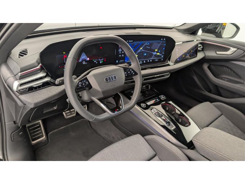 Airbag conducteur et passager avec désactivation de l'airbag du siège passagerAssistance au freinage d'urgence à l'AV Scanne la zone située devant le véhicule et peut, en fonction de la situation et de la vitesse, avertir de l'imminence d'une collision et déclencher les mesures de freinage appropriées. Les piétons Assistant d'évitement et assistant de braquageAssistant d'intersection AV Surveille la zone située devant et sur le côté du véhicule aux intersections et aux sorties de route à l'aide des capteurs radar intégrés à l'AV du véhicule. Dans les limites du système, iAudi connect Navigation & InfotainmentAudi Drive Select Permet de sélectionner différents modes de conduite: Efficiency, Confort, Dynamic, Lift, Individual. Les systèmes et équipements du véhicules s'adaptent suivant le mode sélectionnéAudi phone box lightAudi Virtual Cockpit PlusChâssis Sport Meilleure dynamique de conduite, une tenue de route agile et une allure sportive (Châssis abaissé de 20mm)Ciel de pavillon en tissu noirContrôle de pression des pneumatiquesDétection des panneaux de signalisation par caméraDossier de banquette AR rabattable à distance et en trois parties 40 : 20 : 40 ou complètementEléments de la console centrale Noir BrillantFixation de siège pour enfant i-Size côté passager AV et i-Size et Top Tether pour les sièges AR extérieursGarniture du tableau de bord, des contre-portes et des accoudoirs de portes en tissu KaskadeHayon de coffre à ouverture et fermeture électriqueIndicateur de perte de pression des pneumatiquesJantes style à 5 branches doubles en V, Gris Graphite, tournées brillantes 8,0J x 19, pneus 245/40 R19Limiteur de vitesse basé sur la détection de signalisation routièreNavigation MMI avec MMI touch Le système de navigation MMI plus avec MMI touch offre : - l'écran panoramique MMI avec technologie OLED, comprenant l'Audi virtual cockpit plus avec écran de 11,9 pouces ainsi que l'écran MMI touch de14,5" - systèPédalier et repose-pieds en acier inoxydablePack extérieur S linePack intérieur S line : Sièges AV chauffants Appui lombaires Application intérieures en style aluminium Sellerie tissu Kascade Eclairage d'ambiance plus 30 couleurs disponibles Inserts décoratifs en aluminium mat brossé Sièges AV à réglagPack Tech : Alerte de sortie de voie Climatisation automatique 3 zones Rétroviseur intérieur à réglage jour/nuit automatique Rétroviseurs extérieurs réglables dégivrants et rabattables électriquement à réglage jour/nuit auPréparation pour dispositif d'attelageRéception radio numérique (DAB)Réglage du volant manuelSécurité enfant commandée électriqueSièges Sport avec monogramme SVitrage Privacy : lunette AR, vitres de portières AR et vitres latérales AR surteintéesVolant multifonction S en cuir à trois branches avec palettes