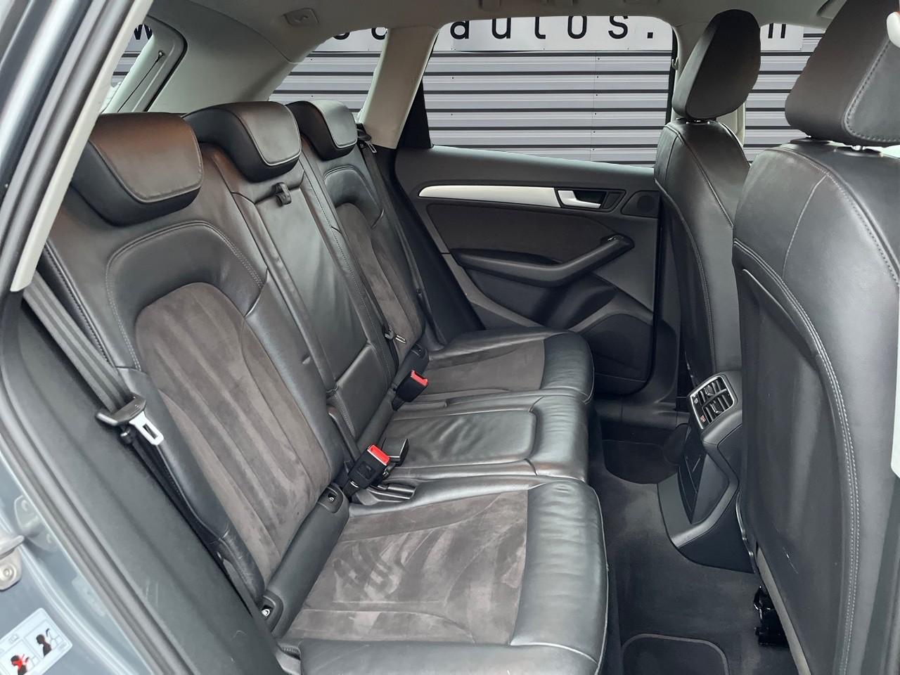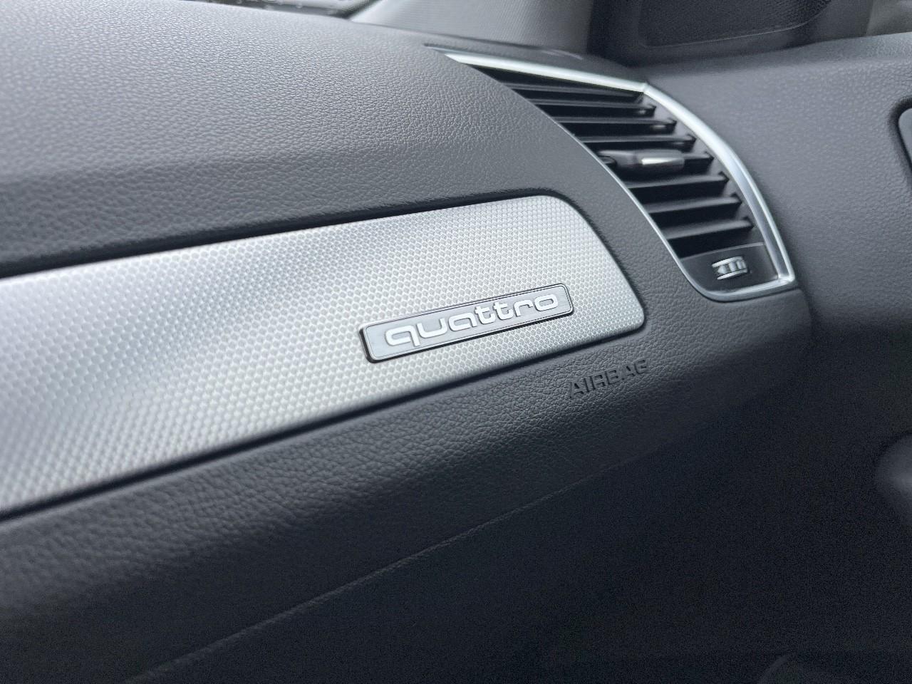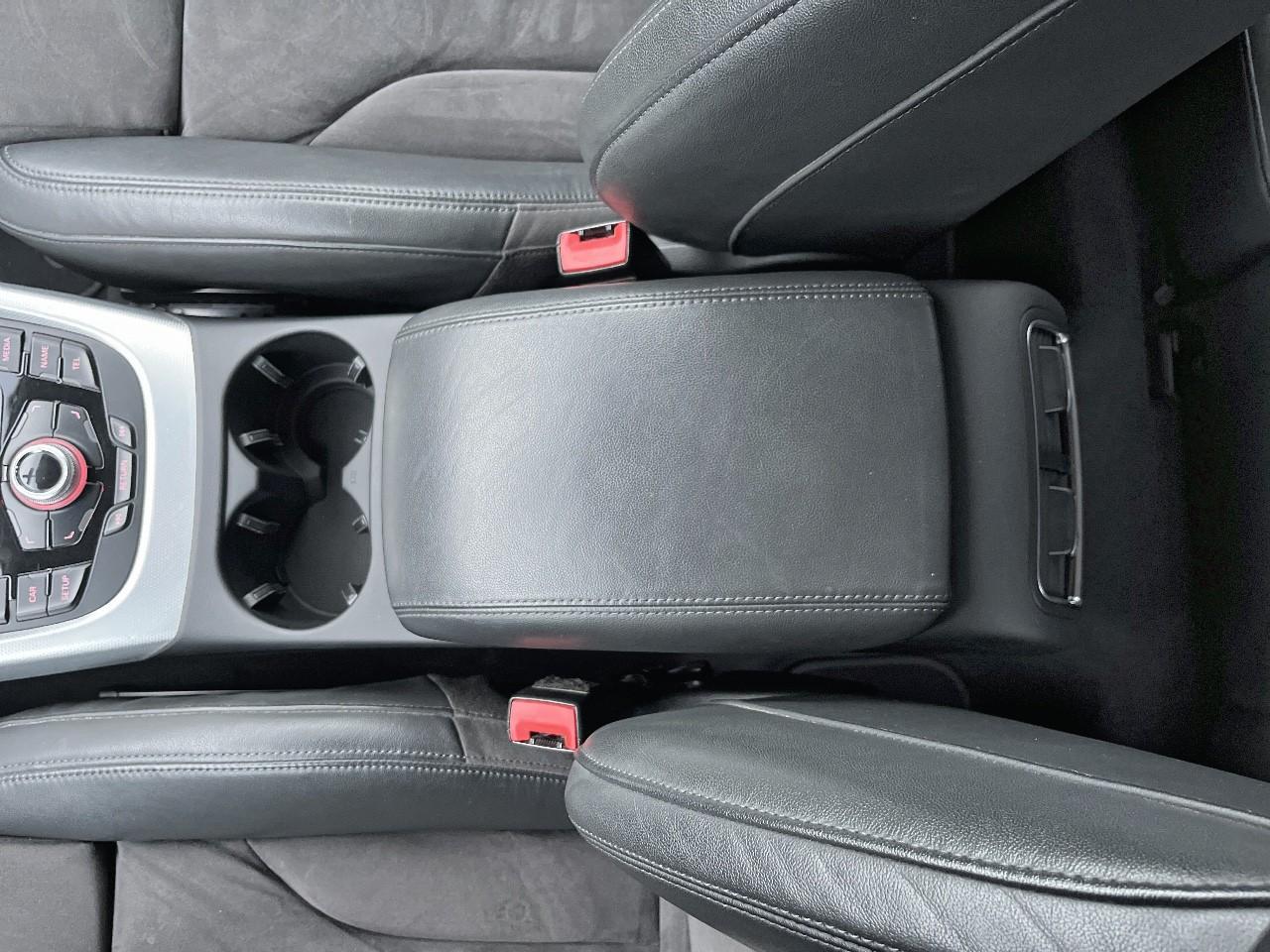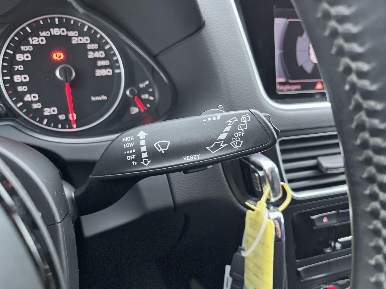 Étui à lunettes, dans le module d'éclairage intérieur avant, au-dessus du rétroviseur intérieurAccoudoir central dans le dossier des sièges arrière, rabattableAirbag grand volume pour le conducteur et le passager avant avec détection de la position du siège, airbag adaptatif pour le conducteur et le passager avantAirbags latéraux (airbag thorax et bassin à l'avant)Anti-démarrage électronique intégré à la commande du moteur ; activation automatique par la clé du véhiculeAntipatinage électronique ASR : pour une bonne traction, empêche le patinage des roues motricesApplications en aluminium dimension argent sur tableau de bord, contre-portes et console centraleAppuie-têtes, réglables à l'avant et à l'arrièreAssistance au freinage d'urgenceAudi BackguardAvertisseur deux tons sur le moyeu du volantBanquette arrière rabattable 60/40, déverrouillage à distance des dossiers via un levier dans la garniture latérale du coffreBecquet de pavillonCarrosserie galvaniséeCeintures de sécurité : ceintures trois points à enrouleur pour tous les sièges, avec contrôle du port à l'avant, assorties à la couleur de l'habitacleCendrier dans la console centrale à l'avant et à l'arrière, allume-cigare à l'avantChâssis DynamiqueChangeur 6 CD/MP3/WMA pour GPS PlusChargeur 6 CDCiel de pavillon en tissu : couleur gris lumière ou beige lin selon la couleur choisie pour la garniture intérieureClimatisation automatique Confort PlusColonne de direction de sécurité : complète le potentiel de protection de la ceinture de sécurité et de l'airbagConsole centrale, surélevée, avec compartiment de rangement et volet roulantContact d'allumage électronique, clé de contact mémorisant différentes données d'entretienContrôle électronique de stabilisation ESC 8.1 avec détection de barres de toitContrôle de la pression des pneusDéverrouillage de coffre par touche douce : déverrouillage avec assistance électriqueDirection assistée électromécanique, direction à crémaillère sans entretien avec asistance asservie à la vitesseEclairage intérieur, à temporisation avec contacteur sur toutes les portièresEcran 6,5 pouces couleur intégré au tableau de bord, pour l'affichage des fonctions de la radio, de la climatisation et des fonctions du menu du véhicule, ainsi que de l'heureEcran central avec affichage monochromeEcrous de roues antivol ; ne s'enlèvent qu'au moyen de l'adaptateur fourniEssuie-glace arrière, avec lavage-balayage automatique, balayage au passage de la marche arrière pendant la durée de celle-ci (quand les essuie-glace avant sont activés)Essuie-glace deux vitesses : réglage d'intermittence sur 4 niveaux, commande de balayage coup par coup, lavage-balayage automatiqueFeux arrière, rouges, avec feux de recul blancs, feux arrière de brouillard intégrés, avec capot de coffre ouvert : fonction feux arrière dans le bandeau d'éclairage du pare-chocsFilet de séparation, vertical, amovibleFrein de stationnement électromécanique : comprend la fonction de frein de secours sur les quatre roues durant la marcheGPS PlusHill Descent Control (HDC) : contrôle de descente qui permet de maintenir une vitesse stabilisée entre 9 km/h et 30 km/h. Possibilité d'activer le système jusqu'à 60 km/hIdentification du modèle à l'arrière, inscription “quattro” à l'arrière, sur la calandre et sur le tableau de bord côté passager avant ; sur demande sans identification du modèleIndicateur de rapport de vitesse dans le système d'information du conducteur : apporte une assistance au conducteur dans le choix du rapport de vitesse adaptéIndication de l'usure des garnitures de frein à l'avant ; affichage sur l'écran centralInstrumentation, avec éclairage réglableInterface BluetoothJantes en aluminium coulé style 5 branches en V, 8 J x 18” avec pneus 235/60 R18 103WLève-vitres électriques à l'avant et à l'arrière avec protection anti-pincement et fonction ouverture/fermeture Confort par impulsionLimiteurs d'effort sur les ceintures de sécurité avantLunette arrière dégivrante avec minuterieMiroir de courtoisieMoulures de seuils de portes en plastiqueOEilletons de fixation, quatre oeilletons dans le coffre pour arrimer le chargementOrdinateur de bord couleur, système de contrôle Autocheck et programme efficiencyOutillage de bord dans le coffrePack Aluminium extérieurPack Design Cuir avec sièges avant normauxPare-chocs, laqués dans la couleur de carrosserie, bas de pare-chocs avant et arrière ainsi que bandeaux de portières en bas, noir, matPare-soleil, rabattables et pivotants, côté conducteur et passager avantParking System arrièrePhares antibrouillard intégrés dans le bouclier avantPhares halogènes à surfaces libres sous vitre transparentePoignées de maintien avec mécanisme amortisseur : quatre poignées encastrées dans le ciel de pavillonPoignées de portière extérieures laquées dans la couleur de carrosseriePréparation pour crochet d'attelagePréparation pour siège enfant ISOFIX pour sièges latéraux arrièrePrétensionneurs des ceintures de sécurité avantQuattro, transmission intégrale permanente avec répartition asymétrique et dynamique de couple, différentiel central autobloquant, blocage électronique de différentiel EDS par intervention sur les freins des roues motricesRégulateur de vitesseRéservoir avec protection contre les erreurs de ravitaillementRétroviseur intérieur jour/nuit automatique incluant détecteur de pluie et de luminositéRétroviseurs extérieurs : avec clignotants à diodes intégrés, réglables et rabattable électriquement, dégivrants avec coques laquées dans la couleur de carrosserie, miroir asphérique à gaucheRétroviseurs extérieurs dégivrants et rabattables électriquementRampes de pavillon en aluminium poli incluant barres de toit transversalesSièges avant avec réglage manuel de la hauteur, de la longueur et des appuie-têtes, ainsi que réglage de l‘inclinaison d