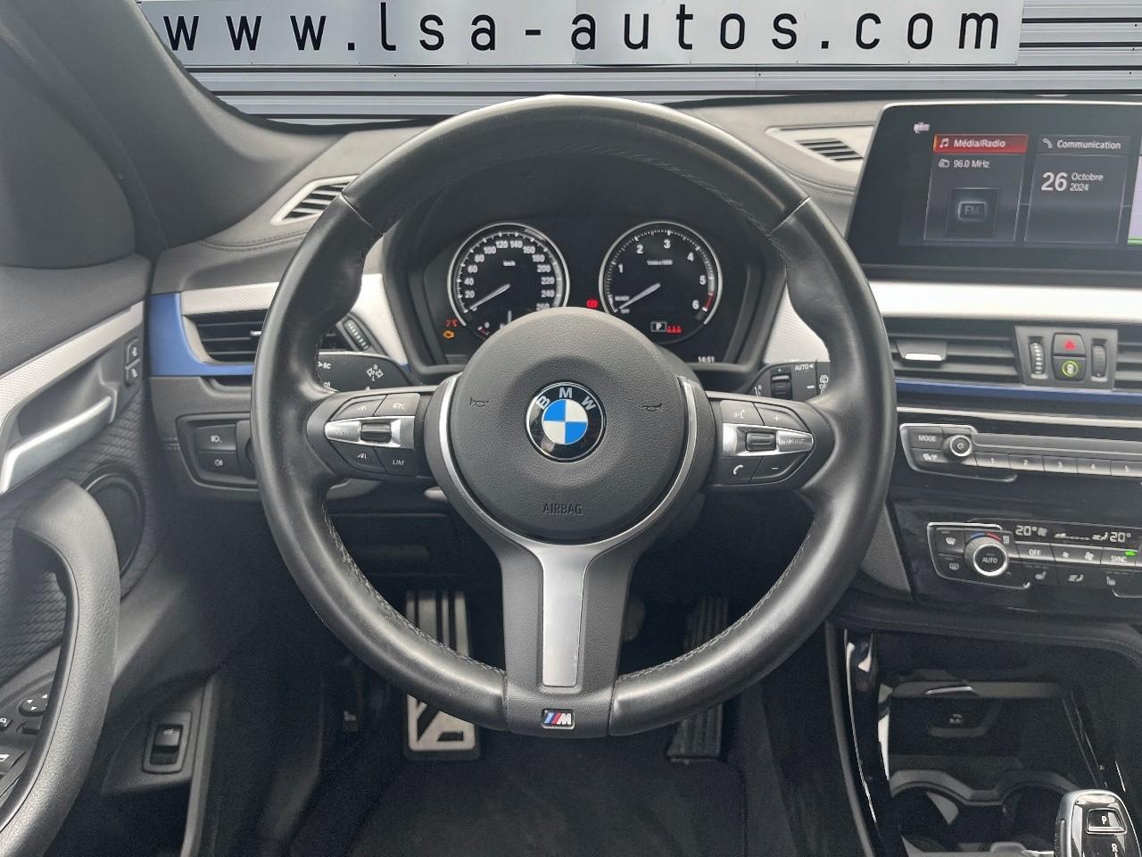 6 haut-parleurs dont 2 caissons de basse sous les sièges avant, amplification 4 x 25wABS avec aide au freinage d'urgenceAccoudoir central avant avec compartiment de rangement, réglable sur 5 positionsAirbag passager déconnectableAirbags de tête avant et arrière avec voile de protection contre les débris de verreAirbags frontaux conducteur et passagerAirbags latéraux avantAntenne de toit « aileron de requin »Anti-démarrage électroniqueAppel d'Urgence IntelligentAttention Assist : système de détection de somnolenceAutoradio BMW Professional avec écran couleur 6,5”, 8 touches de favoris programmables et “Controller” iDrive avec touches de raccourci, compatibilité MP3, double Tuner RDS FM, info-routeAvertisseur de risque de collisionBanquette arrière rabattable 40/20/40Boîte à gants verrouillable éclairéeBoîte de vitesses automatique à 8 rapportsBuses de lave-glace chauffantesCarnet d'entretien électronique embarqué "BMW Service History"Ceintures 3 points à toutes les places avec limiteur d’effortCiel de pavillon "Anthrazit "Clés radiocommandées à mémorisation automatique des réglages "Personal Profile"Climatisation automatique bi-zone, avec aérateurs à l'arrièreCommande électrique du hayonConstruction allégée intelligenteContrôle de la TransmissionContrôle dynamique de la stabilité DSCContrôle Dynamique de la Traction DTCCrochets de fixation pour cintre (x2 à l'arrière)Démarrage sans clé via le bouton Start/StopDétecteur de pluie et allumage automatique des projecteursDéverrouillage électrique du hayon via la poignée ou la clé radiocommandéeDifférentiel à blocage électronique pour optimiser la motricitéDiffuseurs aérodynamiques avant "Air Curtain"Direction M SportEclairage d'ambiance avec deux couleurs au choixEcrous antivolFeux antibrouillard arrièreFeux de jour à LEDFeux de stop dynamiques clignotantsFiltre à particulesFixations Isofix aux places latérales arrièreFonction d'arrêt et de redémarrage automatique du moteurFonctions "Ma BMW à distance"Frein de parking électromécaniqueGrilles de calandre cerclées de chrome avec 8 barreaux verticaux noir brillantIndicateur de limitation de vitesseInserts décoratifs en Aluminium Hexagon soulignés de bleu matInterface Bluetooth avec fonction streaming audioJantes en alliage léger 18" bicolores à rayons doubles style 570MKit aérodynamique MKit EclairageKit rangementLimiteur et régulateur de vitesse avec maintien de la vitesse en descenteLogo M sur les ailes avantMesure individuelle de pression des pneumatiquesMontant central extérieur noir brillantNavigation multimédia BusinessNotice d'utilisation intégréeOrdinateur de bord avec Check-Control et indicateur de température extérieurePack ConfortPack SimpliCityPack Sport MPoignées de portes couleur carrosseriePort USB avec connectivité iPodProjecteurs antibrouillard à LEDProjecteurs Full LEDRails de toit noir brillant Shadow line BMW IndividualRepose-pied conducteur siglé "M"Rétroviseurs extérieurs à réglages électriques (asphérique côté conducteur), dégivrants avec répétiteur de clignotant intégréRétroviseurs extérieurs couleur carrosserieSélecteur de mode de conduite - 3 modes : "ECO PRO", "Confort" et "Sport"Sellerie Tissu 'Hexagon'/Similicuir Sensatec SchwarzServices Après-Vente connectés BMW TeleServicesServices BMW ConnectedDriveSeuils de portes signés "BMW"Shadow Line M brillantSièges Advanced pour conducteur et passager avantSièges conducteur et passager réglables en hauteurSortie d'échappement double (une de chaque côté), ronde et chromée, diamètre de 90 mmSuspension DirectDriveSystème anti-collision à basse vitesseSystème de récupération de l'énergie au freinageTapis de sol en veloursTechnologie 4 roues motrices intelligente xDriveTechnologie BMW TwinPower Turbo avec injection directeTeinte de carrosserie "Alpinweiss" unieTouches multifonctions sur le volantTriangle de présignalisation avec trousse de premier secoursTuner DABVerrouillage automatique des portes dès 15km/hVerrouillage centralisé des portes, du coffre et de la trappe à carburantVitres avant et arrière électriques à impulsion avec système ant-ipincementVolant M gainé cuirVolant réglable en hauteur et en profondeur