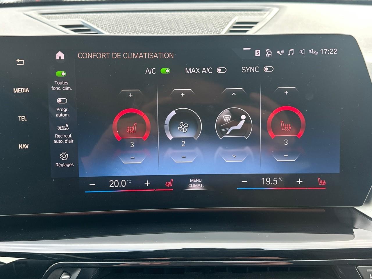 6 haut-parleursAccoudoir central arrièreAccoudoir central avant avec commandes intégréesActive GuardAirbag central entre les sièges avantAirbags frontaux conducteur et passager (déconnectable côté passager)Airbags latéraux avantAirbags rideaux de tête pour places avant et latérales arrièreAppuis-tête avant et latéraux arrière réglables en hauteurBanquette arrière rabattable 40/20/40BMW Live Cockpit Navigation PlusBoîte de vitesses robotisée avec palettes au volantCapteurs d'impactsCarte SIM 4G LTE pour les Services ConnectedDriveCeintures de sécurité 3 points à toutes les placesCiel de pavillon M AnthraciteClés radiocommandées à mémorisation automatique des réglages "Personal Profile"Clignotants LED intégrés aux feux de jourClimatisation automatique bi-zone avec microfiltreCommande électrique du hayonConsole centrale avec 2 portes gobeletContour de vitres noir matContrôle Dynamique de la Stabilité DSC+ avec fonctionnalités étenduesDémarrage sans cléDétecteur de pluie et allumage automatique des projecteursDeux crochets escamotables pour accrocher des sacs, filet à bagages et prise 12 V dans le coffreDirection à assistance électrique servotronicDispositif d'éclairage ‘'Follow me home''Ecran WidescreenEcrous antivolEléments extérieurs et intérieurs M SportFeux de sortie de porte avant (porte ouverte)Feux et clignotants arrière à technologie LEDFonction cargo : réglage de l'inclinaison de la banquette arrière à 12° (Jusqu'à 100 litres de chargement additionnel)Fonction hotspot WiFiFonction Stop-Start automatiqueFrein de parking électromécanique avec fonction "Automatic Hold"Grilles de calandre cerclées de chrome avec barreaux verticaux noirsHabillage Luxury : haut de la planche de bord et panneaux de porte en Sensatec noir avec surpiqûresInserts de couleur Noir brillant sur la console centraleInserts décoratifs M Aluminium HexacubeInterface téléphone bluetooth avec port USBJantes en alliage léger 18" style 838 M bicolores à rayons doublesKit EclairageKit rangementLève-vitres avant et arrière électriques avec commande par impulsion et sécurité enfantsMesure individuelle de pression des pneumatiquesMy Modes avec 5 modes de conduite: Personnel, Efficient, Sport, Relax, ExpressivePack Connected ProPare-choc arrière avec inserts chromés en LPare-choc avant avec air curtains en noir matPark AssistPhares à LEDPoignées de portes affleurantesPorts USB Type C à l'avant (x2) et à l'arrière (x2)Prises 12V (console centrale avant et coffre)Rails de toit Shadow Line M brillantRangement additionel sous plancher amovibleRégulateur de vitesse avec fonction freinage et limiteur de vitesseRétroviseurs extérieurs chauffant avec clignotant intégréRétroviseurs extérieurs couleur carrosserieSellerie Alcantara / Sensatec Schwarz avec surpiqûres contrastantes bleuesServices Après-Vente connectés BMW TeleServices (durée de vie de la voiture)Shadow Line M brillantSièges Advanced pour conducteur et passager avantSièges avant réglables manuellement longitudinal / hauteur d’assise / inclinaison du dossierSortie d'échappement simple non visibleSpoiler arrière avec feu stop à LEDSuspension Adaptative MSystème audioSystème d'éclairage de bienvenueSystème de détection de la somnolence du conducteurTapis de sol en veloursTeinte de carrosserie "Alpinweiss" unieTouches multifonctions sur le volantTuner DABVerrouillage centralisé des portes, du coffre et de la trappe à carburantVolant M gainé cuir