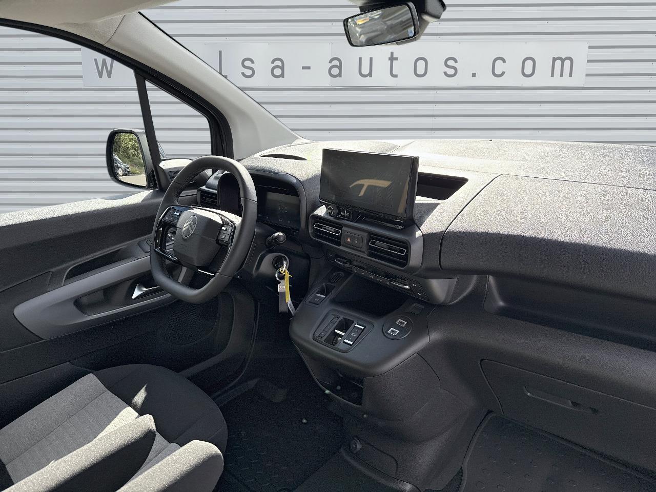 3 sièges arrière indépendants escamotables en rang 2ABS avec aide au freinage d'urgenceAide au démarrage en côteAide au stationnement arrièreAirbags frontaux, latéraux AV et rideauxAllumage automatique des projecteursAmbiance Urban GreyBarres de toit longitudinales noires brillantesBluetoothCâble de recharge Wallbox 7,4kW monophasé Mode 3 pour prise Type 2Caméra de recul avec Top Rear VisionCapucine de pavillonChargeur embarqué 7kW (AC) / 100kW (DC)Citroën Connect SOS et assistanceClimatisation automatique bi-zoneCombiné Numérique 10'' couleurCommutation automatique des feux de routeCondamnation centralisée avec 1 plip HF + 1 cléContrôle dynamique de stabilité (ESP) et antipatinage des roues (ASR)Coques de rétroviseurs noir vernisDétecteur de sous-gonflageESCEssuie-glace à déclenchement automatiqueFeux diurnes Eco LEDFixation ISOFIX sur sièges rang 2Fonction Mirror Screen (Apple Carplay / Android Auto ) sans filFrein de stationnement électriqueHayon arrière vitré avec essuie-glace et dégivrageJantes alliage 16''Lève-vitres avant et arrière (rang 2) électriques et séquentielsLunette arrière ouvrante surteintéePack SafetyPeinture opaque Blanc KaolinPneumatiques 205/60 R16 95UPoignées de porte extérieures noires verniesPoignées de portes extérieures couleur caissePorte latérale coulissante droitePorte latérale coulissante gaucheProjecteurs antibrouillardProjecteurs EcoLEDRégulateur et limiteur de vitesseRétroviseurs extérieurs réglables électriquement et dégivrantsRétroviseurs extérieurs rabattables électriquementRadio numérique DAB sur écran tactile 10" couleur HDRangement fermé derrière le combinéSécurité enfants électriqueSiège conducteur à réglage lombaire avec accoudoirSiège passager individuel rabattable avec accoudoirTablette arrière cache-bagages à 2 positionsTablette aviation au dos des sièges avantVitres entrebaillables en rang 2Vitres fixes en rang 3Vitres surteintées sur rangs 2 et 3Volant multifonctions cuir