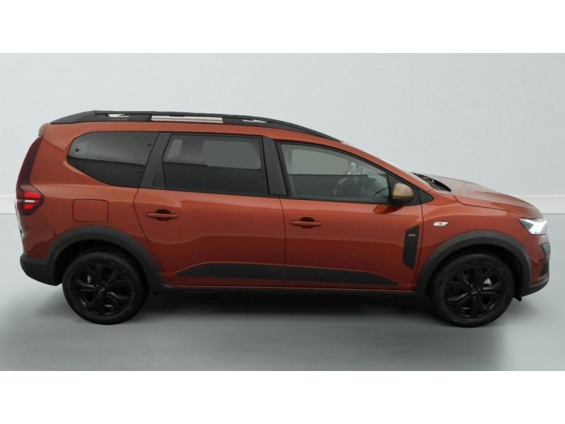 3 appuis-têtes ARAide au parking AV / ARAirbag frontal conducteur et passagerAirbag frontal passager désactivableAirbag latéral AV : thorax + rideauAlerte franchissement de ligne et assistant maintien dans la voieAllumage des feux et essuie-glace automatiquesAssistance au freinage d'urgence + allumage des warningsBanquette AR avec dossier rabattable en portefeuille 1/3 -2/3Barres de toit modulablesBoîte de vitesse manuelleBouton appel d'urgence E-callCaméra de reculCarte mains libresCartographie Europe de l'OuestClimatisation automatiqueCluster TFTCondamnation centralisée des portesCondamnation des ouvrants en roulantConsole semi-haute + rangement fermé avec accoudoirDétecteur d'angle mortDétection de pression des pneusDirection assistéeEclairage du coffreEclairage plafonnier AREnjoliveurs bas de porte coffreESPExtended GripFeux anti brouillardFeux AR avec signature lumineuse YFeux de jour à LEDFiltre à particulesFrein de parking électriqueJantes alliage 16'' MAHALIA diamantée noir avec cabochon Brun CuivréKit de gonflageLève-vitre conducteur électrique impulsionnelLève-vitres AR électriquesMedia NAV (écran 8'' avec réplication smartphone, navigation, 6 haut-parleurs, 2 USB)Mode écoOrdinateur de bordPrédisposition EthylotestPrise accessoire en rang 3Régulateur de vitesseRétroviseur intérieur jour/nuitRétroviseurs extérieursRétroviseurs extérieurs réglables électriquement + dégivrantsRappel de bouclage de ceinturesReconnaissance des panneaux de signalisation avec alerte de survitesseSellerie spécifique Extreme avec surpiqûres Brun CuivréSiège conducteur réglable en hauteurSignature lumineuse DACIA en Y à LEDStripping ExtremeSystème anti-blocage des roues (ABS)Système de contrôle de traction (TCS)Système de fixation IsofixSystème de freinage d'urgence avancé (pieton, deux-rorues et intersection)Système de surveillance de l'attention du conducteurVitres, portes AR, custode et lunette AR surteintéesVolant réglable en hauteur et en profondeurVolant Soft Feel TEP