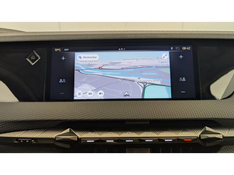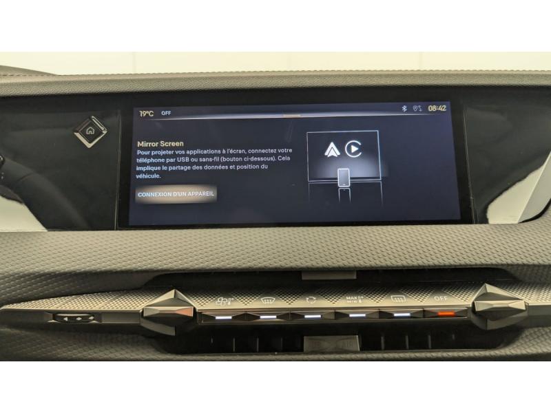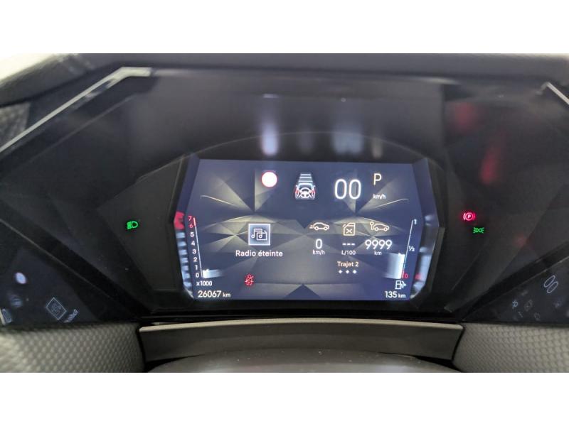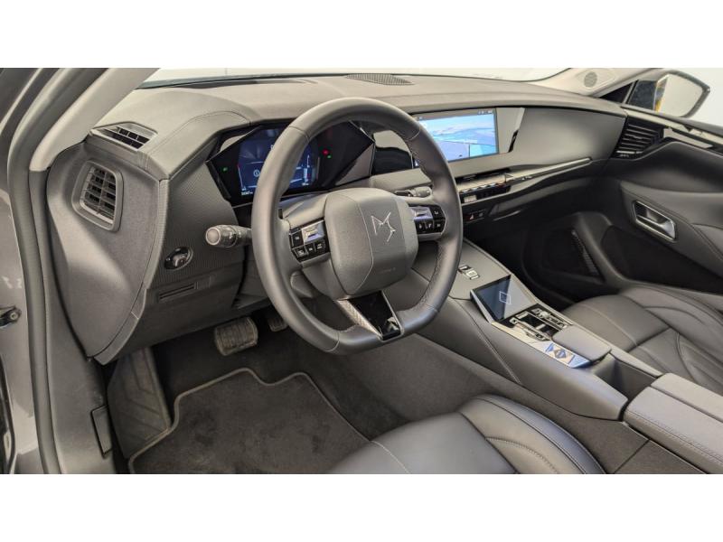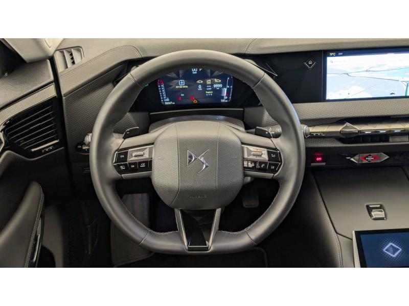 ABS avec répartiteur électronique de freinage (REF) et Aide au Freinage d'Urgence (AFU) + Aide au démarrage en penteAccès et démarrage mains libres ProximityAccoudoir central ARAide au stationnement AV et AR et Caméra de reculAirbags frontaux (passager déconnectable), latéraux AV, rideaux aux places AV/AR et central entre les places AVAllumage automatique des feuxAntenne "aileron de requin"Avertisseur de risque de collisionBanquette AR 2/3 - 1/3 avec 3 appuie-têteClimatisation automatique bi-zoneCombiné numérique 7"Commutation automatique des feuxCondamnation automatique des portes et du coffre en roulantConsole centrale avec rangement ferméContrôle dynamique de stabilité (ESP) avec antipatinage des roues (ASR) + Contrôle de stabilité de l'attelageDétection de sous-gonflageDS Drive Assist et Pack Détection Trafic AR : Surveillance d'angles morts longue distance Alerte de Trafic ARDS e-toggle (Sélecteur de vitesses)DS EXTENDED HEAD UP DISPLAY Affichage tete haute étenduDS IRIS SYSTEMDS MATRIX LED VISIONEclairage d'ambiance à LEDEclairage de boîte à gants, d'accoudoir central AV et de coffre à LEDEclairage de cave à pieds à LEDEcran tactile capacitif 10" HDEssuie-vitre AV à déclenchement et cadencement automatiques + Buses de lavageFeux AR Full LED effet 3D avec traitement écaillesFixations ISOFIX à la place passager AV et aux places latérales ARFrein de stationnement électrique automatiqueFreinage d'urgence automatique piloté par caméra et radarIntérieur Cuir grainé Noir Basalte et Toile DS : Ciel de pavillon clair Décors de panneaux de porte Chrome guilloché Volant en cuir fleur Mistral Console centrale en Toile DS Mistral Planche de bord en toile DS Noir Basalte façon écaille Panneaux de portes Jantes alliage 19" SEVILLAKit de dépannage provisoire de pneumatiquesLève-vitres AV/AR électriques, séquentiels et antipincementLunette AR chauffanteMirror Screen sans fil via Wifi Compatible Apple CarPlay et Android AutoPack Sièges mécaniques avec réglages lombaires conducteur et passagerPalettes au volantPare-brise teinté acoustiquePare-soleil avec miroirs de courtoisie occultables éclairés à LEDRégulateur/Limiteur de vitesseRétroviseur intérieur électrochrome sans cadreRétroviseurs extérieurs électriques, dégivrants, rabattables électriquement Avec éclairage d'accueilRadio numérique terrestre (DAB) Inclut le BluetoothReconnaissance des panneaux de vitesse et préconisationSOSVitres AR et lunette AR surteintéesVolant réglable en hauteur et profondeur