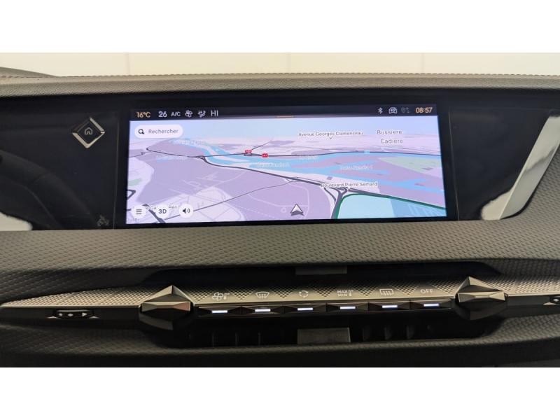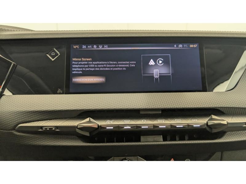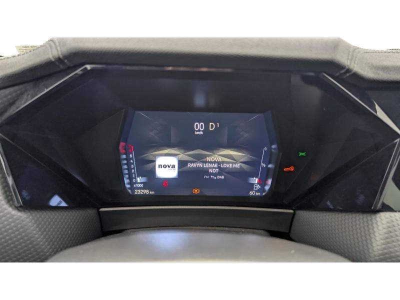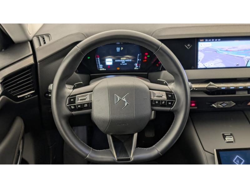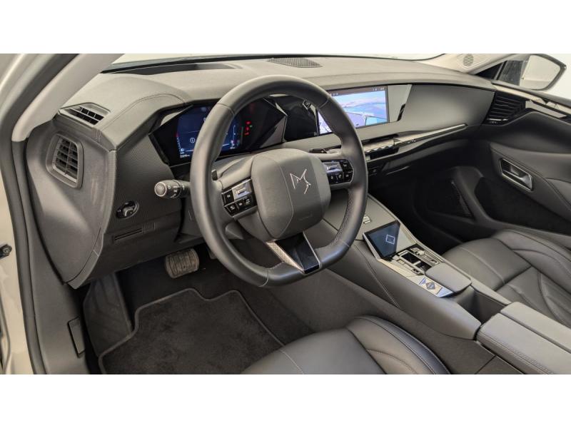 ABS avec répartiteur électronique de freinage (REF) et Aide au Freinage d'Urgence (AFU) + Aide au démarrage en penteAccès et démarrage mains libres ProximityAccoudoir central ARAide au stationnement AV et AR et Caméra de reculAirbags frontaux (passager déconnectable), latéraux AV, rideaux aux places AV/AR et central entre les places AVAllumage automatique des feuxAntenne "aileron de requin"Avertisseur de risque de collisionBanquette AR 2/3 - 1/3 avec 3 appuie-têteClimatisation automatique bi-zoneCombiné numérique 7"Commutation automatique des feuxCondamnation automatique des portes et du coffre en roulantConsole centrale avec rangement ferméContrôle dynamique de stabilité (ESP) avec antipatinage des roues (ASR) + Contrôle de stabilité de l'attelageDétection de sous-gonflageDS Drive Assist et Pack Détection Trafic AR : Surveillance d'angles morts longue distance Alerte de Trafic ARDS e-toggle (Sélecteur de vitesses)DS EXTENDED HEAD UP DISPLAY Affichage tete haute étenduDS IRIS SYSTEMDS MATRIX LED VISIONEclairage d'ambiance à LEDEclairage de boîte à gants, d'accoudoir central AV et de coffre à LEDEclairage de cave à pieds à LEDEcran tactile capacitif 10" HDEssuie-vitre AV à déclenchement et cadencement automatiques + Buses de lavageFeux AR Full LED effet 3D avec traitement écaillesFixations ISOFIX à la place passager AV et aux places latérales ARFrein de stationnement électrique automatiqueFreinage d'urgence automatique piloté par caméra et radarIntérieur Cuir grainé Noir Basalte et Toile DS : Ciel de pavillon clair Décors de panneaux de porte Chrome guilloché Volant en cuir fleur Mistral Console centrale en Toile DS Mistral Planche de bord en toile DS Noir Basalte façon écaille Panneaux de portes Jantes alliage 19" SEVILLAKit de dépannage provisoire de pneumatiquesLève-vitres AV/AR électriques, séquentiels et antipincementLunette AR chauffanteMirror Screen sans fil via Wifi Compatible Apple CarPlay et Android AutoPack Sièges mécaniques avec réglages lombaires conducteur et passagerPalettes au volantPare-brise teinté acoustiquePare-soleil avec miroirs de courtoisie occultables éclairés à LEDRégulateur/Limiteur de vitesseRétroviseur intérieur électrochrome sans cadreRétroviseurs extérieurs électriques, dégivrants, rabattables électriquement Avec éclairage d'accueilRadio numérique terrestre (DAB) Inclut le BluetoothReconnaissance des panneaux de vitesse et préconisationSOSVitres AR et lunette AR surteintéesVolant réglable en hauteur et profondeur