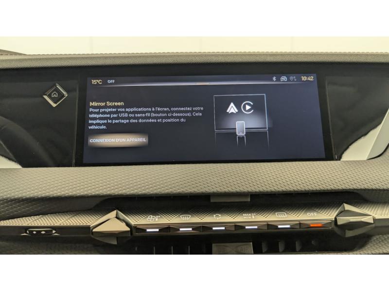 ABS avec répartiteur électronique de freinage (REF) et Aide au Freinage d'Urgence (AFU) + Aide au démarrage en penteAccès et démarrage mains libres ProximityAccoudoir central AR avec 2 porte-gobeletsAide au stationnement AV et AR et Caméra de reculAirbags frontaux (passager déconnectable), latéraux AV, rideaux aux places AV/AR et central entre les places AVAlerte Attention ConducteurAlerte de franchissement involontaire de ligneAllumage automatique des feuxAvertisseur de risque de collisionBanquette AR 2/3 - 1/3 avec 3 appuie-têteClimatisation automatique bi-zoneCombiné numérique 7"Commutation automatique des feuxCondamnation automatique des portes et du coffre en roulantConsole centrale avec rangement ferméContrôle dynamique de stabilité (ESP) avec antipatinage des roues (ASR) + Contrôle de stabilité de l'attelageDétection de sous-gonflageDS Drive Assist et Pack Détection Trafic AR : Adaptive Cruise Control Stop & Go Surveillance d'angles morts longue distance Alerte de Trafic AR Lane Positioning Assist afin de gérer la conduite de manière semi-autonomeDS EXTENDED HEAD UP DISPLAY Affichage tete haute étenduDS IRIS SYSTEMDS MATRIX LED VISIONEclairage d'ambiance à LEDEclairage de boîte à gants, d'accoudoir central AV et de coffre à LEDEclairage de cave à pieds à LEDEcran tactile capacitif 10" HDEnjoliveurs supérieurs des vitres latérales chromésEssuie-vitre AV à déclenchement et cadencement automatiques + Buses de lavageFeux AR Full LED effet 3D avec traitement écaillesFixations ISOFIX à la place passager AV et aux places latérales ARFrein de stationnement électrique automatiqueFreinage d'urgence automatique piloté par caméra et radarFreinage multi-collisionIntérieur Cuir grainé Noir Basalte et Toile DS : Ciel de pavillon clair Décors de panneaux de porte Chrome guilloché Volant en cuir fleur Mistral Console centrale en Toile DS Mistral Planche de bord en toile DS Noir Basalte façon écaille Panneaux de portes Jantes alliage 19" SEVILLAKit de dépannage provisoire de pneumatiquesLève-vitres AV/AR électriques, séquentiels et antipincementLunette AR chauffanteMirror Screen sans fil via Wifi Compatible Apple CarPlay et Android AutoPack Sièges mécaniques avec réglages lombaires conducteur et passagerPalettes au volantPare-brise teinté acoustiquePare-soleil avec miroirs de courtoisie occultables éclairés à LEDRétroviseur intérieur électrochrome sans cadreRétroviseurs extérieurs électriques, dégivrants, rabattables électriquement Avec éclairage d'accueilRadio numérique terrestre (DAB) Inclut le BluetoothReconnaissance étendue des panneaux de circulationReconnaissance des panneaux de vitesse et préconisationVitres AR et lunette AR surteintéesVolant réglable en hauteur et profondeur