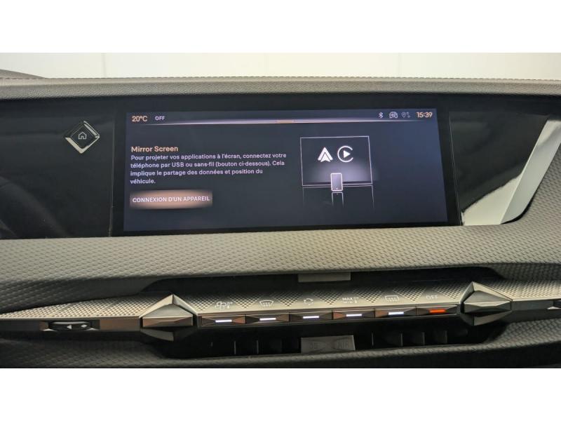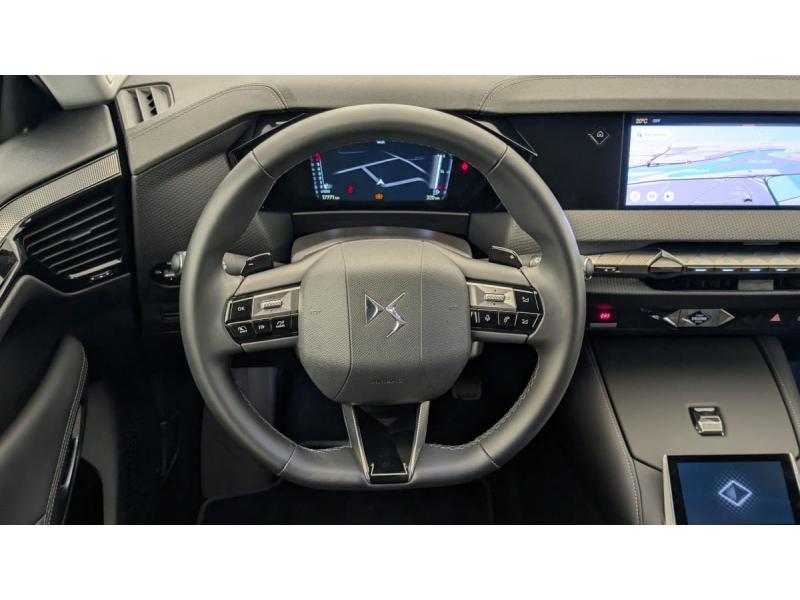 ABS avec répartiteur électronique de freinage (REF) et Aide au Freinage d'Urgence (AFU) + Aide au démarrage en penteAccès et démarrage mains libres ProximityAccoudoir central AR avec trappe à ski et 2 porte-gobeletsAide au stationnement AV et AR et Caméra de reculAirbags frontaux (passager déconnectable), latéraux AV, rideaux aux places AV/AR et central entre les places AVAlerte Attention ConducteurAlerte de franchissement involontaire de ligneAllumage automatique des feuxAvertisseur de risque de collisionBanquette AR 2/3 - 1/3 avec 3 appuie-têteClimatisation automatique bi-zoneCombiné numérique 7"Commutation automatique des feuxCondamnation automatique des portes et du coffre en roulantDétection de sous-gonflageDS Drive Assist et Pack Détection Trafic AR : Surveillance d'angles morts longue distance Alerte de Trafic ARDS e-toggle (Sélecteur de vitesses)DS EXTENDED HEAD UP DISPLAY Affichage tete haute étenduDS IRIS SYSTEMDS MATRIX LED VISIONEclairage d'ambiance à LEDEclairage de boîte à gants, d'accoudoir central AV et de coffre à LEDEclairage de cave à pieds à LEDEcran tactile capacitif 10" HDEssuie-vitre AV à déclenchement et cadencement automatiques + Buses de lavageFeux AR Full LED effet 3D avec traitement écaillesFixations ISOFIX à la place passager AV et aux places latérales ARFrein de stationnement électrique automatiqueFreinage d'urgence automatique piloté par caméra et radarIntérieur Cuir grainé Noir Basalte et Toile DS : Ciel de pavillon clair Décors de panneaux de porte Chrome guilloché Volant en cuir fleur Mistral Console centrale en Toile DS Mistral Planche de bord en toile DS Noir Basalte façon écaille Panneaux de portes Jantes alliage 19" SEVILLAKit de dépannage provisoire de pneumatiquesLève-vitres AV/AR électriques, séquentiels et antipincementMirror Screen sans fil via Wifi Compatible Apple CarPlay et Android AutoPack Sièges mécaniques avec réglages lombaires conducteur et passagerPalettes au volantPare-brise teinté acoustiqueRégulateur/Limiteur de vitesse adaptatifRétroviseur intérieur électrochrome sans cadreRétroviseurs extérieurs électriques, dégivrants, rabattables électriquement Avec éclairage d'accueilRadio numérique terrestre (DAB) Inclut le BluetoothReconnaissance étendue des panneaux de circulationReconnaissance des panneaux de vitesse et préconisationVitres AR et lunette AR surteintéesVolant réglable en hauteur et profondeur