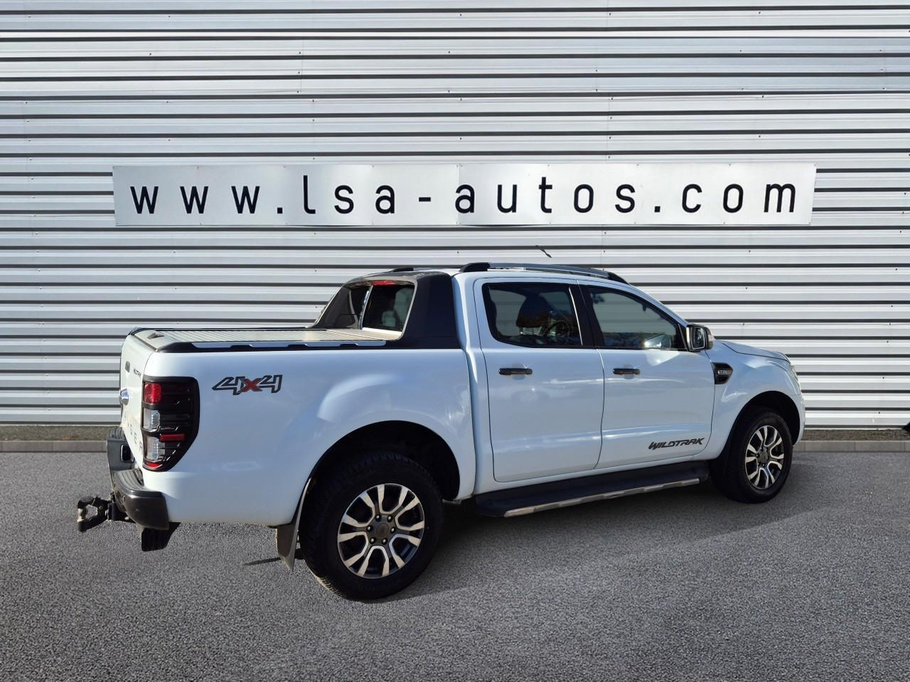 3ème feu stop arrièreABS électroniqueAide au stationnement arrièreAirbag genoux conducteurAirbags - Conducteur et passager avantAirbags latéraux à l'arrièreAirbags latéraux, conducteur et passager avantAirbags thorax, conducteur et passager avantAlarme volumétriqueAllumage automatique des projecteursAnti-démarrage électronique (PATS)Antipatinage déconnectableArceau sport aérodynamique compositeAssistance au démarrage en côte (HSA)Assistance au freinage d'urgenceBac de protection renforcé avec prise accessoire 12VBadge Wildtrak sur la ridelle arrière et les côtésBanquette arrière trois places avec appuie-tête aux places extérieurs et dossier de la place du milieu abaissable pour faire office d'accoudoirBarres de renfort de portes et cellule de survieBarres de toit aspect aluminiumBavettes ARBavettes AVBoîte à gants éclairéeCalandre TitaneCaméra de reculCeinture de sécurité avant à enrouleurCeintures de sécurité arrière 3 points avec bloqueurCeintures de sécurité avant réglables en hauteurCeintures de sécurité avant trois points avec pré-tensionneurClimatisation automatique bi-zoneCloisonnement de l'espace plateauColonne de direction rétractable en cas de choc frontalCommande au volant des phares,des clignotants et des essuie-glacesConsole centrale avec espace réfrigéréeConsole centrale longue en vinyle premium avec 2 porte-gobeletsConsole de pavillon longue avec plafonnier, lecteurs de carte et range-lunetteContrôle adaptatif de la charge (LAC)Contrôle de la pression des pneumatiquesContrôle du roulis de la remorque (TSC)Contrôle dynamique de la trajectoire (ESP)Crochets d'arrimage intérieur à la norme DINDéclenchement et clignotement automatique des feux stop en cas de freinage d'urgenceDégivrage de la vitre arrièreDésactivation de l'airbag du passager avantDeux Prise 12 V au tableau de bordDirection assistéeDouble verrouillage centralisé à commande à distanceEclairage d'ambiance à LED personnalisableEclairage de courtoisie aux places avant avec fonction d'extinction différé actif lors du déverrouillage des portesEclairage plafonnier arrièreEspace de rangement entre les sièges formant accoudoirEssuie-glace à déclenchement automatiqueFeu arrière antibrouillardFeux de freinage d'urgence - EBLFeux de jourFixation ISOFIX pour siège enfantFreins à disques ventilés à l'avantFreins à tambours à l'arrièreGarnissage moquette du plancherIndicateurs de vitesse, de niveau de carburant, de température d'eau, compte-tours et compteur kilométrique digitalJantes alliage 18"x 8 et pneumatique 265/60R18 tout-terrainLève-vitres arrière électriquesLève-vitres avant électriques avec ouverture à impulsion côté conducteurMarchepieds plastique avec inserts brossésMy KeyNuméro de série du véhicule visible de l'extérieurOrdinateur de bordOuïes latérales avec logoPanneaux de portes avec accoudoir, vide-poches et haut-parleurPanneaux de portes avec commande de lève-vitres et poignées chroméesPanneaux de portes avec insert façon cuir et surpiquage orangePare-brise chauffant avec lave-glace chaufféPare-chocs arrière peint avec marchepiedPare-chocs avant avec inserts mousse pour protection piétonPare-chocs avant couleur carrosserie avec inserts peintsPare-chocs avant profiléPare-chocs avant WildtrakPare-soleil avec porte-ticket coté conducteurPare-soleil passager avec miroir de courtoisiePhares halogènes avec entourage noirPhares halogènes, répétiteurs de clignotants, feux de reculPlaques de pas de porte chromées éclairées avec logo WildtrakPlateau en acier double peau avec ridelle arrière rabattable 2 positionsPoches de rangement au dos des sièges avantPoignée de maintien arrièrePoignées de maintien avantPoignées de portes et de ridelles arrières noiresPorte-gobelets double à l'arrièrePrise 12V aux places arrièreProjecteurs antibrouillardProtection de plateauRail d'arrimage dan le platau type "C-Channel"Rangement dans les portes avantRéglage des phares en hauteurRégulateur de vitesseRétroviseur intérieur électrochromeRétroviseurs extérieurs couleur carrosserieRétroviseurs extérieurs réglables et rabattables électriquement, chauffants avec éclairage du sol et répétiteurs de clignotantsRoue de secours alliage avec cricSécurité enfants aux portes arrièreSellerie tissu avec inserts cuir WildtrakSerrures haute sécuritéSiège conducteur à réglages électriques (AV/AR, inclinaison du dossier, de l'assise et de la hauteur) et réglage lombaireSiège passager réglable avant/arrière et à dossier inclinableSièges conducteur et passager chauffantsSurélévations de ridelles et barres longitunales en aluminium brosséSystème audio GPS Sync 3, écran couleur 8" tactile,AppLink, Apple CarPlay, Android Auto,système de navigation SD Europe,commandes au volant, commandes vocales avancées, 6 HP,2 prises USBSystème de contrôle de la descente (HDC)Système de protection anti-retournement (ROM)Tapis premiumTémoin de ceinture de sécuritéTémoins de pression d'huile, de direction, d'eau dans le gazole, de feux de route, de charge batterie, de circuit de freinage, d'airbags, de débrayage des moyeux, de feu antibrouillard arrière -indicateur sonore de feux allumésTrappes à carburant sans bouchon Ford Easy FuelVerrouillage de la ridelle arrièreVerrouillage des portes en roulantVitres arrières surteintéesVitres teintéesVolant gainé cuir avec surpiquage orange ,inserts graphite et commandes du système audio et du régulateur de vitesse,réglage en hauteurVolant réglable en hauteur et en profondeur
