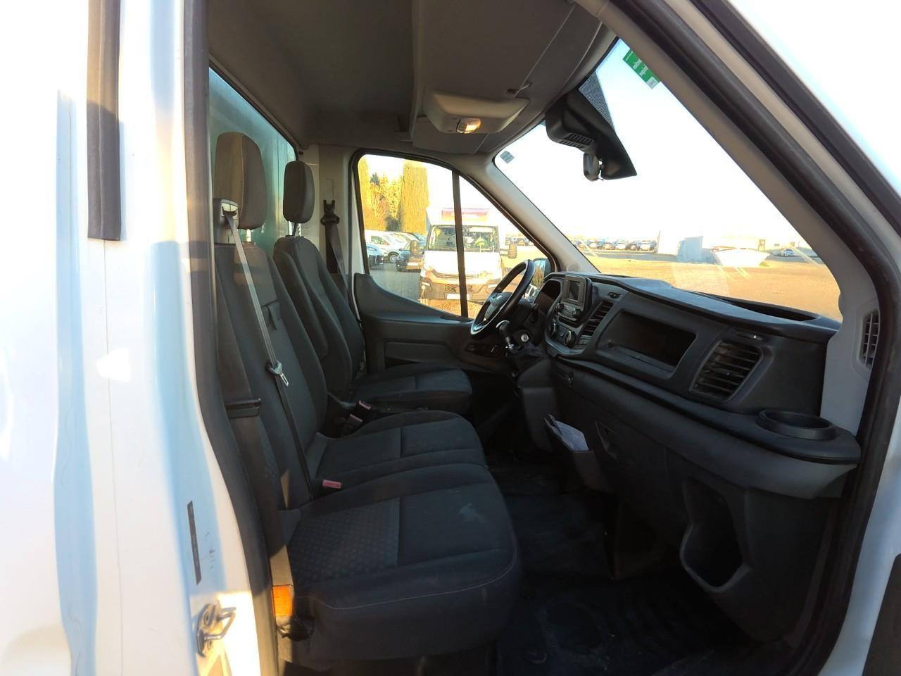 2 Clés à télécommandeAide au démarrage en côte (HSA)Airbag conducteurAnti-démarrage électronique (PATS)AntipatinageAssistance au freinage d'urgenceBac de rangement sous la banquette passager doubleBanquette passager avant deux places à assise relevable pour accès espace de rangement et tablette rabattable intégrée au dossierBenne galvanisée 3,20 m pour aménagement benne + Coffre H1300Boîte à gants avec couvercle verrouillable pour documents A4Calandre noire avec jonc chroméCapteur d'eau dans le filtre à carburantCeintures de sécurité 3 points à enrouleur sur tous les siègesChauffage à recirculationClimatisation manuelleContrôle adaptatif de la charge (LAC)Contrôle de stabilité anti-retournement - RSCContrôle dynamique de trajectoire (ESP) avec ABSDirection assistée électriqueDouble capacité pour bouteille 2 litres, monté sur la planche de bordEssuie-glace à intermittence variableFeux d'angle fixesFeux de gabarit sur le toitFeux de jourFiltre à particulesGarnissage de pavillon de la cabine mouléeLève-vitres avant électriques avec ouverture à impulsion en descente côté conducteurMode de conduite personnalisableModem embarqué FordPass ConnectMy KeyNuméro de série visible de l'extérieurOrdinateur de bord (autonomie, consommation moyenne et instantanée, vitesse moyenne, température extérieure)Ouverture du capot à cléPack forte puissance électriquePare-chocs avant couleur carrosseriePeinture non métalliséePhares halogènesPlafonnier avant, avec atténuation automatique progressive et liseuses de cartePoignées de portes noiresPorte-échellePorte-cartes de portière avantPrise de courant – 2 x 12 V (situées sur la planche de bord et dans le bac de rangementProjecteurs antibrouillardProtection des feux arrièresProtections latérales non peintesRéglage manuel du site des pharesRégulateur et limiteur de vitesseRépétiteurs de clignotant intégré aux rétroviseursRéservoir AdBlue 24LRéservoir de 70 litresRétroviseurs extérieurs bras courtsRétroviseurs extérieurs réglables électriquement et dégivrantsRangement planche de bord côté conducteurRe-verrouillage automatique des ouvrants après 45 secondes (si aucun n'est ouvert)Revêtement de sol en caoutchoucRoue de secoursRoues acier 16"x6" jumelées avec pneumatiques 195/75 R16CRoues jumeléesSiège conducteur à dossier inclinable et appuie-tête réglable, réglable avant/arrière et en hauteur, à assise réglable et accoudoir coté droitSiège conducteur à réglage lombaireSignal sonore de non fermeture des portes lors du verrouillageSystème audio 13 : Radio DIN AM/FM unique avec DAB,MyFord Dock, 4 HP avant, commandes audio à distance, Bluetooth et port de connexion USB avec prise iPodSystème audio bluetoothSystème d'alerte de changement de voieSystème Stop & StartTémoin de passage des vitessesTrappe à carburant Ford Easy-FuelVerrouillage électrique centraliséVerrouillage automatique des portes en roulant au delà de 8 km/hVerrouillage centralisé à commande à distanceVitres teintéesVolant 4 branches gainé de cuirVolant réglable en hauteur et en profondeur