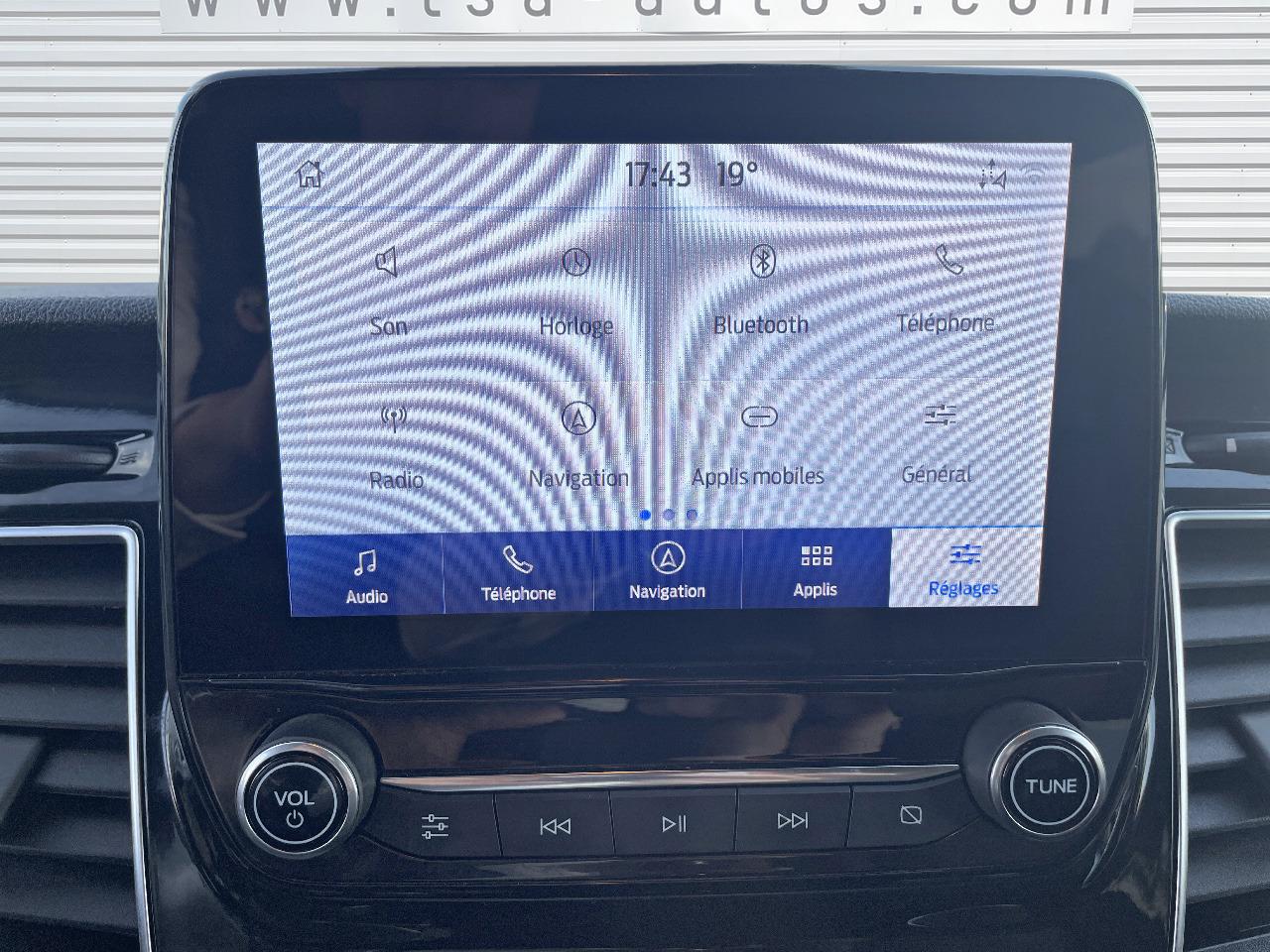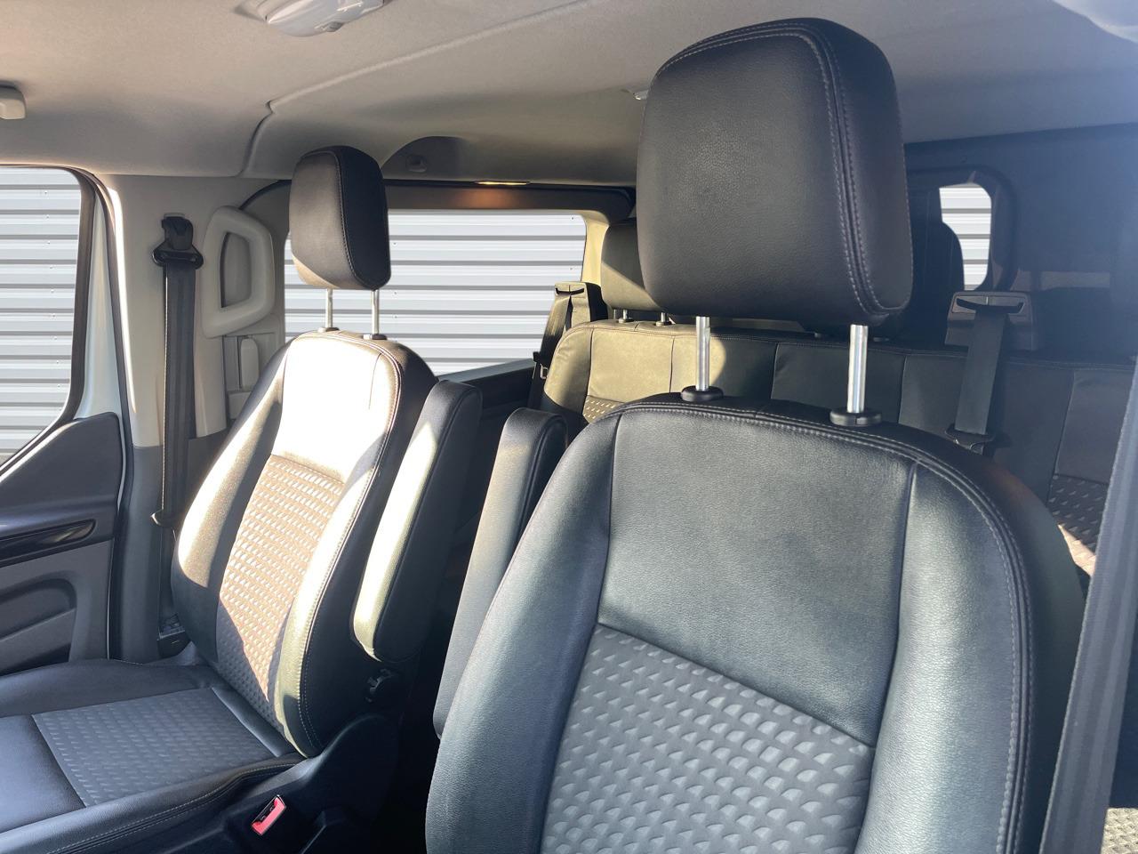 ABS : Système de freinage avec antiblocage des rouesAide au démarrage en côteAir conditionné manuel avantAirbag passagersAirbags conducteurAlternateur renforcéBanquette arrière trois places avec appuie-tête aux places extérieures, fixation Isofix et rangement sous banquetteBanquette passagers avec tablette rabattableBoîte à gants éclairée et verrouillableConsole de pavillonContrôle de la pression des pneumatiquesCrochets d'arrimage de chargeEclairage de courtoisie aux places avant et arrière avec fonction d'extinction différéeEclairage renforcé à LED du compartiment de chargementEcrous antivolEPAS - Direction assistée électroniqueESP et antipatinageEtui à lunettes côté conducteurFeux d'angle fixesFeux de jour à LEDFord EcoModeFordPass Connect et Modem embarquéGarnissage partiel des sièges en cuirGrille de calandre avec insert Nickel satinIndicateur de maintenanceJantes alliage 17", pneumatiques 215/60 R17Kit carrosserie SportLève-vitres avant électriquesMiroirs de courtoisie éclairés conducteur et passagerOrdinateur de bordPack Vision PlusPare-chocs avant et arrière bi-ton gris/ teinte carrosseriePeinture non métalliséePoignée de hayon couleur carrosseriePoignée de maintien passagerPoignées de portes couleur carrosseriePorte latérale coulissante droite de chargementPorte latérale coulissante gauche vitréeProjecteurs antibrouillardProtection des parois latérales du compartiment arrière à mi-hauteurProtections latérales peints ton carrosserieRéglage des phares en hauteurRégulateur et limiteur de vitesseRétroviseurs extérieurs électriques et dégivrantsRétroviseurs extérieurs bi-tonRoue de secours 17"Séparation complète polyester avec vitreSiège conducteur à réglage lombaireSiège conducteur cuir sensico /tissu chauffant avec accoudoir et soutien lombaire. réglages inclinaison, av/arr, inclinaison/hauteur d'assise siège passager simple cuirsensico /tissu avec accoudoir et soutien lombaire, réglages inclinaison, av/ar et inclinaison dSiège conducteur réglable en hauteurSièges conducteur et passager chauffantsStation d'accueil MyFordSystème audio SYNC 2.5 - écran tactile 8”, 4 HP avant - radio numérique DAB - commandes au volant + commandes vocales et lecture des SMS - Bluetooth + 2 prises USB - compatibilité Apple CarPlay et Android Auto, AppLink - assistance appel d'urgenceSystème Stop & StartVerrouillage central à commande à distanceVitres arrière surteintéesVolant quatre branches aluminium gainé en cuir