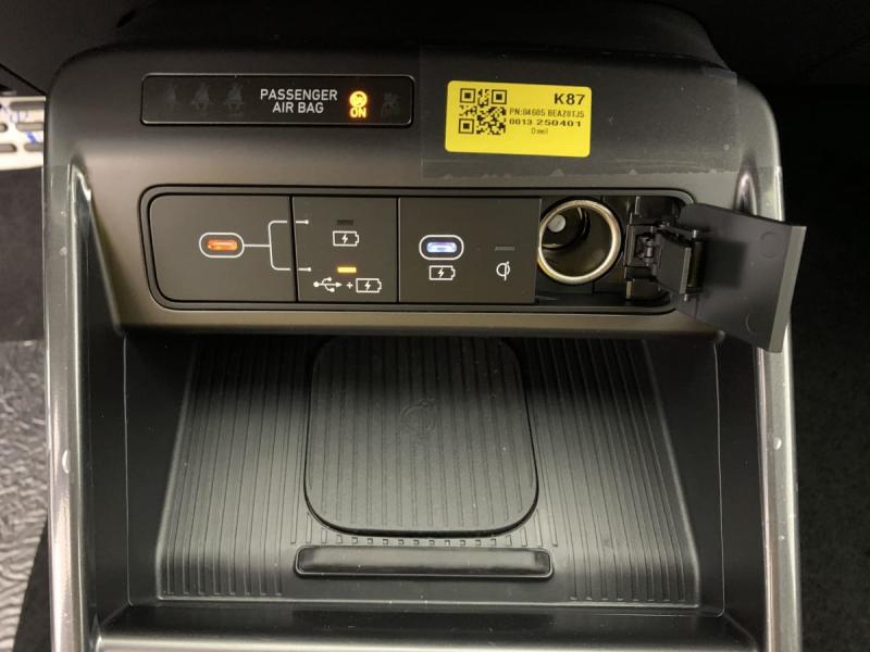 7 Airbags: frontaux conducteur et passager, latéraux AV, rideaux AV/AR, central AVAccoudoir AR avec porte-gobelets intégréAccoudoir AVAide au stationnement AV et ARAlerte de circulation transversale à l'AR avec fonction freinageAlerte de présence de passager ARAllumage automatique des feuxAssistance à la sortie du véhicule pour passagers ARAssistance active à la conduite sur autorouteAssistance active au maintien et au suivi de voieCaméra de recul avec lignes de guidage dynamiquesCapteur de pluieChargeur sans fil pour téléphone compatibleClimatisation automatique bi-zone avec fonction Driver Only et capteur de désembuage automatique du pare-briseCommandes audio au volantCompatibilité Apple CarPlay et Android AutoCompteurs numériques 12.3"Connexion BluetoothConsole de rangement sous accoudoir AVDétection de fatigue du conducteurDossier AR rabattable 40/20/40Drive Mode (Eco, Sport, Snow)eCall : appel d'urgence automatique aux services de secours avec géolocalisation du véhiculeFeux AR à LEDFeux AV bi-LEDFeux de jour et feux de position à LEDFrein de parking électrique avec fonction auto-holdFreinage anti multi-collisionsFreinage d'urgence autonome avec reconnaissance véhicule, piéton, cycliste et fonction intersectionFreinage régénératif modulable via palettes au volantGarantie constructeur 5 ans ramenée à 3 ansMiroirs de courtoisie éclairés conducteur et passager AVPlancher de coffre modulablePoches aumonières au dos des sièges AVPoignées de portes intérieures grain métalPrise 12V à l'AVProtections d'ailes gris anthraciteRéception radio numérique terrestre (DAB)Régulateur de vitesse adaptatif intelligentRétroviseur intérieur jour/nuit automatiqueRétroviseurs électriques et dégivrantsRétroviseurs rabattables électriquementRails de toitReconnaissance des panneaux de limitation de vitesse avec limiteur de vitesse intelligentSellerie tissu N LineSiège conducteur avec support lombaireSièges AV réglables en hauteurSurveillance active des angles mortsSystème audio RDS, compatible MP3, 4HP et 2 tweetersSystème d'accès mains-libres et démarrage sans cléSystème de navigation Europe avec programme de mise à jour à distance et services Hyundai LiveSystème ISOFIX pour siège enfant aux places latérales ARSystème multimédia avec écran couleur tactile 12,3"Transmission à commande électriqueVerrouillage automatique des portes en roulantVerrouillage centralisé à distanceVitres électriques AV/AR et séquentielle à l'AVVitres AR surteintéesVolant gainé cuir
