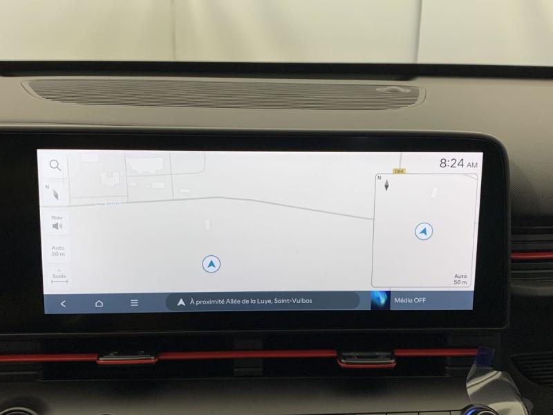 7 Airbags: frontaux conducteur et passager, latéraux AV, rideaux AV/AR, central AVAccoudoir AR avec porte-gobelets intégréAccoudoir AVAide au stationnement AV et ARAlerte de circulation transversale à l'AR avec fonction freinageAlerte de présence de passager ARAllumage automatique des feuxAssistance à la sortie du véhicule pour passagers ARAssistance active à la conduite sur autorouteAssistance active au maintien et au suivi de voieCaméra de recul avec lignes de guidage dynamiquesCapteur de pluieChargeur sans fil pour téléphone compatibleClimatisation automatique bi-zone avec fonction Driver Only et capteur de désembuage automatique du pare-briseCommandes audio au volantCompatibilité Apple CarPlay et Android AutoCompteurs numériques 12.3"Connexion BluetoothConsole de rangement sous accoudoir AVDétection de fatigue du conducteurDossier AR rabattable 40/20/40Drive Mode (Eco, Sport, Snow)eCall : appel d'urgence automatique aux services de secours avec géolocalisation du véhiculeFeux AR à LEDFeux AV bi-LEDFeux de jour et feux de position à LEDFrein de parking électrique avec fonction auto-holdFreinage anti multi-collisionsFreinage d'urgence autonome avec reconnaissance véhicule, piéton, cycliste et fonction intersectionFreinage régénératif modulable via palettes au volantGarantie constructeur 5 ans ramenée à 3 ansMiroirs de courtoisie éclairés conducteur et passager AVPlancher de coffre modulablePoches aumonières au dos des sièges AVPoignées de portes intérieures grain métalPrise 12V à l'AVProtections d'ailes gris anthraciteRéception radio numérique terrestre (DAB)Régulateur de vitesse adaptatif intelligentRétroviseur intérieur jour/nuit automatiqueRétroviseurs électriques et dégivrantsRétroviseurs rabattables électriquementRails de toitReconnaissance des panneaux de limitation de vitesse avec limiteur de vitesse intelligentSellerie tissu N LineSiège conducteur avec support lombaireSièges AV réglables en hauteurSurveillance active des angles mortsSystème audio RDS, compatible MP3, 4HP et 2 tweetersSystème d'accès mains-libres et démarrage sans cléSystème de navigation Europe avec programme de mise à jour à distance et services Hyundai LiveSystème ISOFIX pour siège enfant aux places latérales ARSystème multimédia avec écran couleur tactile 12,3"Transmission à commande électriqueVerrouillage automatique des portes en roulantVerrouillage centralisé à distanceVitres électriques AV/AR et séquentielle à l'AVVitres AR surteintéesVolant gainé cuir