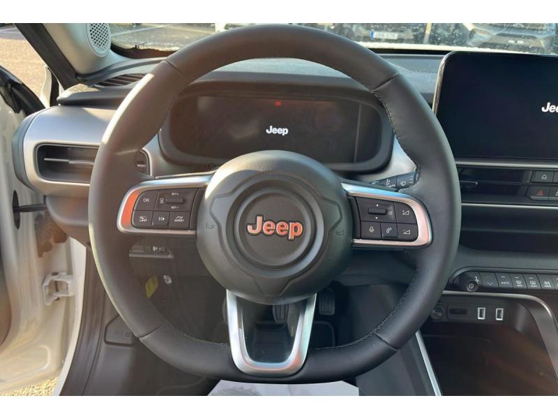 ABS - Système antiblocage des rouesAccoudoir central AVAide à la descente (Hill Descent Control)Airbags frontaux et latéraux conducteur et passager, airbags rideaux AV/ARAlerte de franchissement de ligne avec correctionBanquette AR rabattable 60/40Boîte de vitesses manuelle 6 rapportsCalandre Gloss BlackCaméra de recul 180°Capteur de luminosité (allumage automatique des feux)Capteur de pluie (essuie-glaces automatiques)Chargeur sans fil pour smartphoneClimatisation automatiqueCombiné d'instrumentation numérique 10,25''Commutation automatique feux de route/feux de croisementContrôle de la pression des pneusContrôle de la traction (TCS)Démarrage sans cléDétecteur de somnolenceDirection assistéeEclairage d'ambiance multicolore à LEDEclairage extérieur d'accueil et d'accompagnementESP - Système de régulation de comportement dynamiqueFeux AR à LEDFixation Isofix sur le siège passager AVFrein de stationnement électriqueFreinage autonome d'urgence avec détection piétons et cyclistesInsert de planche de bord peint Gris SilverJantes alliage 18"Plancher de coffre modulable et réversiblePoches aumônières au dos des sièges AVPoignées de porte couleur carrosseriePommeau de levier de vitesses en TEPProjecteurs antibrouillard à LED avec fonction corneringProjecteurs Jeep Performance LEDRégulateur de vitesse adaptatifRétroviseur intérieur électrochrome sans contourRétroviseurs extérieurs électriques, dégivrantsRétroviseurs extérieurs Gloss BlackRétroviseurs extérieurs rabattables électriquementRadars de stationnement 360°Reconnaissance des panneaux de signalisationSelec-Terrain : 6 modes de conduite Eco, Normal, Sport, Sable, Bouge, NeigeSellerie mixte tissu / TEPServices connectés Uconnect ServicesSiège conducteur à réglages manuels 6 voiesSiège passager à réglages manuels 4 voiesSpots de lecture AV et AR à LEDSurveillance des angles mortsSystème audio 6 HP 100 WSystème multimédia à écran tactile Uconnect 10,25'' avec Apple Carplay, Android Auto sans filsVitres AV et AR électriques et séquentiellesVitres et lunette AR surteintéesVolant en TEP