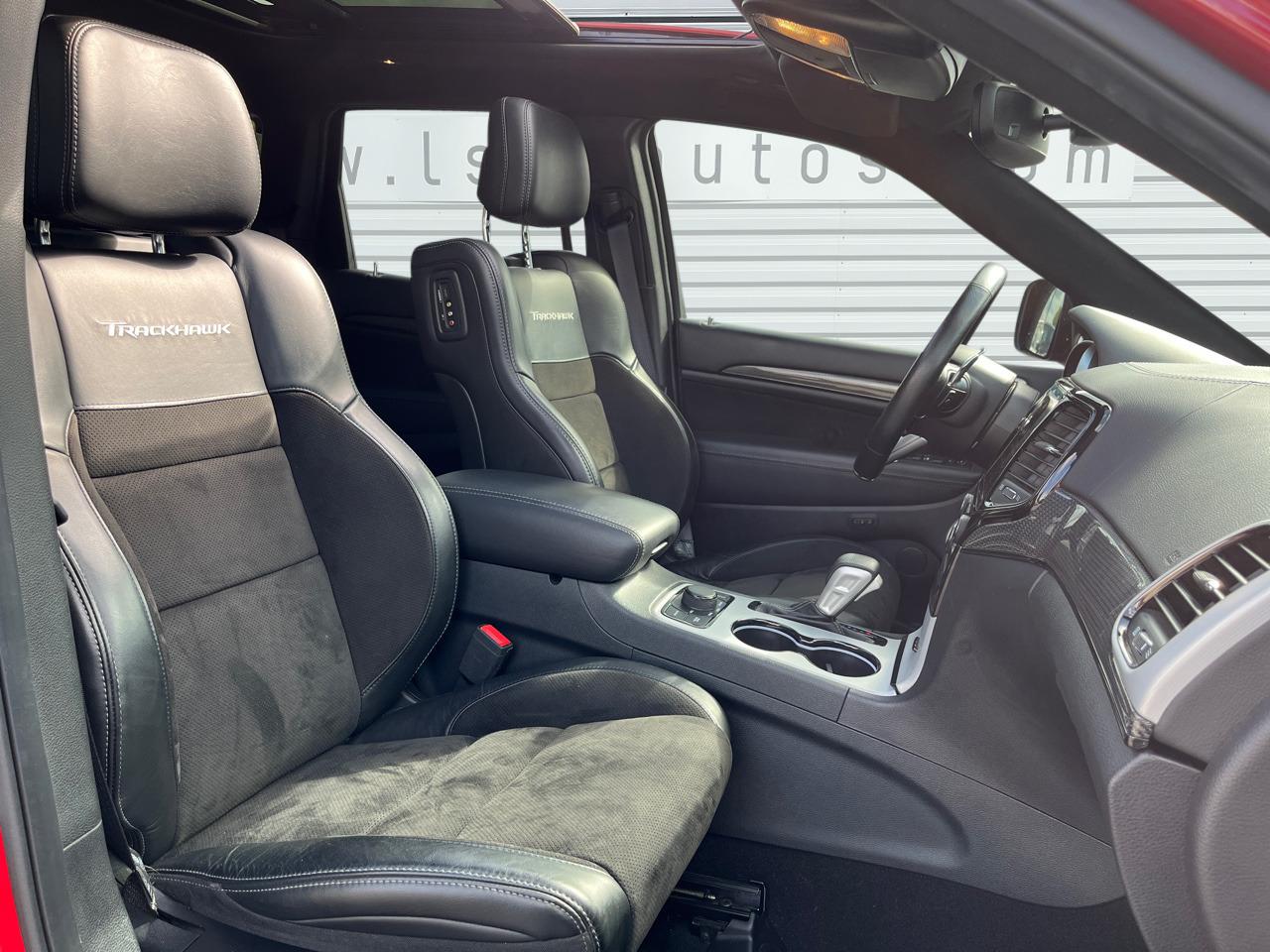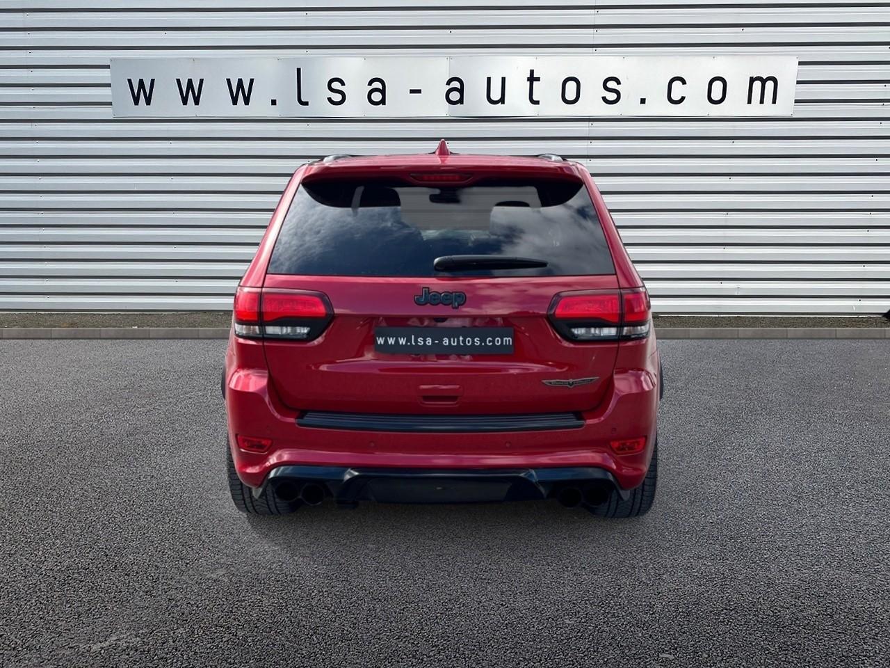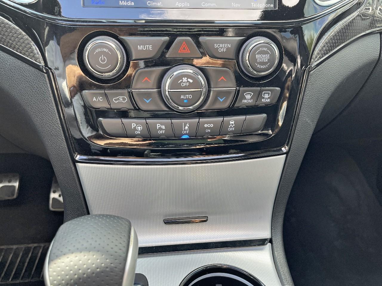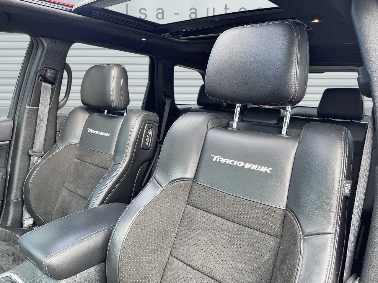 ABS - Système antiblocage des roues avec gestion différenciée en fonction de la nature du solAccoudoir central avant avec compartiment de rangementAffichage de la pression des pneusAide aux secouristes - Coupure de l'arrivée de carburant ; déverrouillage automatique des portes pour faciliter l'accès des secouristes ; éclairage de l'habitacle pour voir les occupants de l'extérieurAirbag de genoux (conducteur)Airbags frontaux (conducteur et passager) à déploiement variableAirbags latéraux additionnels (dans les sièges conducteur et passager)Airbags latéraux de type rideau avant et arrièreAlarme périmétrique de contrôle des ouverturesAlarme volumétriqueAntenne de toit « aileron de requin »Antibrouillard arrièreAppuie-tête avant actifs (système de protection contre le coup du lapin)Badges Trackhawk et SuperchargedBanquette arrière fractionnée 60/40 rabattable à plat et inclinable à 12°Boîte de vitesse automatique à 8 rapports et levier de vitesse "E-Shift "Cache-bagages à enrouleur et amovible dans le coffreCalandre noireCapteur de luminositéCapteurs de pluieClimatisation automatique bizoneColoris pastel (Bright White)Commandes audio au volantConnexions Apple CarPlay et Android AutoConsole centrale en finition métalliséeDiffuseur arrière sportEclairage extérieur de courtoisieEclairage intérieur à LEDEnter-N-Go : système d'ouverture et de démarrage sans cléESP - Système de régulation du comportement dynamiqueEtriers de freins jaunesFeux arrière à LEDFeux de jour à LEDFilet de coffreFiltre à air pour l'habitacleFonction mémorisation : siège conducteur, rétroviseurs extérieurs et stations de radioFreins Brembo Haute performance 6 pistons; avant à disques ventilés 400mm ; arrière disque de 350mmGarnissage en cuir sur le tableau de bord, les contreportes et l'accoudoir centralGrilles de haut-parleurs métalliséesHaut-parleurs avec annulation active de bruitHayon arrière à ouverture et fermeture électriqueInserts de la console centrale en finition PlatinumInserts du combiné d'instrumentation noirsJantes alliage 20" Pirelli All Season 295/45 ZR20 110YMenu spécifique Performance Trackhawk dans le système UconnectMode voiturierModule de connectique : Prise jack, Port USB 2.0 et lecteur de carte SDOrdinateur de bord : affichage digital sur écran 7 ” TCM (800 x 454)Ouïes de refroidissement à l'avantPack FreedomPalettes de changement de vitesses au volantPare-soleil coulissants avec miroirs de courtoisie éclairés intégrésPédalier chroméPoignées de portes couleur carrosseriePommeau de levier de vitesses gainé de cuir perforé SportPort USB 2.0 pour les places arrièrePorte-gobelets rétroéclairésPrises auxiliaires 12 V (console centrale et accoudoir central)Projecteurs avant adaptatifsProjecteurs bi-xénon avec lave-phares intégrés et réglage automatique de niveauQuadra-TracQuadruple sortie d'échappement noireRéglage lombaire électrique des sièges avantRégulateur de vitesse auto-adaptatif avec fonction embouteillageRétroviseur intérieur photochromatique avec microphone intégréRétroviseurs avec réglage électrique et fonction dégivrageRétroviseurs extérieurs photochromatiques rabattables électriquement avec fonction mémorisationRoue de secours compacte 20''Selec-Track : Sélecteur de modes de conduiteSeuils de portes rétroéclairésSièges arrière chauffantsSièges avant chauffantsSièges avant électriques avec réglage 8 points conducteur et passagerSièges avant ventilésSièges et contre-portes en cuir Laguna Performance avec logo TrackhawkSmartbeam : commutation automatique feux de route/feux de croisementSpoiler arrière couleur carrosserieSuspension adaptative Bilstein CompetitionSuspension sport (-17 mm)Système anti-démarrage Sentry KeySystème anti-louvoiement en conditions de tractageSystème antipatinage 4 roues par action sur les freinsSystème audio Harman Kardon High Performance: 19 haut-parleurs d'une puissance de 825 wattsSystème d 'aide au freinage d'urgenceSystème d'aide au démarrage en côteSystème d'avertissement anticollision actifSystème d'avertissement de franchissement de ligne avec correctionSystème de contrôle de la descenteSystème de détection de présence arrièreSystème de fixation pour siège enfant ISOFIXSystème de Launch Control (Aide aux départs arrêtés)Système de Navigation GPS Uconnect 3D avec écran tactile 8.4''Système de séchage des freins et répartiteur électronique de freinageSystème de surveillance des angles mortsSystème Park Assist : assistance au stationnement parallèle/perpendiculaire semi-automatiqueSystème ParkSense : aide au stationnement avec capteurs avant et arrièreSystème ParkView : Caméra de recul avec affichage sur l'écran multimédiaSystème préventif anti retournement (ERM)Système téléphonie mains-libres Uconnect et fonction reconnaissance vocaleTachymètre 320 km/hTapis de coffre PremiumTapis de sol avec logo à l'avant et à l'arrièreTrappe de carburant « capless » (sans bouchon) à verrouillage électriqueVolant avec logo TrackhawkVolant chauffant