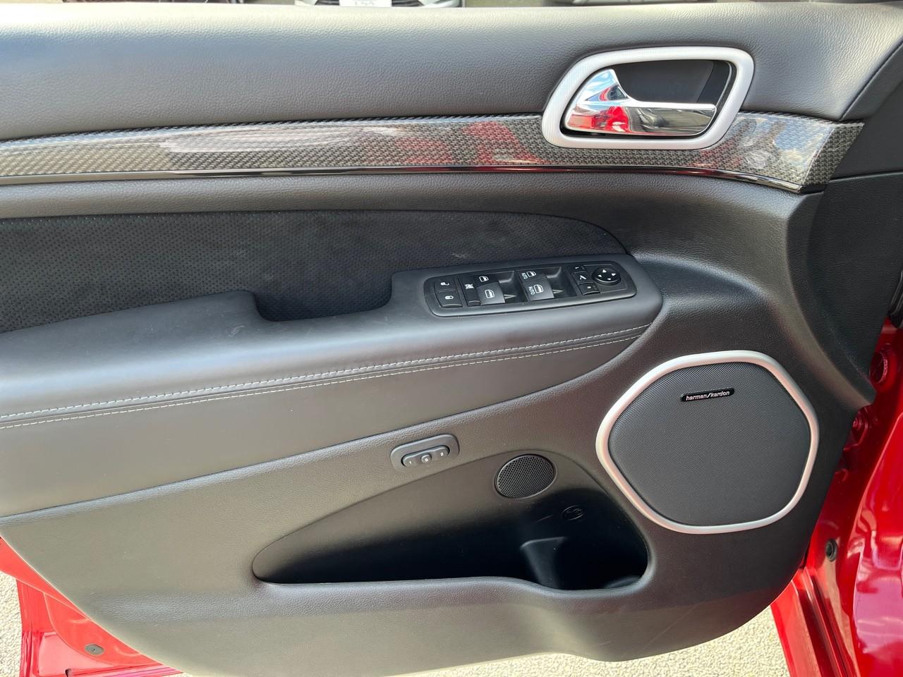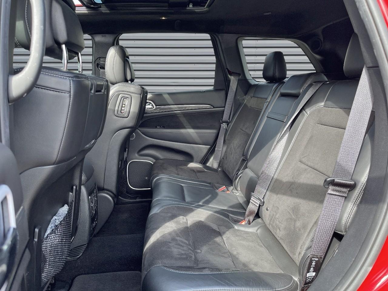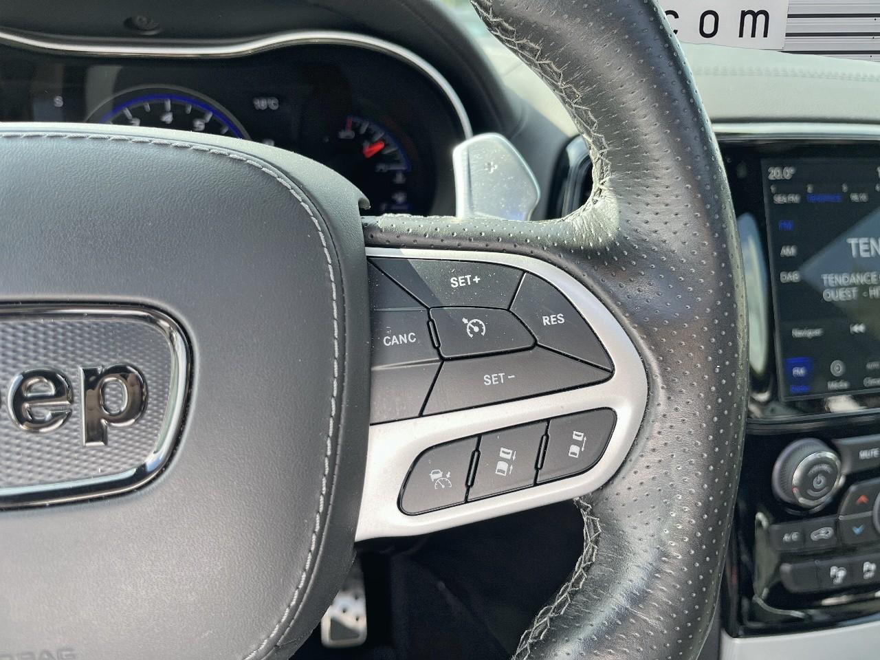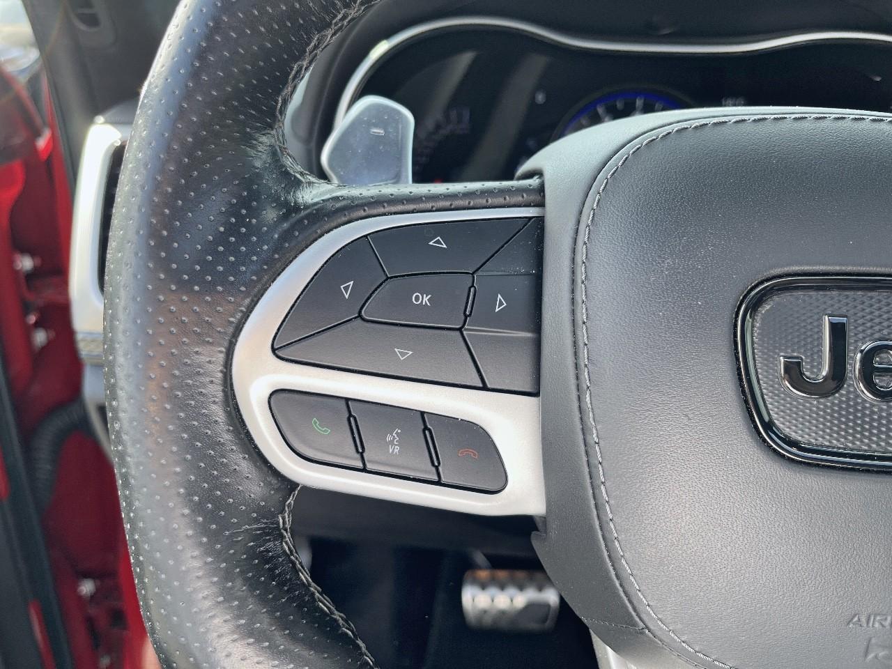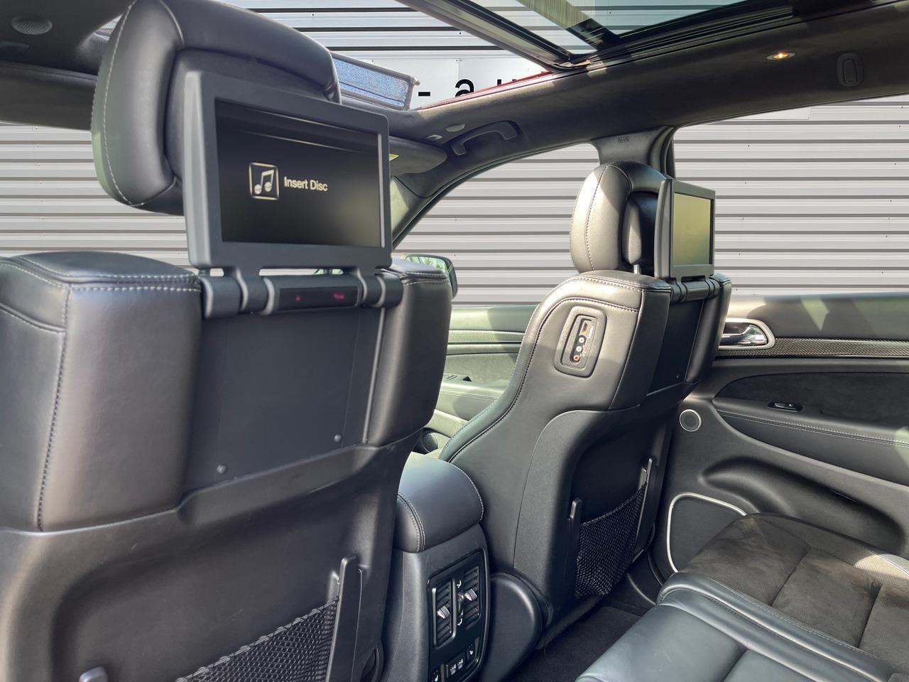 ABS - Système antiblocage des roues avec gestion différenciée en fonction de la nature du solAccoudoir central avant avec compartiment de rangementAffichage de la pression des pneusAide aux secouristes - Coupure de l'arrivée de carburant ; déverrouillage automatique des portes pour faciliter l'accès des secouristes ; éclairage de l'habitacle pour voir les occupants de l'extérieurAirbag de genoux (conducteur)Airbags frontaux (conducteur et passager) à déploiement variableAirbags latéraux additionnels (dans les sièges conducteur et passager)Airbags latéraux de type rideau avant et arrièreAlarme périmétrique de contrôle des ouverturesAlarme volumétriqueAntenne de toit « aileron de requin »Antibrouillard arrièreAppuie-tête avant actifs (système de protection contre le coup du lapin)Badges Trackhawk et SuperchargedBanquette arrière fractionnée 60/40 rabattable à plat et inclinable à 12°Boîte de vitesse automatique à 8 rapports et levier de vitesse "E-Shift "Cache-bagages à enrouleur et amovible dans le coffreCalandre noireCapteur de luminositéCapteurs de pluieClimatisation automatique bizoneColoris pastel (Bright White)Commandes audio au volantConnexions Apple CarPlay et Android AutoConsole centrale en finition métalliséeDiffuseur arrière sportEclairage extérieur de courtoisieEclairage intérieur à LEDEnter-N-Go : système d'ouverture et de démarrage sans cléESP - Système de régulation du comportement dynamiqueEtriers de freins jaunesFeux arrière à LEDFeux de jour à LEDFilet de coffreFiltre à air pour l'habitacleFonction mémorisation : siège conducteur, rétroviseurs extérieurs et stations de radioFreins Brembo Haute performance 6 pistons; avant à disques ventilés 400mm ; arrière disque de 350mmGarnissage en cuir sur le tableau de bord, les contreportes et l'accoudoir centralGrilles de haut-parleurs métalliséesHaut-parleurs avec annulation active de bruitHayon arrière à ouverture et fermeture électriqueInserts de la console centrale en finition PlatinumInserts du combiné d'instrumentation noirsJantes alliage 20" Pirelli All Season 295/45 ZR20 110YMenu spécifique Performance Trackhawk dans le système UconnectMode voiturierModule de connectique : Prise jack, Port USB 2.0 et lecteur de carte SDOrdinateur de bord : affichage digital sur écran 7 ” TCM (800 x 454)Ouïes de refroidissement à l'avantPack FreedomPalettes de changement de vitesses au volantPare-soleil coulissants avec miroirs de courtoisie éclairés intégrésPédalier chroméPoignées de portes couleur carrosseriePommeau de levier de vitesses gainé de cuir perforé SportPort USB 2.0 pour les places arrièrePorte-gobelets rétroéclairésPrises auxiliaires 12 V (console centrale et accoudoir central)Projecteurs avant adaptatifsProjecteurs bi-xénon avec lave-phares intégrés et réglage automatique de niveauQuadra-TracQuadruple sortie d'échappement noireRéglage lombaire électrique des sièges avantRégulateur de vitesse auto-adaptatif avec fonction embouteillageRétroviseur intérieur photochromatique avec microphone intégréRétroviseurs avec réglage électrique et fonction dégivrageRétroviseurs extérieurs photochromatiques rabattables électriquement avec fonction mémorisationRoue de secours compacte 20''Selec-Track : Sélecteur de modes de conduiteSeuils de portes rétroéclairésSièges arrière chauffantsSièges avant chauffantsSièges avant électriques avec réglage 8 points conducteur et passagerSièges avant ventilésSièges et contre-portes en cuir Laguna Performance avec logo TrackhawkSmartbeam : commutation automatique feux de route/feux de croisementSpoiler arrière couleur carrosserieSuspension adaptative Bilstein CompetitionSuspension sport (-17 mm)Système anti-démarrage Sentry KeySystème anti-louvoiement en conditions de tractageSystème antipatinage 4 roues par action sur les freinsSystème audio Harman Kardon High Performance: 19 haut-parleurs d'une puissance de 825 wattsSystème d 'aide au freinage d'urgenceSystème d'aide au démarrage en côteSystème d'avertissement anticollision actifSystème d'avertissement de franchissement de ligne avec correctionSystème de contrôle de la descenteSystème de détection de présence arrièreSystème de fixation pour siège enfant ISOFIXSystème de Launch Control (Aide aux départs arrêtés)Système de Navigation GPS Uconnect 3D avec écran tactile 8.4''Système de séchage des freins et répartiteur électronique de freinageSystème de surveillance des angles mortsSystème Park Assist : assistance au stationnement parallèle/perpendiculaire semi-automatiqueSystème ParkSense : aide au stationnement avec capteurs avant et arrièreSystème ParkView : Caméra de recul avec affichage sur l'écran multimédiaSystème préventif anti retournement (ERM)Système téléphonie mains-libres Uconnect et fonction reconnaissance vocaleTachymètre 320 km/hTapis de coffre PremiumTapis de sol avec logo à l'avant et à l'arrièreTrappe de carburant « capless » (sans bouchon) à verrouillage électriqueVolant avec logo TrackhawkVolant chauffant