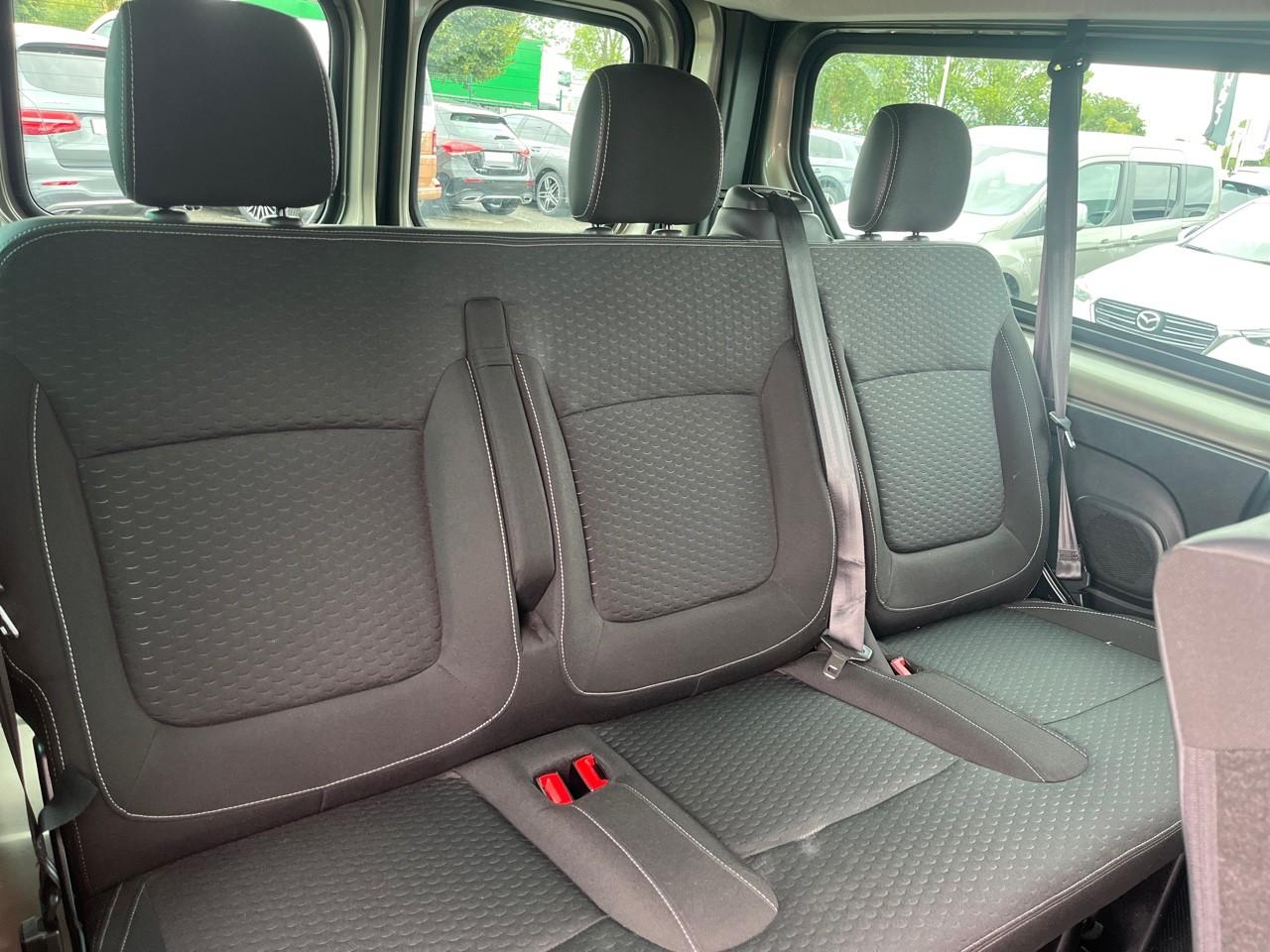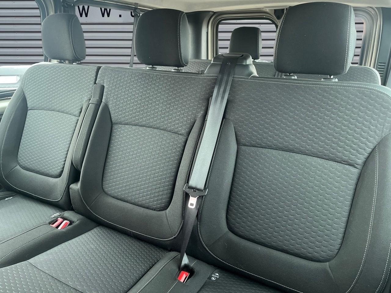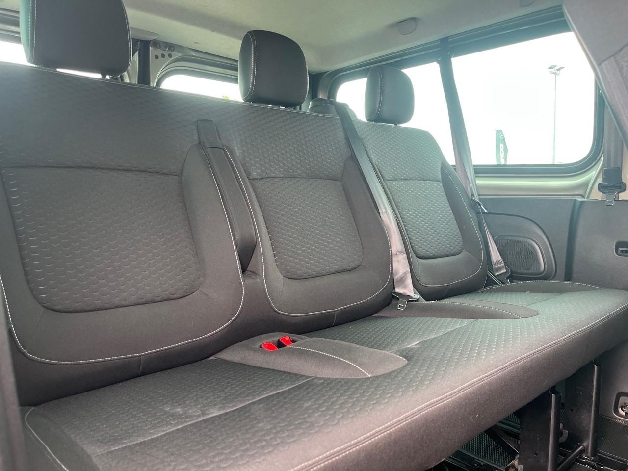 4 haut-parleurs4 poignées de maintien pour passagers arrièreVOEUAérateurs centraux et latéraux sur planche de bordAide au démarrage en côteAirbag Opel conducteurAirbag Opel passagerAlerte de dégonflage des pneumatiquesAntidémarrageAppuis-tête arrièreAppuis-tête avantAssistance au freinage d'urgence (AFU)Baguettes de protection latérale plastiqueBanquette passager 2 placesBanquettes arrière 3 places (2ème et 3ème rangées)Boîte à gants ferméeBouchon d'essence verrouillableCeintures de sécurité 3 points avec prétensionneursClimatisation manuelleCommandes de radio au volantCompte-toursCompteur kilométrique numériqueContrôle adaptatif de la charge (LAC)Contrôle électronique de trajectoire ESPDésembuage du pare-brise et des vitres latérales avantDirection assistéeEssuie-glace avant à 2 vitesses, intermittence et lave-glaceFeu arrière anti-brouillardFeux de jour halogènesFiltre anti-pollenIndicateur de changement de vitessesIndicateur de température extérieureJantes 16'' avec grands enjoliveursLève-vitres avant électriques, à impulsion côté conducteurMiroir de courtoisie sur pare-soleil passagerOrdinateur de bordPanneau latéral gauche vitre fixePare-chocs avant / arrière plastiquePoches aumônières au dos des sièges avantPorte latérale droite coulissante, à vitre fixePortes arrière battantes vitrées ouvrant à 180°Prise 12V - banquette 2ème rangéePrise 12V sur tableau de bordProtection des parois latérales intérieures en plastique (mi-hauteur)Radar de reculRadio R16 avec Bluetooth et prises USB et aux-inRégulateur et limiteur de vitesseRépartiteur électronique de freinage (EBD)Répétiteurs latéraux sur ailes avantRétroviseur intérieur deux positions (jour/nuit)Rétroviseurs extérieurs électriques et chauffantsRétroviseurs extérieurs petits bras, à double champ de visionRétroviseurs extérieurs plastiqueRevêtement de sol arrière en caoutchoucRoue de secoursSellerie Tricess Blue et tableau de bord Denim BlueSiège conducteur avec accoudoir et réglage lombaireSiège conducteur réglable à 6 voiesSystème anti-patinage ASRSystème antiblocage des roues (ABS)Système de contrôle de la stabilité au remorquageSystème EcomodeSystème préventif antiretournementTémoin de faible niveau de carburantThermomètre de température d'eauTroisième feu stopVerrouillage centralisé à distanceVitrages latéraux sur panneaux en dernière rangéeVitres teintées avantVolant réglable en hauteur et en profondeur