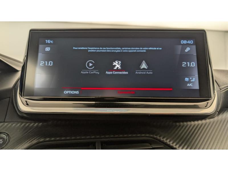 6 haut-parleurs (2 tweeters et 2 woofers à l'AV et 2 haut-parleurs à l'AR)Air conditionné automatique monozoneAirbags frontaux, latéraux AV (thorax et abdominaux), rideaux AVAllumage automatique des feux de croisementAppuis-tête réglables en hauteur AV et AR (x3)Avertisseur de temps de conduiteBanquette rabattable 1/3 - 2/3Barres de toit longitudinales Noir BrillantBecquet AR Noir BrillantCalandre haut de gamme avec grille supérieure noire vernie et marquage vertical Dark Chrome, grille inférieure avec décor Métallure, enjoliveur supérieur Noir BrillantCanules d'échappement doubles droite et gauche chroméesCommande d'ouverture extérieure couleur caisseCommandes d'ouverture intérieure de portes chroméesCommutation automatique des feux de route / feux de croisementConsole haute avec accoudoir intégréCoques de rétroviseurs extérieurs avec répétiteurs latéraux à LEDCoques de rétroviseurs extérieurs Noir BrillantDémarrage mains libres avec 2 télécommandes 3 boutons mains libresDétection de sous-gonflage indirecteDirection assistée électriqueEclairage de coffre à ampouleEclairage extérieur d'accueil et d'accompagnementEclairage intérieur à LED : plafonniers tactiles AV (1 lampe et 2 liseuses) et AR (2 liseuse), miroir de courtoisie dans pare-soleil, cave à piedsEclairage polyambient 8 couleursEnjoliveurs de custode Noir Brillant avec sérigraphieEnjoliveurs de seuil de coffre MétallureEssuie-vitre AV à déclenchement automatiqueFeux AR 3 griffes à LEDFeux diurnes à LED sous projecteursFilets aumônières au dos des sièges AVFixations suivant norme ISOFIX et Top Tether avec étiquette de localisation sur siège passager AVFixations suivant norme ISOFIX et Top Tether avec étiquettes de localisation aux places latérales ARFonction Bluetooth et Mirror Screen (Apple CarPlay / Android Auto / MirrorLink)Fonction DAB (Radio Numérique Terrestre)Frein de stationnement électrique avec aide au démarrage en pente et serrage automatiqueHabitacle et ciel de pavillon noirHill AssistKatana Noir Mat avec insert Noir Brillant et marquage GT Line brillantLécheurs de vitres latérales Noir BrillantLève-vitres AV et AR électriques séquentiels avec antipincementNavigation 3D connectée avec reconnaissance vocale, écran tactile capacitif 10" HD 2 prises USB sur console avant (1 DATA Type A et 1 de recharge type C),2 prises USB arrière sur la console haute (recharge), Fonction DAB (Radio Numérique Terrestre),Cartographie EuropPédalier Sport aluminiumPack Safety Plus : Pack Safety Freinage d'urgence automatique avec caméra & radarPanneaux de porte AV avec poignée mousséePare-brise teinté acoustique sérigraphié bi-couchesPassages de roues Noir MatPEUGEOT Connect SOSPeugeot i-Cockpit 3D avec combiné tête haute numérique 3D 10''Planche de bord slush surpiquée et panneaux de portes AV avec décors aspect carbone et éclairage polyambiant 8 couleursPlancher de coffre standard + plancher de coffre modulable (réglable en hauteur)Programme de Stabilité Electronique (ESC) avec ASR, ABS, REF, AFU, CDS et TSMProjecteurs antibrouillard à LED avec fonction corneringProjecteurs Peugeot Full LED Technology avec signature 3 griffes, indicateurs de direction à LEDProtections latérales de portes Noir grainées avec inserts MétallureRégulateur / Limiteur de vitesseRétroviseur intérieur photosensible et rétroviseurs extérieurs dégivrants avec réglage et rabattement électriquesRétroviseur intérieur photosensible framelessSélecteur mode de conduiteSellerie Tri matière Tissu CAPY / TEP, surpiqûres Vert AdamiteSeuils de portes AV en inox avec marquage PEUGEOT NoirSiège conducteur avec réglage manuel en hauteurSiège passager AV à réglage manuel en hauteur :Toit Black DiamondVerrouillage automatique de tous les ouvrants en roulantVisio Park 1 + aide graphique et sonore au stationnement AVVitres latérales AR et lunette AR chauffante temporisée surteintéesVolant compact cuir fleur avec laçage vert, Lion chromé et badge GT Line et commandes multimédia sur volantVolant réglable en hauteur et en profondeur