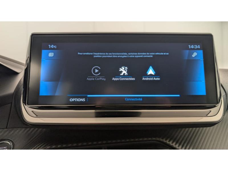 2 prises USB (Recharge type A) sur console basse pour passagers AR6 HP (2 tweeters et 2 woofers à l'AV et 2 larges bandes à l'AR)Aide graphique et sonore au stationnement ARAir conditionné automatique mono-zoneAirbags frontaux et latéraux conducteur et passager AV, rideauxAllumage automatique des feux de croisementAppuis-tête réglables en hauteur AV et AR (x3)Avertisseur de temps de conduiteBandeau entre feux AR Noir brillantBanquette AR rabattable 1/3-2/3Calandre avec grille supérieure avec marquage Chrome Brillant et enjoliveur supérieur noir grainéCeinture de sécurité AR centrale 3 points, avec détection de non bouclageCeintures de sécurité AR latérales avec enrouleurs pyrotechniques, limiteurs d'effort et détection de non bouclageCeintures de sécurité AV conducteur et passager à enrouleurs pyrotechniques avec limiteurs d'effort et détection de non bouclageConsole haute avec accoudoir intégréCoques de rétroviseurs extérieurs Noir BrillantDécor panneaux de portes Noir et AzureDétection de sous-gonflage indirecteDirection assistée électriqueEclairage coffre à lampeEclairage intérieur à ampoules : plafonnier AV à 3 spots (1 lampe et 2 liseuses)Essuie-vitre AV à déclenchement automatiqueFeux AR à LEDFixations suivant norme ISOFIX aux places latérales AR avec étiquettes de localisation, et Top TetherFonction "Mirror Screen" (Apple CarPlay / Android Auto )Fonction BluetoothFonction DAB (Radio Numérique Terrestre)Frein de stationnement électrique avec aide au démarrage en pente et serrage automatiqueHabitacle et ciel de pavillon gris clairJantes alliage 16" SOHO diamantées peintes Gris StormJupes de pare-chocs AR inférieure Noir grainée et supérieure Noir brillantKit de dépannage de pneumatiqueLève-vitres AR électriques et séquentiels avec antipincementLève-vitres AV électriques et séquentiels avec antipincementPack Safety : Reconnaissance étendue des panneaux de signalisation et préconisation de vitesse Alerte active de franchissement involontaire de ligne et bas côté Freinage d'urgence automatique (Active Safety Brake) avec alerte risque de collision (Distance Alert) AlerPare-brise teintéPeugeot i-Cockpit 3D avec combiné tête haute numérique 3DPlanche de bord slush et panneaux de portes AV avec décors aspect carboneProgramme de Stabilité Electronique (ESC) avec ASR, ABS, REF, AFU, CDS et TSMProjecteurs 'Peugeot LED Technology', indicateurs de direction à ampoulesRégulateur / Limiteur de vitesseRétroviseur intérieur photosensibleRétroviseurs extérieurs dégivrants avec réglage et rabattement électriquesRadio avec écran tactile 7" couleur capacitif, 2 prises USB (DATA type A, recharge type C) sur console AVSellerie Tri-matières tissu COSY / TEP Mistral, surpiqûres MentholéesSiège conducteur avec réglage manuel en hauteurSystème stop & go couplé avec l'assistance au positionnement sur la voieVerrouillage automatique de tous les ouvrants en roulantVisio Park 1: Caméra de recul avec restitution sur l'écran tactile d'une vue AR et d'une vue de dessus de l'environnement AR du véhicule + Aide graphique et sonore au stationnement ARVitres latérales AR et lunette AR chauffante temporisée surteintéesVolant compact croute de cuir, Lion chromé et commandes multimédia sur volantVolant réglable en hauteur et en profondeur