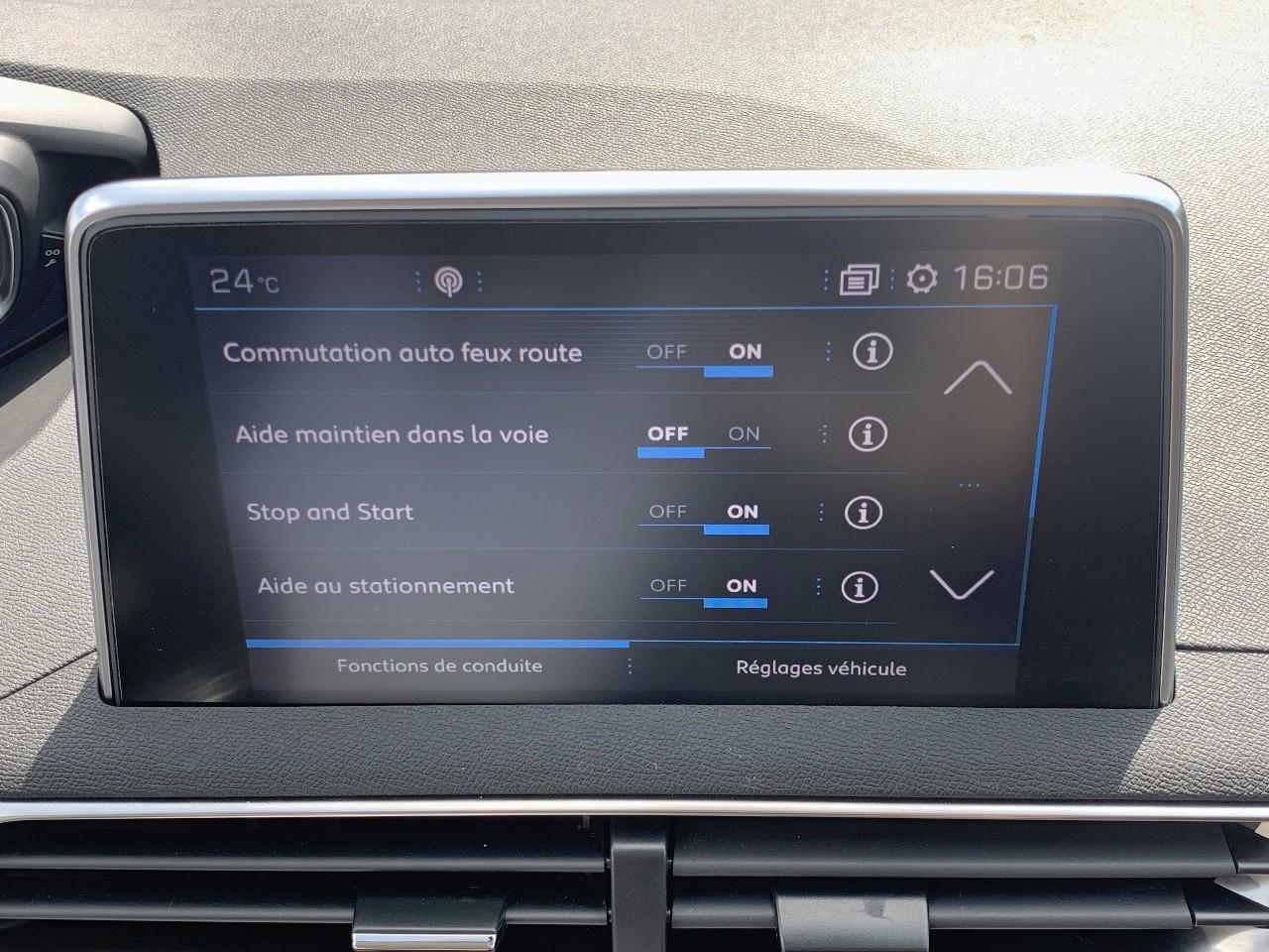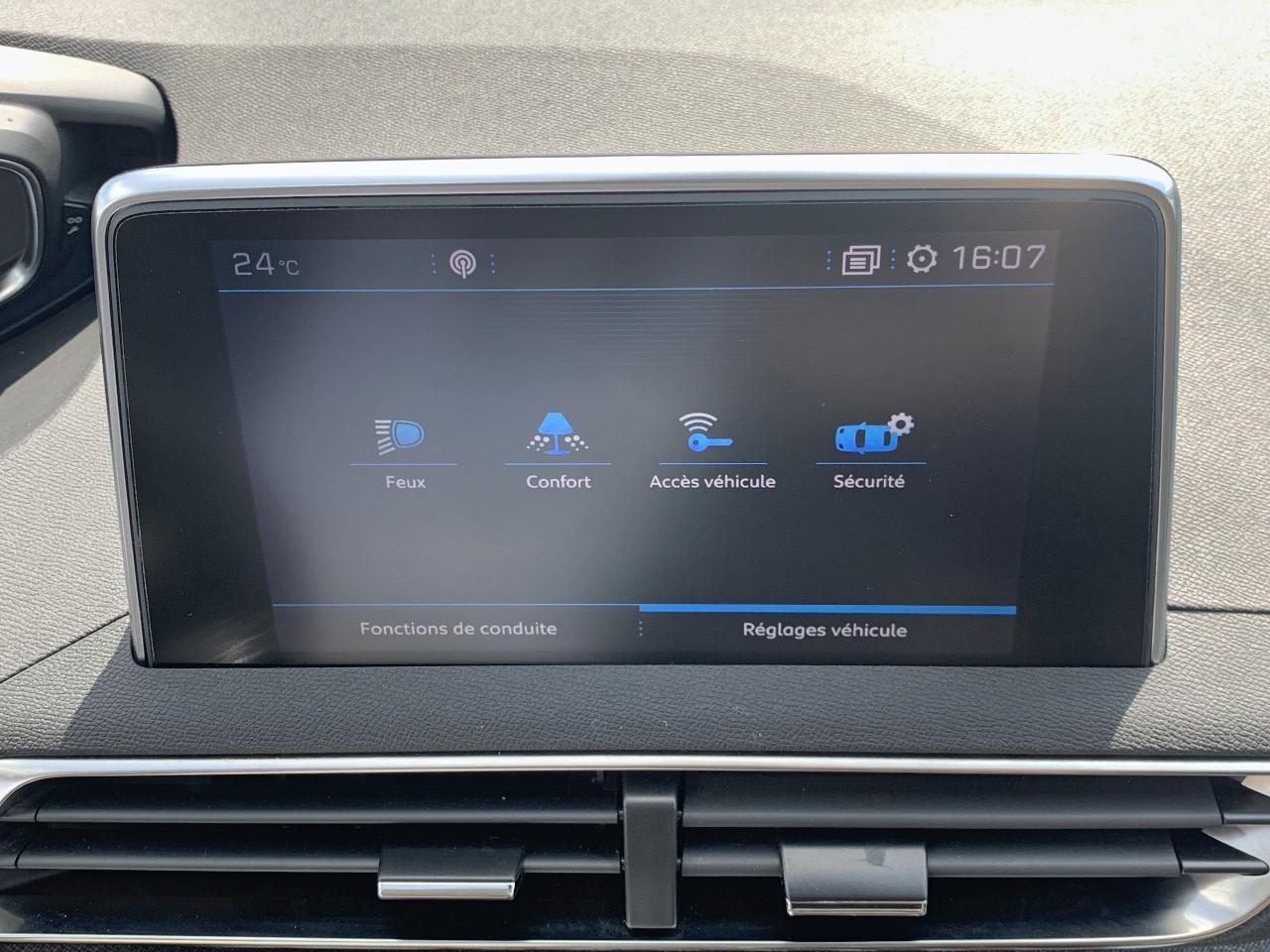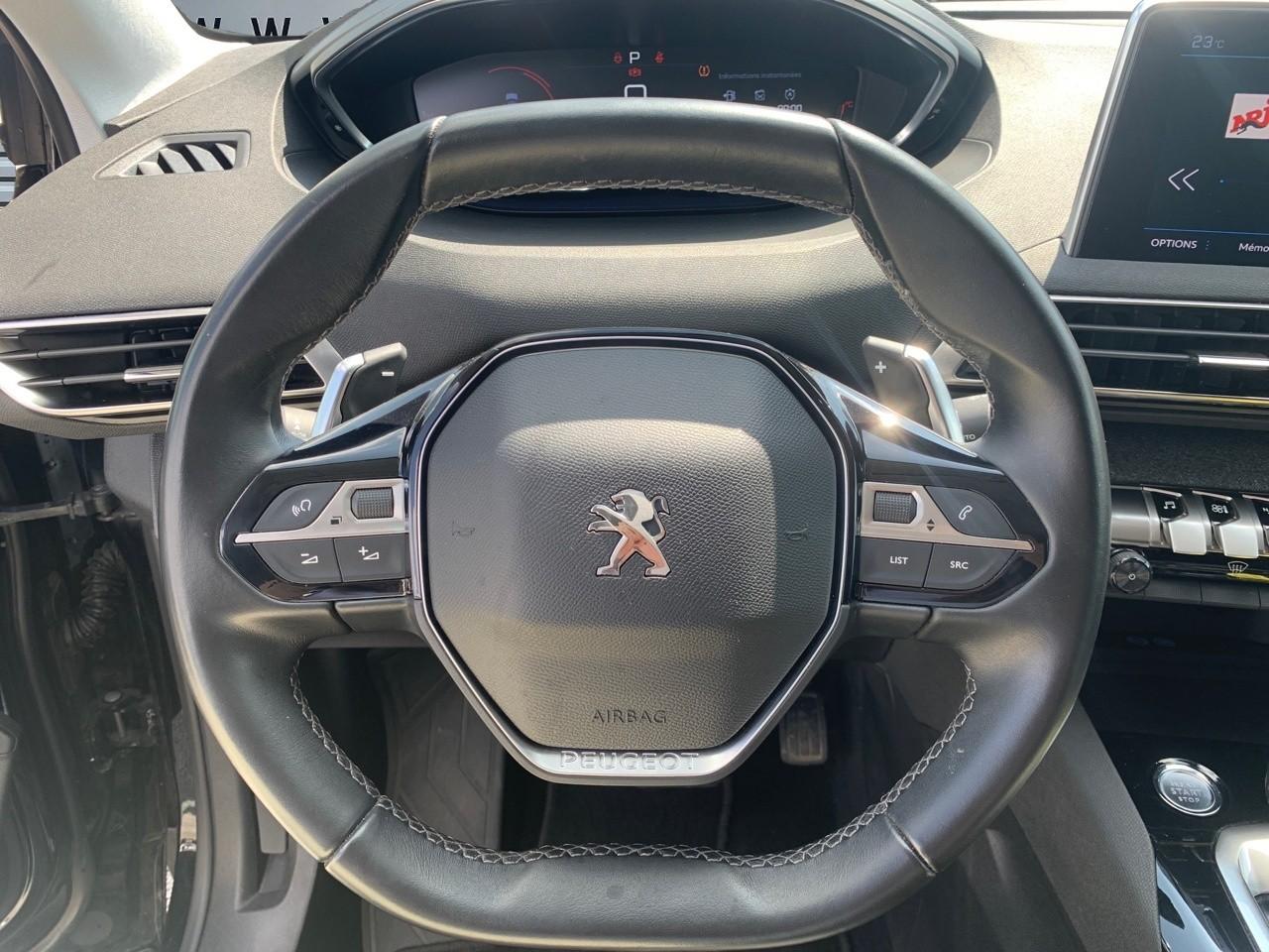 2 spots de lecture à l'arrièreABS avec répartiteur électronique de freinage (REF) et aide au freinage d'urgence (AFU)Accoudoir central avant à ouverture papillon, avec compartiment de rangement éclairé et réfrigérableAide graphique et sonore au stationnement arrièreAir conditionné automatique bi-zone avec aérateurs aux places arrièreAirbags frontaux conducteur et passager adaptatifsAirbags latéraux conducteur et passager avantAirbags rideaux de tête aux places avant et arrièreAlerte de temps de conduiteAppuis-tête à sécurité optimisée réglables en hauteur sur les sièges conducteur et passager avant ainsi que sur les places latérales arrièresBandeau de pare-choc arrière chroméBanquette rabattable 1/3 - 2/3 (modularité 'Magic Flat' et commandes dans le coffre) avec accoudoir et trappe à skisBarres de toit longitudinales profilées en aluminiumBoîte à gants floquée et éclairéeBoîtiers de rétroviseurs extérieurs couleur carrosserieBouclier avant exclusifCalandre avec jonc périphérique chrome brillant, damier chroméCarte d'accès et démarrage mains libresCeintures avant à 3 points, réglables en hauteur, avec prétensionneurs et limiteurs d'effortCeintures de sécurité arrière trois points à enrouleur (x3), avec prétensionneurs et limiteurs d'effort aux places latéralesCommande de verrouillage à distance (deux plips)Contrôle dynamique de stabilité CDS avec antipatinage électronique ASRDécors de planche de bord et panneaux de portes en maille 'Brumeo'Décors intérieurs (baguettes de planche de bord et panneaux de portes, enjoliveur de console) chromésDétection de sous-gonflage indirecteDeux porte-gobelets intégrés à la console centraleDirection assistée électrique, avec colonne de direction réglable en hauteur et profondeur (mécanique)Enjoliveurs d'arc de pavillon en inoxEnjoliveurs en inox sur les protecteurs de bas de portesEssuie-vitre arrière à activation automatique au passage en marche arrièreEssuie-vitre avant avec système de lavage 'Magic Wash'Filets aumônières au dos des sièges avantFixations pour trois sièges enfants suivant norme ISOFIX aux places passager avant et latérales arrièreFonction Mirror ScreenFrein de stationnement électrique avec aide au démarrage en penteHayon mains libres : volet de coffre motorisé avec accès mains libresIndexation des rétroviseurs extérieurs à la marche arrièreIndicateur de rapportInserts d'ailes avant chromésJantes alliage 18" 'Detroit' bi-ton diamantéesKit de dépannage pneumatiqueLève-vitres électriques avant et arrière, séquentiels et antipincementLunette arrière chauffante avec antennes sérigraphiéesMiroirs de courtoisie éclairésPack City 1Pack Eclairage d'ambiancePack Safety PlusPack VisibilitéPassages de roues rapportés noirsPeugeot Connect : Navigation 3D connectée avec reconnaissance vocale + PEUGEOT Connect SOS & AssistancePeugeot i-Cockpit combiné tête haute numérique reconfigurable, écran tactile capacitif 8" et volant compact multi-fonctionsPlafonnier avant avec spots de lecture (x2) et plafonnier arrière à extinction temporiséePlancher de coffre deux positionsPoignées de maintien (x4) rétractables avec frein (crochets pour cintres aux places arrière)Prise 12V (x3) : à l'avant, à l'arrière et dans le coffrePrise USBProjecteurs 'Peugeot Full LED Technology'Projecteurs antibrouillard halogènes avec enjoliveurs chromésRadio 6 HP, compatible MP3 et connectivité Bluetooth (audio streaming, kit mains libres), avec commandes au volantRadio numérique terrestreRecharge smartphone sans filReconnaissance des panneaux de vitesse et préconisationRégulateur et limiteur de vitesseRétroviseurs extérieur électriques et dégivrantsRétroviseurs extérieurs rabattables électriquement avec éclairage d'approche à LEDSabot de pare-choc avant gris métalliséSécurité enfant électrique des vitres arrièreSellerie TEP & Tissu 'Piedimonte' ou 'Evron'Siège conducteur à réglage lombaireSiège conducteur réglage en hauteurSiège passager à réglage manuel en hauteurSiège passager avant avec mise en tabletteTeinte de caisse Gris HurricaneToggle Switches' chromés (touches 'piano' d'activation des fonctions de l'écran tactile)Verrouillage automatique de tous les ouvrants en roulantVitres latérales arrière et lunette arrière surteintéesVolant cuir pleine fleur