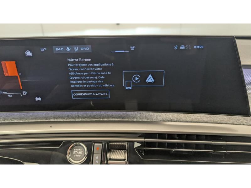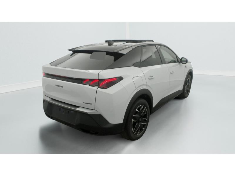 2 prises 12 V (Console centrale, coffre)4 poignées de maintien rétractables (2 à l'AV et 2 à l'AR)6 airbags: frontaux conducteur et passager auto-adaptatifs (passager neutralisable par clé), latéraux conducteur et passager AV (thorax et bassin), rideaux aux places AV et AR (tête et thorax)6 HP (2 tweeters et 2 woofers à l'AV et 2 larges bandes à l'AR)ABSAccès et démarrage mains libres Proximity 2 Télécommandes 3 boutons (verrouillage, coffre, déverrouillage)Accoudoir centralAir conditionné automatique bi-zoneAllumage automatique des pharesBanquette AR avec dossier rabattable 40/20/40Boîte de vitesse automatique, séquentielle (6 rapports)Commutation adaptative des projecteursCommutation automatique des feux de routeContrôle de tractionDétection de sous-gonflage indirecteDirection assistéeDrive Assist - Régulateur de vitesse adaptatif avec fonction Stop & GoEclairage d'ambiance indirect, jour & nuit sur la planche de bord, les panneaux de portes AV et sous l'écran panoramique 21'', associé aux modes de conduite, personnalisable en 8 couleursEclairage intérieur Miroirs de courtoisie conducteur et passager occultables éclairés à LEDEléments de style éxterieur Bandeau entre les projecteurs Noir laqué avec logo 3008. Calandre couleur caisse, écopes latérales Noir laqué, décor inférieur Gris Meteor, jupe inférieure Noir grainé. Vitres AR, vitres de custode et lEléments de style intérieure Planche de bord moussée avec décor tissu RIMINI chiné, décor d’alcôve en Aluminium sérigraphié, façade et aérateurs Noir laqué avec décor Cast Iron, Panneaux de portes avec dESP avec aide au démarrage en penteEssuie-vitre AV à déclenchement automatiqueFeux AR 3 griffes à LED 3DFeux diurnes 3 griffes à LEDFixations ISOFIX et Top Tether aux places latérales ARFrein de stationnement électriqueHabitacle et ciel de pavillon NoirHayon motorisé avec accès mains libresJantes alliage 19" diamantées BREDA Noir Orbital, vernis brillantLève-vitres AV/AR électriques et séquentiels avec antipincementMonogrammes ailes AV: 'blason PEUGEOT'Monogrammes AR 3008 et HybridMonogrammes AV: blason PEUGEOT et 3008Pédalier et repose pied aluminiumPack Safety Plus : Alerte attention conducteur Régulateur / Limiteur de vitesse Reconnaissance étendue des panneaux de signalisation et préconisation de vitesse Alerte active de franchissement involontaire de ligne et bas côté Freinage d'urgence automatique avPare-brise feuilleté acoustiquePEUGEOT i-Cockpit panoramique avec écran incurvé et flottant 21'' HDPEUGEOT i-Connect Advanced Navigation 3D connectée, 4 prises USB: 1 prise USB C (Data & charge) et 1 prise USB C (Charge) à l'AV, 2 prises USB C (Charge) à l'ARPEUGEOT i-Toggles virtuels avec 10 raccourcis personnalisablesPlancher de coffre modulable 2 positionsProjecteurs PEUGEOT PIXEL LED Eclairage adaptatif, commutation automatique des feux de route, feux de route avec fonctions anti éblouissement et boostRétroviseurs extérieurs dégivrants avec réglage et rabattement électriques, éclairage de seuilSellerie tissu NEW UZIRIS embossé, accompagnement TEP Isabella, écharpe tissu RIMINI chiné, surpiqûres Iced ClaySeuil de portes AV inox avec lettrage PEUGEOTSiège conducteur à réglage lombaire manuelSièges AV à réglage en hauteur manuelSièges AV chauffantsToit et becquet AR Black DiamondVisiopark 1 Caméra de recul & aide au stationnement AV et AR, graphique et sonoreVitres AV électriquesVolant chauffantVolant compact, cuir fleur lisse et perforé avec commandes intégrées Noir Laqué, décors Cast Iron, surpiqûres Iced Clay, insert Noir laqué avec badge ‘GT’