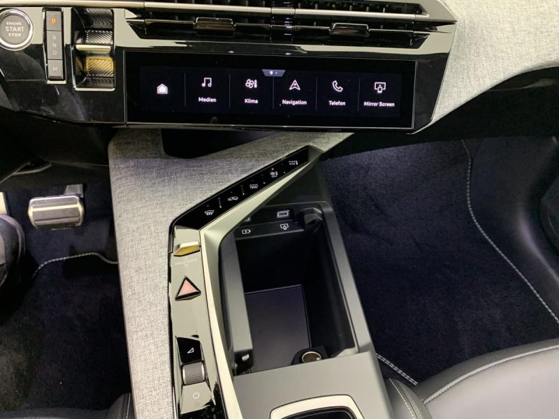 2 prises 12 V (Console centrale, coffre)4 poignées de maintien rétractables (2 à l'AV et 2 à l'AR)6 airbags: frontaux conducteur et passager auto-adaptatifs (passager neutralisable par clé), latéraux conducteur et passager AV (thorax et bassin), rideaux aux places AV et AR (tête et thorax)6 HP (2 tweeters et 2 woofers à l'AV et 2 larges bandes à l'AR)ABSAccès et démarrage mains libres Proximity 2 Télécommandes 3 boutons (verrouillage, coffre, déverrouillage)Accoudoir centralAir conditionné automatique bi-zoneAllumage automatique des pharesBanquette AR avec dossier rabattable 40/20/40Boîte de vitesse automatique, séquentielle (6 rapports)Commutation adaptative des projecteursCommutation automatique des feux de routeContrôle de tractionDétection de sous-gonflage indirecteDirection assistéeDrive Assist - Régulateur de vitesse adaptatif avec fonction Stop & GoEclairage d'ambiance indirect, jour & nuit sur la planche de bord, les panneaux de portes AV et sous l'écran panoramique 21'', associé aux modes de conduite, personnalisable en 8 couleursEclairage intérieur Miroirs de courtoisie conducteur et passager occultables éclairés à LEDEléments de style éxterieur Bandeau entre les projecteurs Noir laqué avec logo 3008. Calandre couleur caisse, écopes latérales Noir laqué, décor inférieur Gris Meteor, jupe inférieure Noir grainé. Vitres AR, vitres de custode et lESP avec aide au démarrage en penteEssuie-vitre AV à déclenchement automatiqueFeux AR 3 griffes à LED 3DFeux diurnes 3 griffes à LEDFixations ISOFIX et Top Tether aux places latérales ARFrein de stationnement électriqueHabitacle et ciel de pavillon NoirHayon motorisé avec accès mains libresJantes alliage 19" diamantées BREDA Noir Orbital, vernis brillantLève-vitres AV et AR électriques séquentiels avec antipincementMonogrammes ailes AV: 'blason PEUGEOT'Monogrammes AR 3008 et HybridMonogrammes AV: blason PEUGEOT et 3008Pédalier et repose pied aluminiumPack Safety Plus : Alerte attention conducteur Régulateur / Limiteur de vitesse Reconnaissance étendue des panneaux de signalisation et préconisation de vitesse Alerte active de franchissement involontaire de ligne et bas côté Freinage d'urgence automatique avPare-brise feuilleté acoustiquePEUGEOT i-Cockpit panoramique avec écran incurvé et flottant 21'' HDPEUGEOT i-Connect Advanced Navigation 3D connectée, 4 prises USB: 1 prise USB C (Data & charge) et 1 prise USB C (Charge) à l'AV, 2 prises USB C (Charge) à l'ARPEUGEOT i-Toggles virtuels avec 10 raccourcis personnalisablesPlancher de coffre modulable 2 positionsProjecteurs PEUGEOT PIXEL LED Eclairage adaptatif, commutation automatique des feux de route, feux de route avec fonctions anti éblouissement et boostRétroviseurs extérieurs dégivrants avec réglage et rabattement électriques, éclairage de seuilSellerie tissu NEW UZIRIS embossé, accompagnement TEP Isabella, écharpe tissu RIMINI chiné, surpiqûres Iced ClaySeuil de portes AV inox avec lettrage PEUGEOTSiège conducteur à réglage lombaire manuelSièges AV à réglage en hauteur manuelSièges AV chauffantsToit et becquet AR Black DiamondVisiopark 1 Caméra de recul & aide au stationnement AV et AR, graphique et sonoreVitres AV électriquesVolant chauffantVolant compact, cuir fleur lisse et perforé avec commandes intégrées Noir Laqué, décors Cast Iron, surpiqûres Iced Clay, insert Noir laqué avec badge ‘GT’