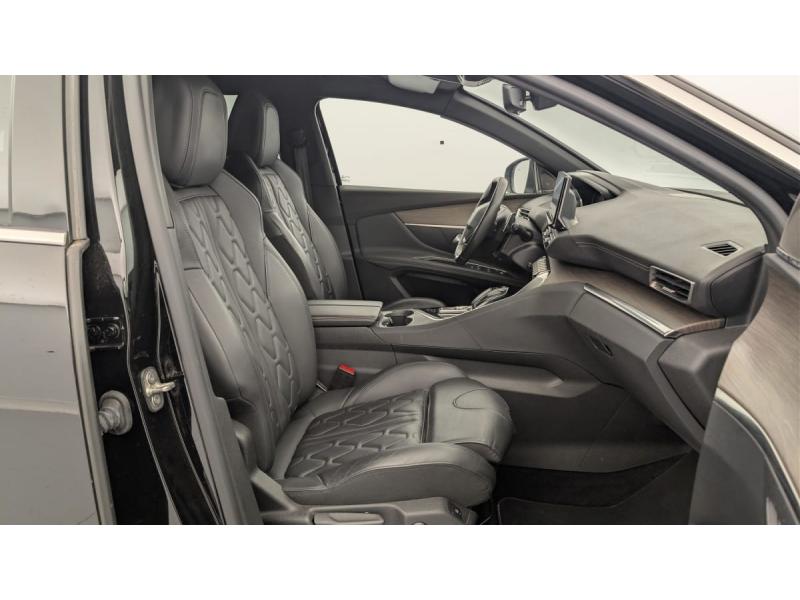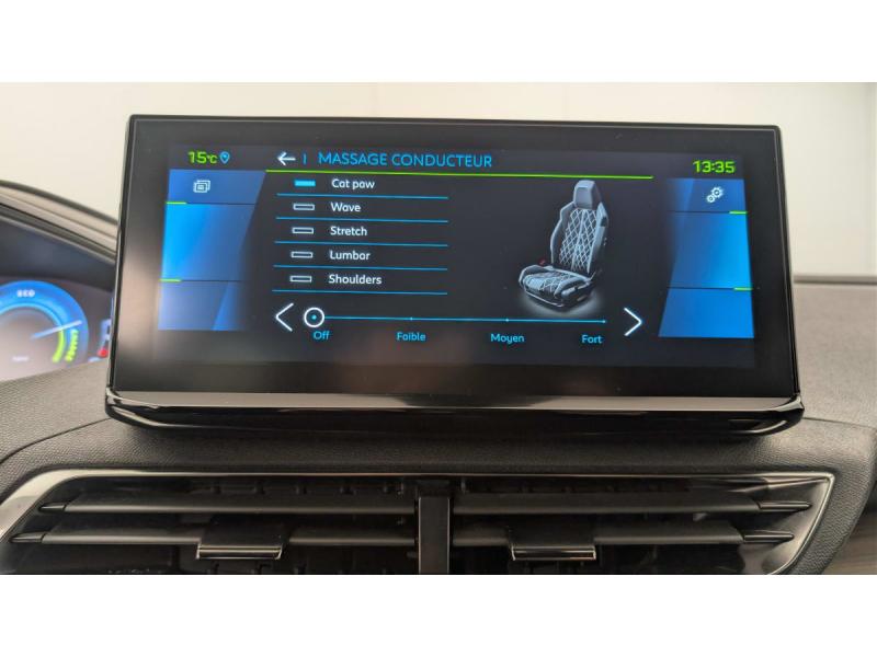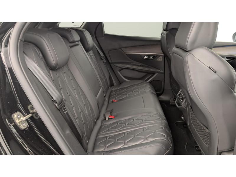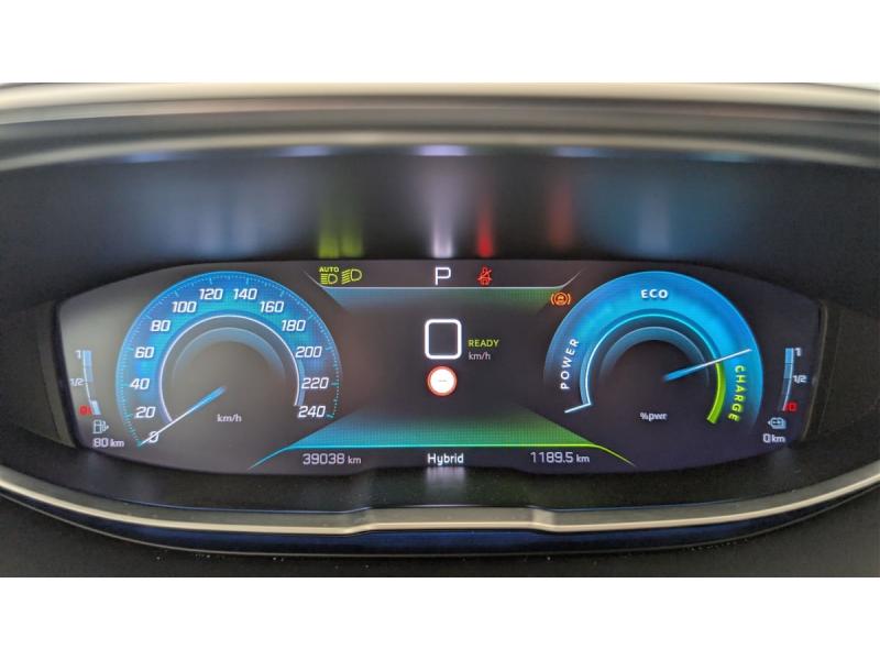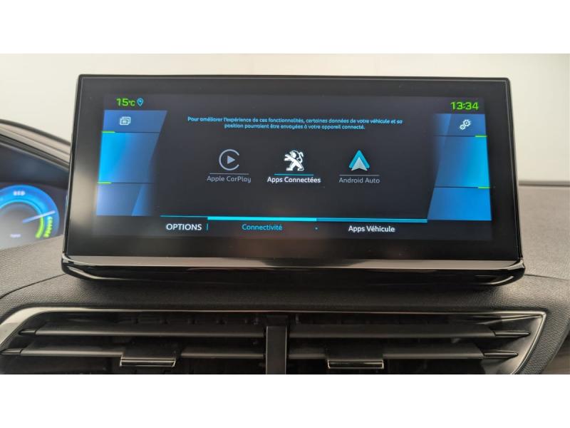 Accès et démarrage mains libresAccoudoir central AV à ouverture papillon, avec compartimentAide graphique et sonore au stationnement ARAir conditionné automatique bi-zone avec aérateurs aux places ARAirbags frontaux conducteur et passager adaptatifs (passager neutralisable par clé), airbags latéraux conducteur et passager AV.airbags rideaux de tête aux places AV/ARAppuis-tête à sécurité optimisée réglables en hauteur sur les sièges conducteur et passager AV ainsi que sur les places latérales ARBanquette rabattable 1/3 - 2/3 (commandes dans le coffre) avec accoudoirBarres de toit longitudinalesContrôle dynamique de stabilité CDS avec antipatinage électronique ASRDétection de sous-gonflage indirecteDirection assistée électrique, colonne de direction réglable en hauteur et profondeur (mécanique)Essuie-vitre AR avec enclenchement automatique en marche AREssuie-vitre AV avec système de lavage "Magic Wash"Fonction "Mirror Screen" (Apple CarPlay / Android Auto )Frein de stationnement électrique avec aide au démarrage en penteHayon motorisé avec accès mains libresJantes alliage 19" 'San Francisco' bi-ton diamantées Noir Onyx matKit de dépannage de pneumatiqueLève-vitres AV/AR électriques et séquentiels avec antipincementNavigation 3D connectée avec écran tactile capacitif 10" HD avec reconnaissance vocale & cartographie EuropePédalier et repose-pied conducteur en aluminiumPack City 2 : Visiopark 2: caméras AV et de recul avec restitution sur l'écran tactile d'une vue AV ou AR et d'une vue de dessus de l'environnement du véhicule sur 360° Park Assist : assistance active au stationnement en créneau ou en bataillePack Drive Assist Plus : Régulateur de vitesse adaptatif avec fonction Stop&Go Aide au maintien de la position dans la voie (Lane Positioning Assist) Active Safety Brake avec Distance AlertPack Safety Plus : Alerte attention conducteur Commutation automatique des feux de route / feux de croisement Alerte active de franchissement involontaire de ligne et bas côté Active Safety Brake avec Distance Alert Système de surveillance d'angle mortPack Visibilité : Eclairage d'accompagnement automatique Allumage automatique des feux de croisement Essuie-vitre AV à déclenchement automatiquePEUGEOT Connect SOSPeugeot i-Cockpit avec combiné tête haute numérique haute qualité d'affichage, écran tactile capacitif 10" HD et volant compact multi-fonctionsPrise USB (dans la zone connectique)Projecteurs "Peugeot Full LED Technology" avec correction automatique de site, fonction Eclairage Virage Statique,"Foggy Mode" et feux diurnes à LED prolongés dans les projecteursRétroviseur intérieur photosensible sans cadreRétroviseurs extérieurs dégivrants à réglage électriqueRétroviseurs extérieurs rabattables électriquement avec éclairage d'accueil à LEDReconnaissance étendue des panneaux de signalisationSécurité enfants électrique des vitres ARSélecteur de modes de conduite (Electric, Hybrid, Sport)Système d'antiblocage des roues ABS avec répartiteur électronique de freinage REF et assistance au freinage d’urgence AFUSystème HI-FI Premium FOCALToggle Switches chromés (touches piano d'activation des fonctions de l'écran tactile)Vitres AV feuilletées acoustiquesVitres latérales AR et lunette AR surteintéesVolant cuir fleur perforé avec bagues chromées et badge GT