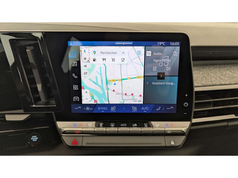 2 prises USB à l'AV et à l'ARABS avec aide au freinage d'urgenceAide au freinage d'urgenceAide au parking AV/AR et latéralAirbags frontaux (conducteur et passager)Airbags latéraux bassin / thorax conducteur et passager AVAirbags latéraux, milieu AV et rideauxAlerte détection de fatigueAlerte de distance de sécuritéAlerte franchissement de ligne et assistant maintien dans la voieAppel d'urgenceAppuis-tête AV réglablesBanquette AR 1/3 2/3Caméra de reculCarte Renault accès et démarrage mains libresCiel de toit gris anthraciteClignotants AR dynamiquesClimatisation automatique bi-zoneDétection intelligente des limitations de vitesse et prévention survitesseDirection assistéeFeux AR à LED avec effet 3DFeux de jour à LEDFeux LED adaptive vision (avec fonction antibrouillard intégrée)Frein de parking électrique avec fonction Auto-HoldJantes alliage 18"Lève-vitres AV / AR électriquesMy Safety switch (raccourci vers configuration personnalisée des aides à la conduite)Navigation Google MapsPalettes au volantRégulateur de vitesse adaptatifRétroviseurs extérieurs électriques, dégivrants, rabattables automatiquementSellerie mixte textile refined/tissu gris clair avec motif embosséSiège conducteur et passager avec réglage en hauteurSièges avec système ISOFIXSystème de surveillance de la pression des pneusSystème multimédia connecté OpenR Link avec écran tactile 9"Tableau de bord full numérique 12,3''Verrouillage centraliséeVolant réglable en hauteur et profondeur