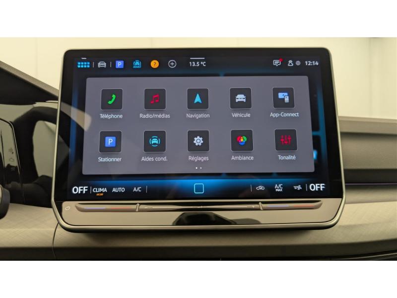 2 interfaces USB-C à l'AV2 prises de chargement USB-C derrière l'accoudoir pour les passagers ARAccoudoir central AV et ARAirbags frontaux AV conducteur et passager (Airbag passager désactivable)Airbags latéraux AVAlerte de perte de pression des pneusApp-Connect sans fil affichage et contrôle via l'écran tactile du véhicule, du contenu, des fonctions et des applications compatibles présents sur le Smartphone (compatibilité avec les systèmes Apple CarPlay et Android Auto)Appuis lombaires réglables à l'AVBanquette AR rabattable 2/3-1/3 avec trappe à skisChargeur inductionClimatisation "Air Care Climatronic" 3 zones et filtre anti-allergène et éléments de commandes à l'ARDigital Cockpit Pro : combiné d'instruments digital avec écran digital haute résolution de 10,25"Eclairage d'ambiance 10 couleursFatigue Détection : système de détection de fatigue du conducteur qui analyse le comportement du conducteur et recommande un temps de repos par l'apparition d'un message visuel et sonoreFrein de stationnement électromécanique avec fonction d'immobilisation en pente "Auto Hold" et assistant de démarrage en côteFront Assist - Système de surveillance périmétrique avec fonctions de freinage d'urgence en ville et détection des piétonsInterface téléphone BluetoothJantes en alliage 16'' "Norfolk" pneumatiques 205/55 R16Lane Assist: Assistant de maintien dans la voieLimiteur de vitesse prédictifOeillets d'arrimage ISOFIX (dispositif pour fixation de 2 sièges-enfants sur la banquette AR)Pack Visibilité : Allumage automatique des feux avec fonctions "Coming Home - Leaving Home" Capteur de pluie avec essuie-glace automatiquePark Pilot : Système d'aide au stationnement AV/AR avec signaux sonores et visualisation de la distance des obstacles sur l'écranPrise 12 V dans le coffreProjecteurs 100% LED (projecteurs, feux de jour AV, feux AR)Réception de radio numérique (DAB+)Régulateur de vitesse adaptatif et prédictif ACC avec limiteur de vitesse détecte dans les limites du système et à l'aide d'un capteur radar les véhicules qui précèdent et maintient la distance en intervenant sur les freins et l'Rétroviseur intérieur à réglage jour/nuit automatiqueRétroviseurs extérieurs à réglage, rabattement et dégivrage électriques, avec fonction mémoireSellerie en tissu "Maze"Sièges confort à l'AV réglables en hauteurSide Assist (assistance changement de voie et de sortie de stationnement)Sign Assist: Reconnaissance des panneaux de signalisation et affichage sur le 'Digital Cockpit' et l'écran du système de radionavigationSystème Start/Stop avec dispositif de récupération de l'énergie au freinageVitres AV/AR électriquesVolant réglable en hauteur et en profondeur