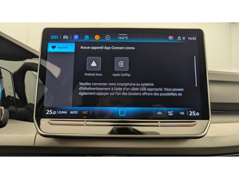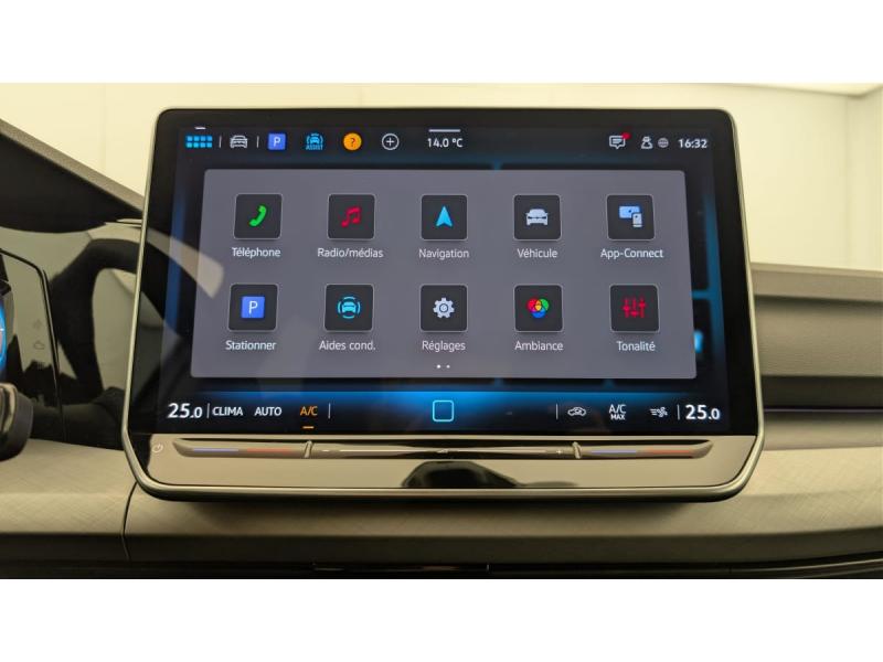 Accoudoir central AV et ARAirbags frontaux AV conducteur et passager (Airbag passager désactivable)Airbags latéraux AVAlerte de perte de pression des pneusApp-Connect sans fil affichage et contrôle via l'écran tactile du véhicule, du contenu, des fonctions et des applications compatibles présents sur le Smartphone (compatibilité avec les systèmes Apple CarPlay et Android Auto)Appuis lombaires réglables à l'AVChargeur inductionClimatisation "Air Care Climatronic" 3 zones et filtre anti-allergène et éléments de commandes à l'ARDigital Cockpit Pro : combiné d'instruments digital avec écran digital haute résolution de 10,25"Fatigue Détection : système de détection de fatigue du conducteur qui analyse le comportement du conducteur et recommande un temps de repos par l'apparition d'un message visuel et sonoreFrein de stationnement électromécanique avec fonction d'immobilisation en pente "Auto Hold" et assistant de démarrage en côteFront Assist - Système de surveillance périmétrique avec fonctions de freinage d'urgence en ville et détection des piétonsInterface téléphone BluetoothJantes en alliage 16'' "Norfolk" pneumatiques 205/55 R16Lane Assist: Assistant de maintien dans la voieLimiteur de vitesse prédictifOeillets d'arrimage ISOFIX (dispositif pour fixation de 2 sièges-enfants sur la banquette AR)Pack Visibilité : Allumage automatique des feux avec fonctions "Coming Home - Leaving Home" Capteur de pluie avec essuie-glace automatiquePark Pilot : Système d'aide au stationnement AV/AR avec signaux sonores et visualisation de la distance des obstacles sur l'écranProjecteurs 100% LED (projecteurs, feux de jour AV, feux AR)Réception de radio numérique (DAB+)Régulateur de vitesse adaptatif et prédictif ACC avec limiteur de vitesse détecte dans les limites du système et à l'aide d'un capteur radar les véhicules qui précèdent et maintient la distance en intervenant sur les freins et l'Rétroviseur intérieur à réglage jour/nuit automatiqueRétroviseurs extérieurs à réglage, rabattement et dégivrage électriques, avec fonction mémoireSellerie en tissu "Maze"Sièges confort à l'AV réglables en hauteurSide Assist (assistance changement de voie et de sortie de stationnement)Sign Assist: Reconnaissance des panneaux de signalisation et affichage sur le 'Digital Cockpit' et l'écran du système de radionavigationSystème Start/Stop avec dispositif de récupération de l'énergie au freinageVitres AV/AR électriquesVolant réglable en hauteur et en profondeur