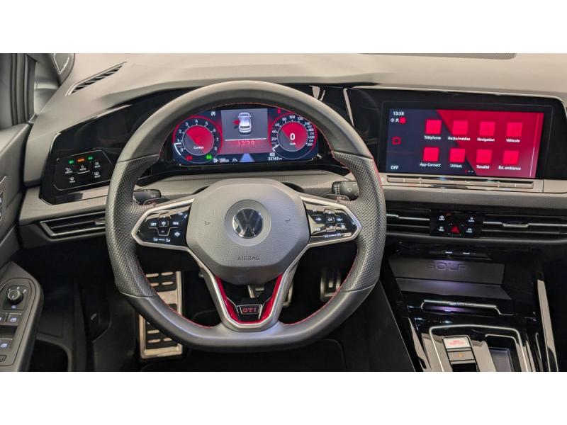 2 interfaces USB-C à l'AV2 prises de chargement USB-C derrière l'accoudoir pour les passagers ARAccoudoir central AV et ARAirbags frontaux AV conducteur et passager (Airbag passager désactivable)Airbags latéraux AVAlerte de perte de pression des pneusAllumage automatique des feux avec fonctions "Coming Home - Leaving Home"App-Connect sans fil, affichage et contrôle via l'écran tactile de la voiture du contenu, des fonctions et des applications compatibles présents sur le Smartphone (compatibilité avec les systèmes Apple CarPlay et Android Auto). Fonction sans fil uniquement dispBaguette lumineuse entre les projecteursBanquette AR rabattable 2/3-1/3 avec trappe à skisCaméra de recul "Rear View"Chargeur inductionClimatiseur "Air Care Climatronic" 1 zoneDCC: Système d'amortissement piloté avec selection du profil de conduiteDigital Cockpit ProEclairage d'ambiance 30 couleursEssuie-glace AR intermittent avec lave-glaceEtriers de frein rouge à l'AV et à l'ARFatigue Detection : système de détection de fatigue du conducteur qui analyse le comportement du conducteur et recommande un temps de repos par l'apparition d'un message visuel et sonoreFrein de stationnement électromécanique avec fonction d'immobilisation en pente "Auto Hold" et assistant de démarrage en côteFront Asisst avec détecteur des piétonsIndicateur de température extérieure avec avertisseur de gelInterface téléphone BluetoothJantes alliage léger "Adelaide" 7,5 J x 19 avec pneu 235/35 R19Lane Assist: Assistant de maintien dans la voieOeillets d'arrimage ISOFIX (dispositif pour fixation de 2 sièges-enfants sur la banquette AR)ParkPilot, aide au stationnement AV/ARPrise 12 V dans le coffreProjecteurs LED Plus haute performance avec éclairage de jour à LEDRéception radio numérique DAB+Régulateur de vitesse adaptatif et prédictif ACC avec limiteur de vitesseRétroviseurs extérieurs à réglage et dégivrage électriquesRangement et prise 12 V à l'AVSélection du profil de conduiteSièges AV sport spécifique GTI Clubsport, appui-tetes intégrés, appuis lombaires AVSystème Start/Stop avec récupération d'énergie au freinageVitres AR et lunette AR surteintées à 65 %Vitres AV/AR électriquesVolant réglable en hauteur et en profondeurVolant sport multifonction en cuir spécifiqque "GTI Clubsport " palettes au volant, commandes tactiles et retour haptique, avec surpiqures rouges