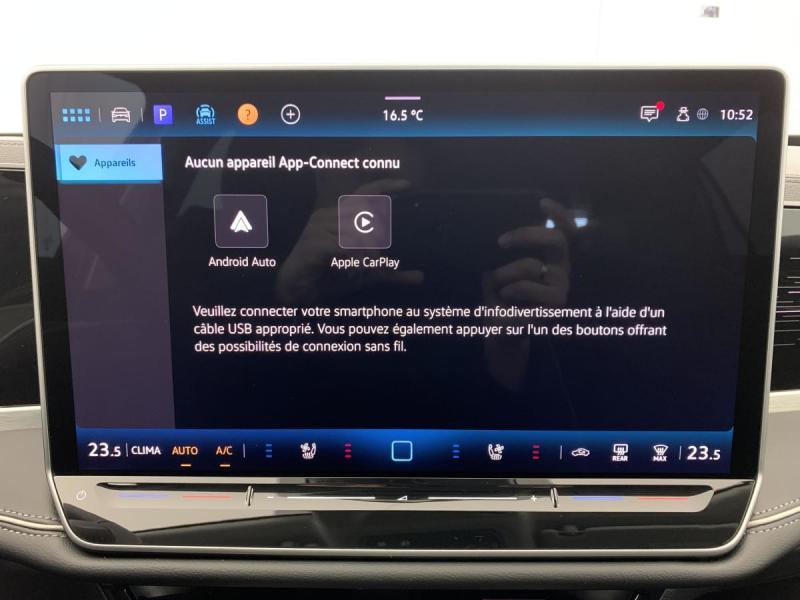 2 USB AV/ARAccoudoir central ARAirbag rideauxAirbags de tête pour passagers AV/AR avec Airbags latéraux AVAirbags frontaux AV avec désactivation airbag passager AVAlarme antivolAllumage automatique des projecteurs avec feux de jour à LED et fonction "Coming/Leaving Home"App-Connect sans filApplications décoratives brillant sur le tableau de bord et les revêtements de portesAssistant de freinage d'urgence Front Assist avec système de détection des piétons et cyclistesAssistant de maintien sur la voie Lane AssistBandeau lumineux AV/AR avec logo lumineux ARClimatisation automatique tri-zoneDétecteur d'angles morts "Side Assist" avec assistance de sortie de stationnementDétecteur de fatigueDétecteur de pluieDynamic Light Assist: Régulation du faisceau lumineux permettant un usage permanent des feux de route tout en préservant les zones qui risquent d'éblouir les autres automobilistes (à partir de 60 km/h)Eclairage d'ambiance 30 couleursESPFeux AR à LED avec clignotants AR défilantsFrein de stationnement électrique avec fonction Auto-HoldInterface Bluetooth pour téléphone portableInterface téléphonique avec fonction de chargement à inductionJantes en alliage léger 17" "Napoli"Keyless Access: Système de verrouillage/dévérrouillage sans clé et démarrage avec bouton Start/StopMiroirs de courtoisie éclairés dans les pare-soleilsOeillets de retenue ISOFIX pour sièges pour enfantsOuverture et fermeture du coffre mains-libres "Easy Open/Easy Close"Pack Cargo : Prise 230V dans le coffre Plancher variable pour le compartiment à bagagesPark Assist Pro: Système d'assistance aux stationnement en créneau et en bataille, inclus radars de stationnement AV/ARPrise 12V dans la console centralePrise 12V dans le coffre à bagagesProjecteurs IQ.Light - Matrix LED: Éclairage à technologie LED avec adaptation dynamique du faisceau lumineux en fonction des sources lumineuses en présence afin de ne pas éblouir les différents usagers de la route.Réception de radio numérique DAB+Régulateur de vitesse adaptatif et prédictif ACC avec limiteur de vitesseRétroviseur intérieur jour/nuit automatiqueRétroviseurs extérieurs réglables électriquement et dégivrantsRétroviseurs extérieurs rabattables électriquementRampes de pavillonReconnaissance des panneaux de signalisationRevêtement de porte en style cuirSellerie en Microfleece "ArtVelours"Service d'appel d'urgence e-CallSeuils de porte AV/AR en acier inoxydableSiège AV massant et ventiléSièges AV chauffantsSystème de contrôle de l'état des pneusTableau de bord Digital CockpitVéhicule livré sans Kit anti crevaison ni roue de secoursVitres AR surteintéesVolant cuir multifonctions chauffant avec palettes