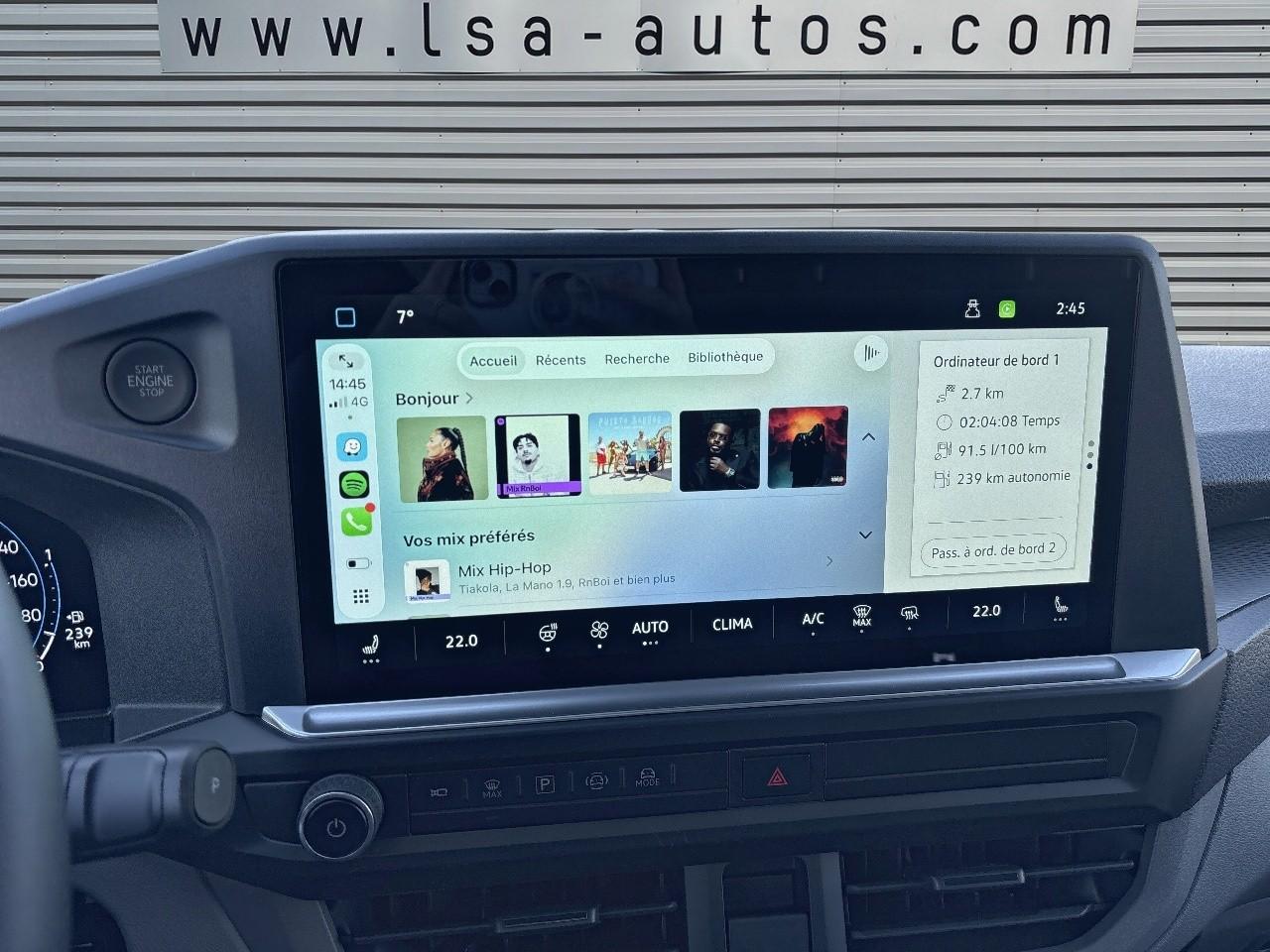 3 rails Airline (transversaux) dans le toit avec bande lumineuse... : 256,80 € inclus Assistance de changement de voie Side Assist avec avertisseur... : 686,40 € inclus Bloc de feux arrière à LED avec signature lumineuse... : 122,40 € inclus Chauffage d'appoint électrique : 384,00 € inclus Climatisation automatique 2 zones : 825,60 € inclus Cloison (haute) avec fenêtre : 96,00 € inclus Dispositif d'attelage, rigide (y compris système... : 475,20 € inclus Interface téléphonique avec fonction de charge... : 174,00 € inclus IQ.LIGHT - projecteurs à LED avec fonction Matrix ainsi... : 1 446,00 € inclus Pack Aide à la conduite Plus : 820,80 € inclus Pack Confort 2 : 2 088,00 € inclus Pack Equipement extérieur : 736,80 € inclus Pack Siège cabine 8A : 362,40 € inclus Plancher en bois dans l'espace chargement : 808,80 € inclus Pneus 215/60 R17 C109/107T ... : 295,20 € inclus Réservoir de carburant grande capacité 70 l : 54,00 € inclus Système d’alarme antivol avec protection volumétrique,... : 391,20 € inclus Volant multifonction en similicuir : 166,80 € inclus